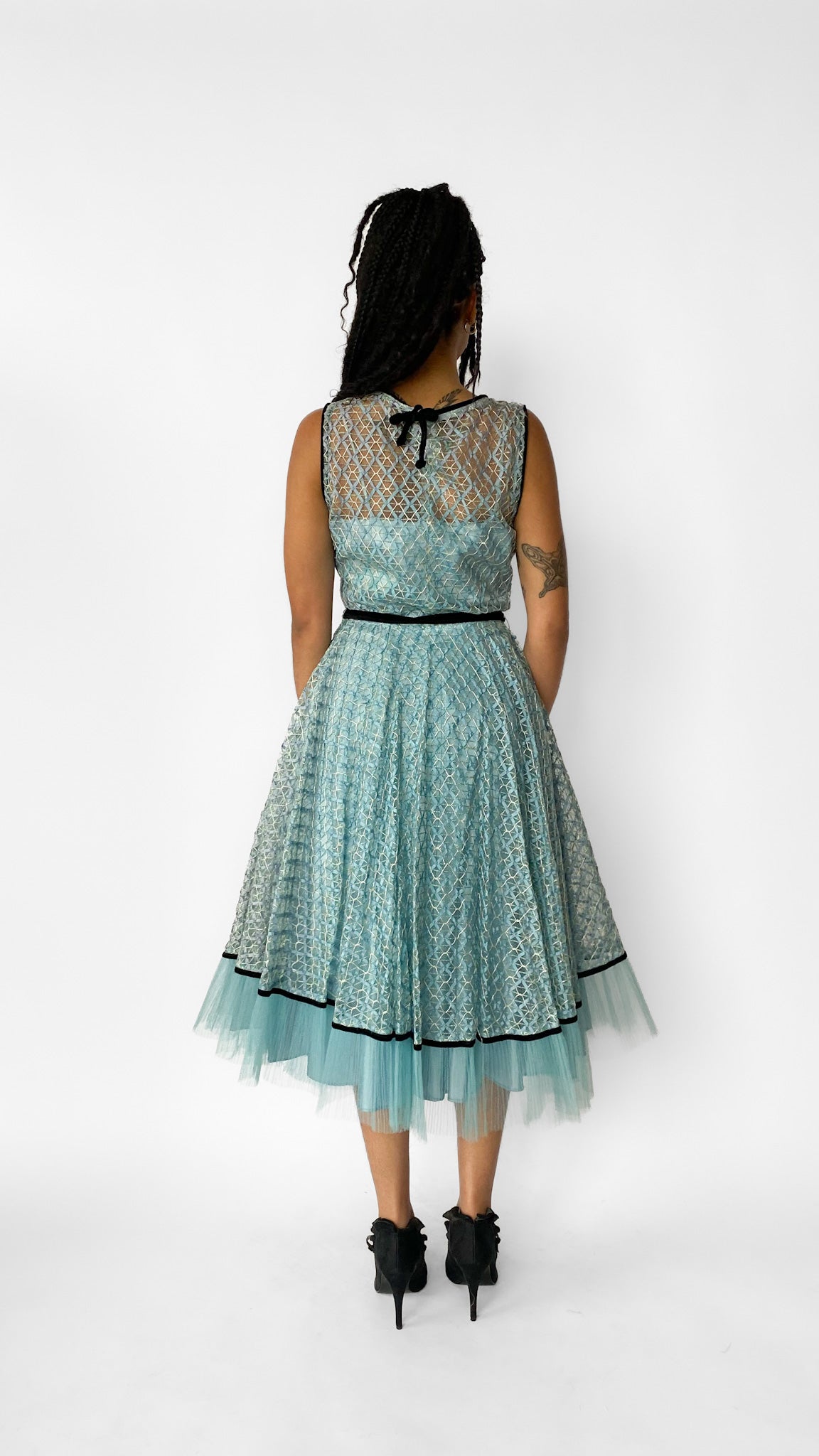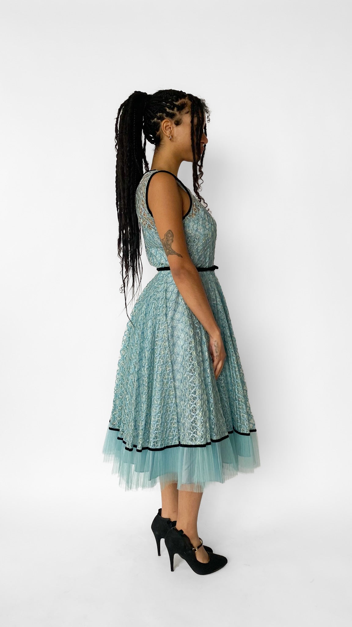 1950s Blue Lace Tulle Cupcake Party Dress , sz. S