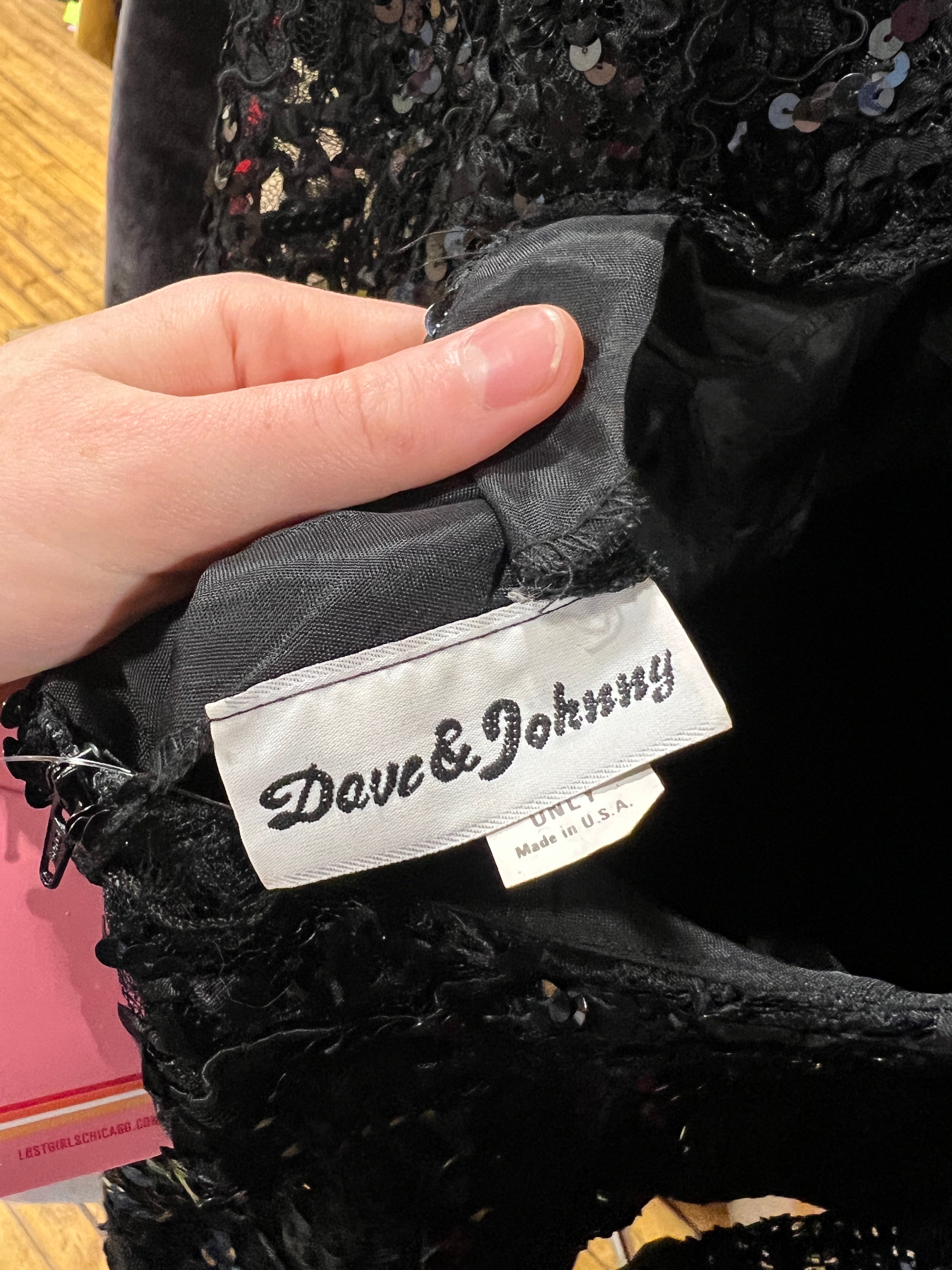 1980s Black Sequin Dress with Sequin Flower, sz. S