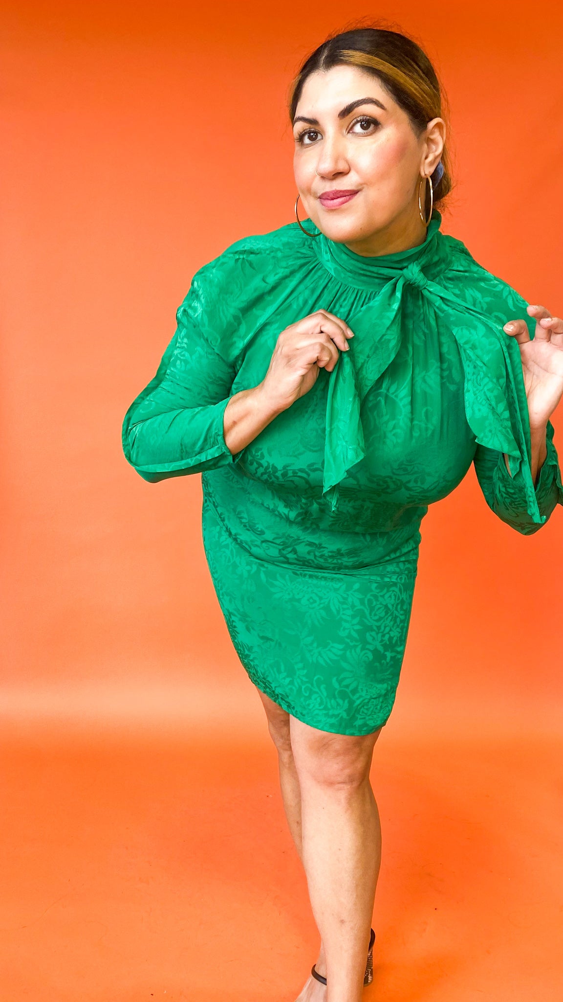 1980s Green Silk Bow Dress, sz. XL