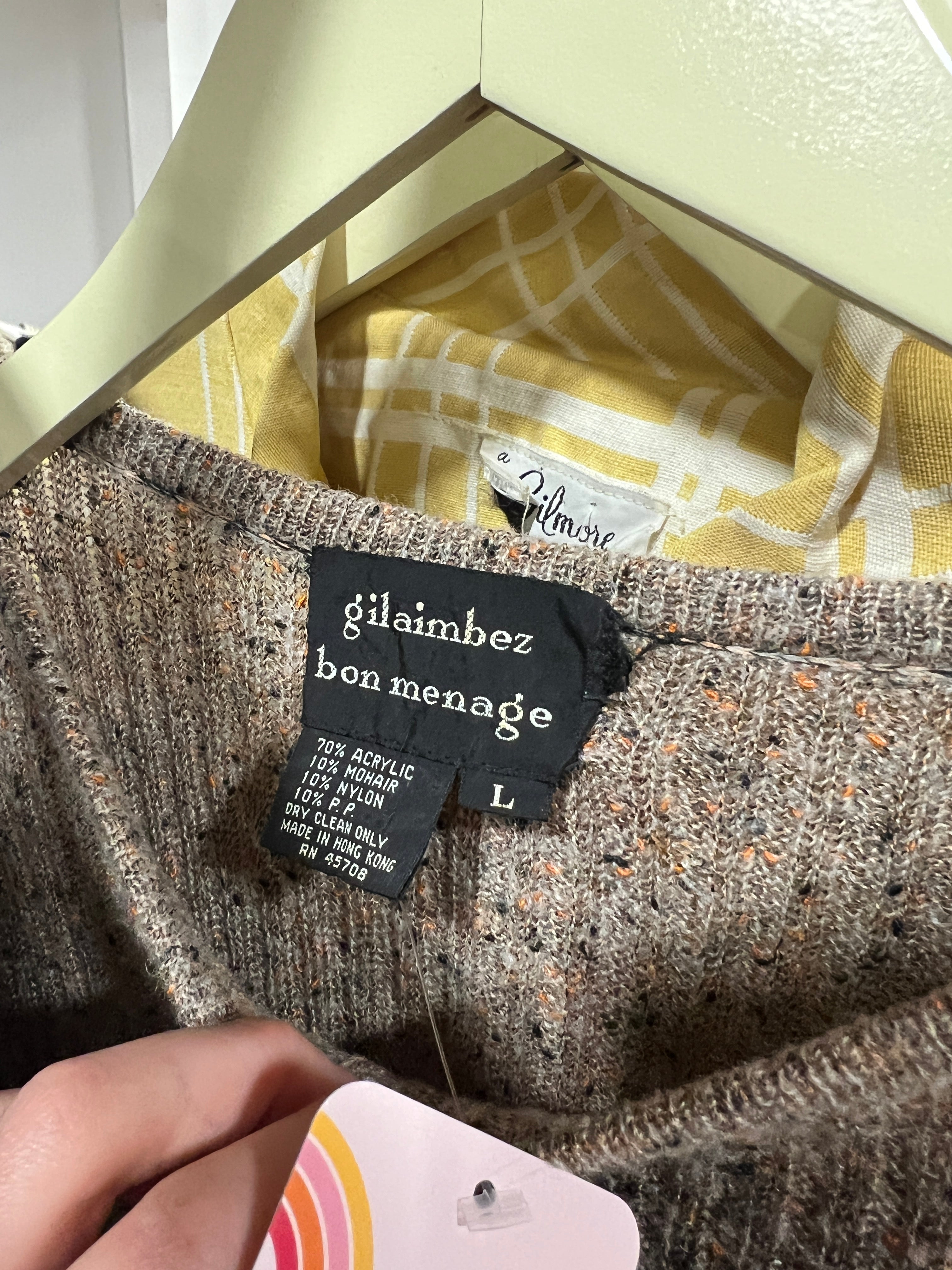 1970s Gil Aimbez Tan Flecked Sweater Dress sz. M-1X