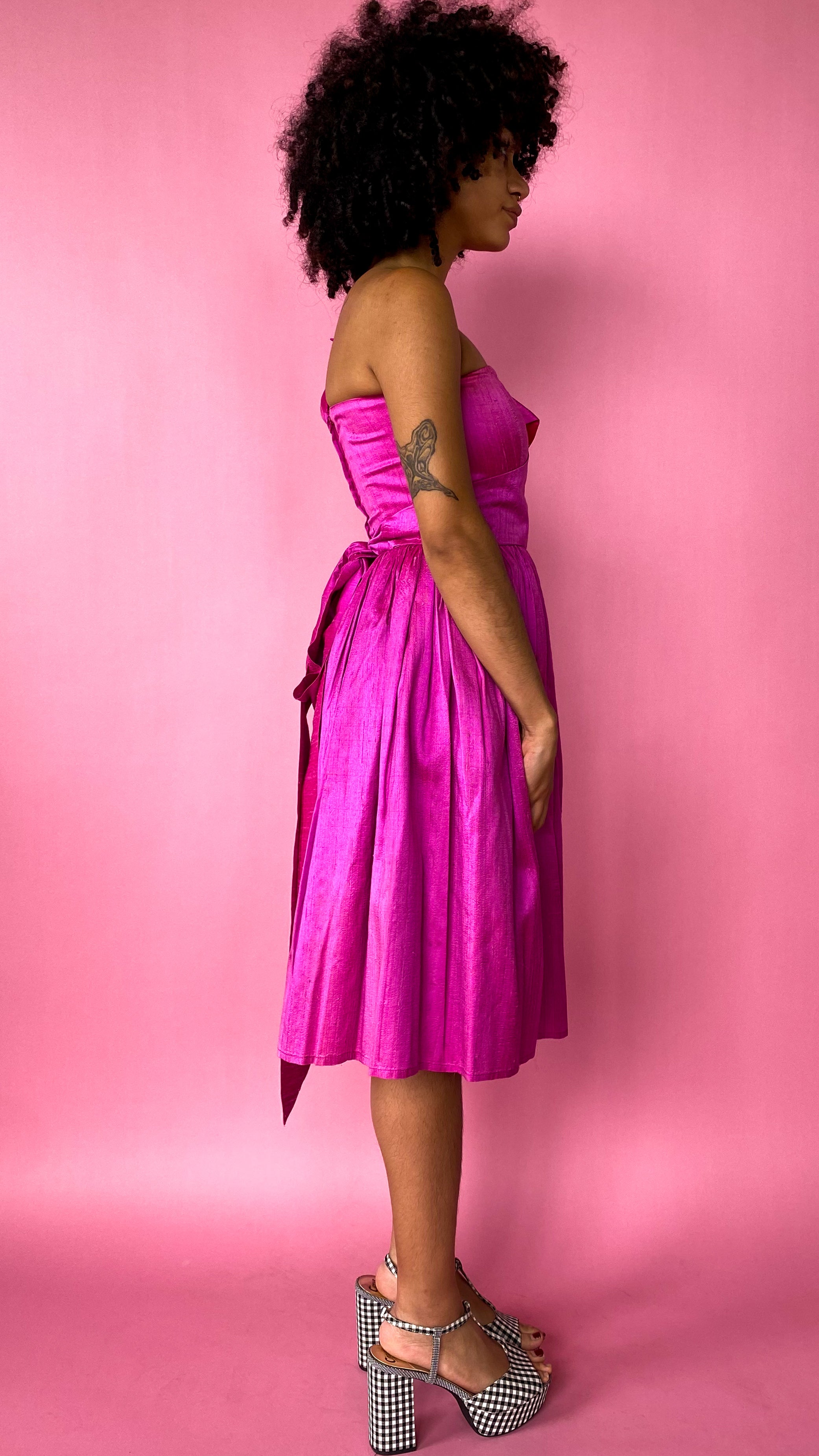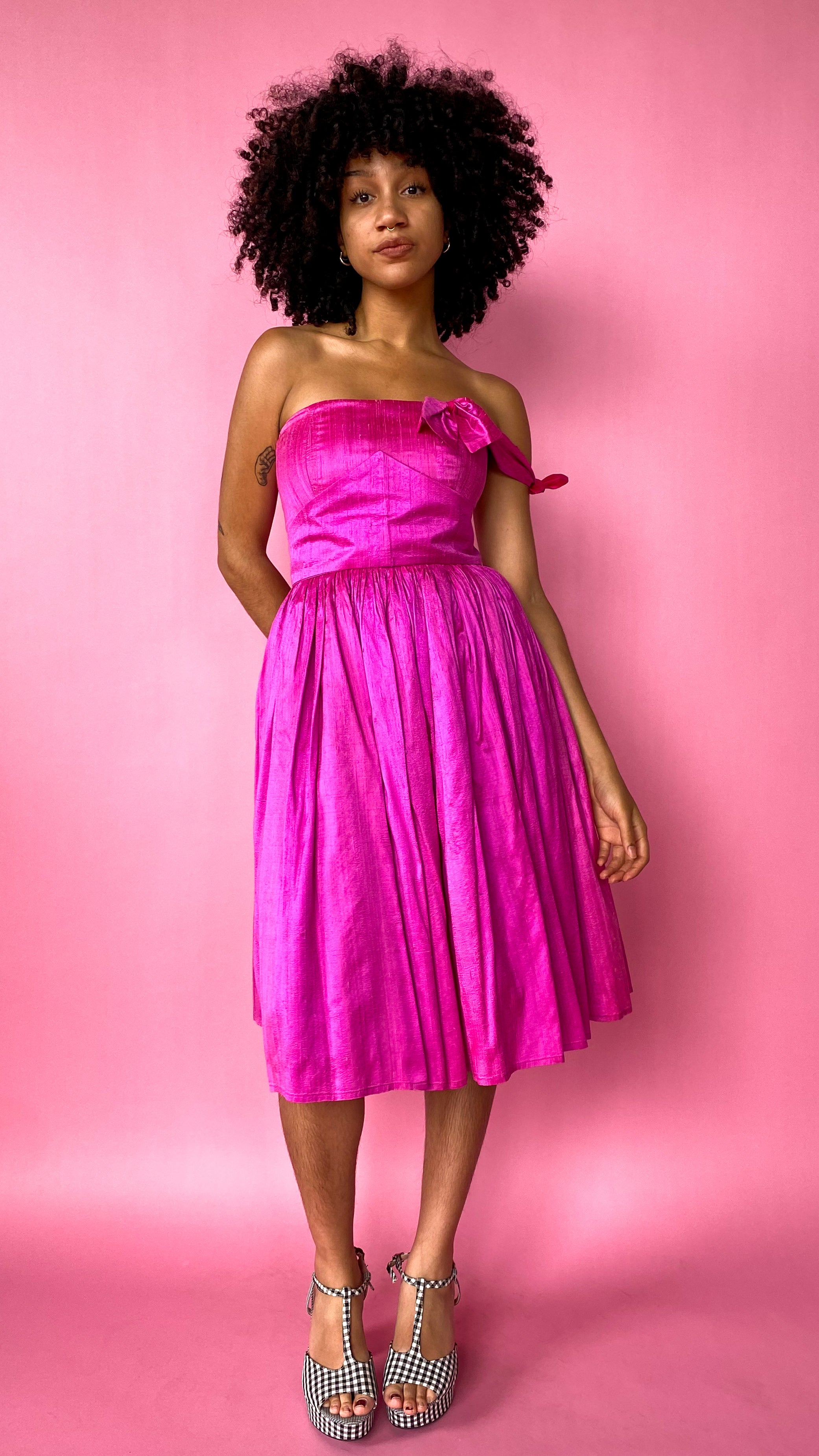 1980s Fuchsia Silk Bow Dress, sz. XS