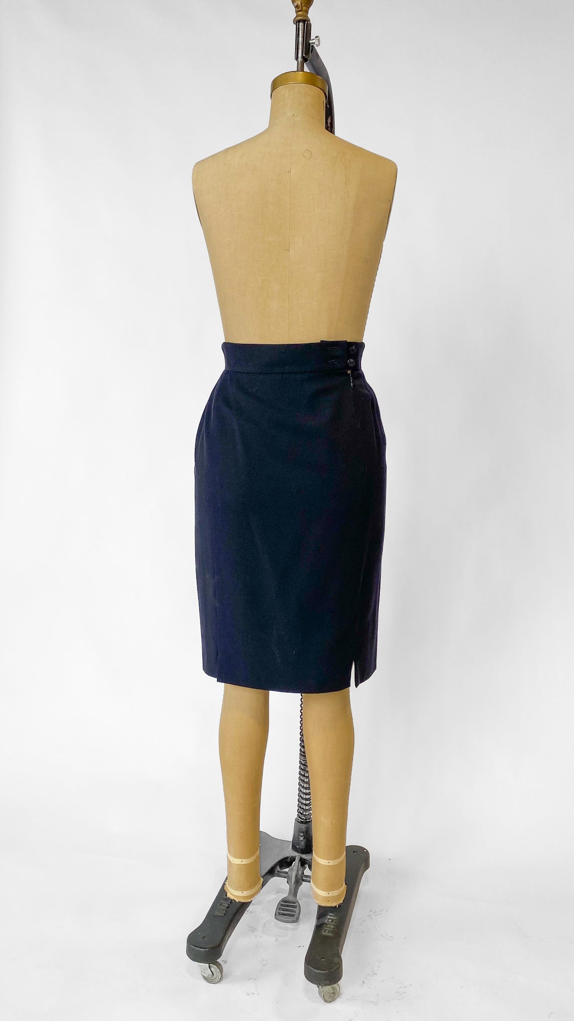 1990s Escada Black Wool Pencil Skirt, sz. M