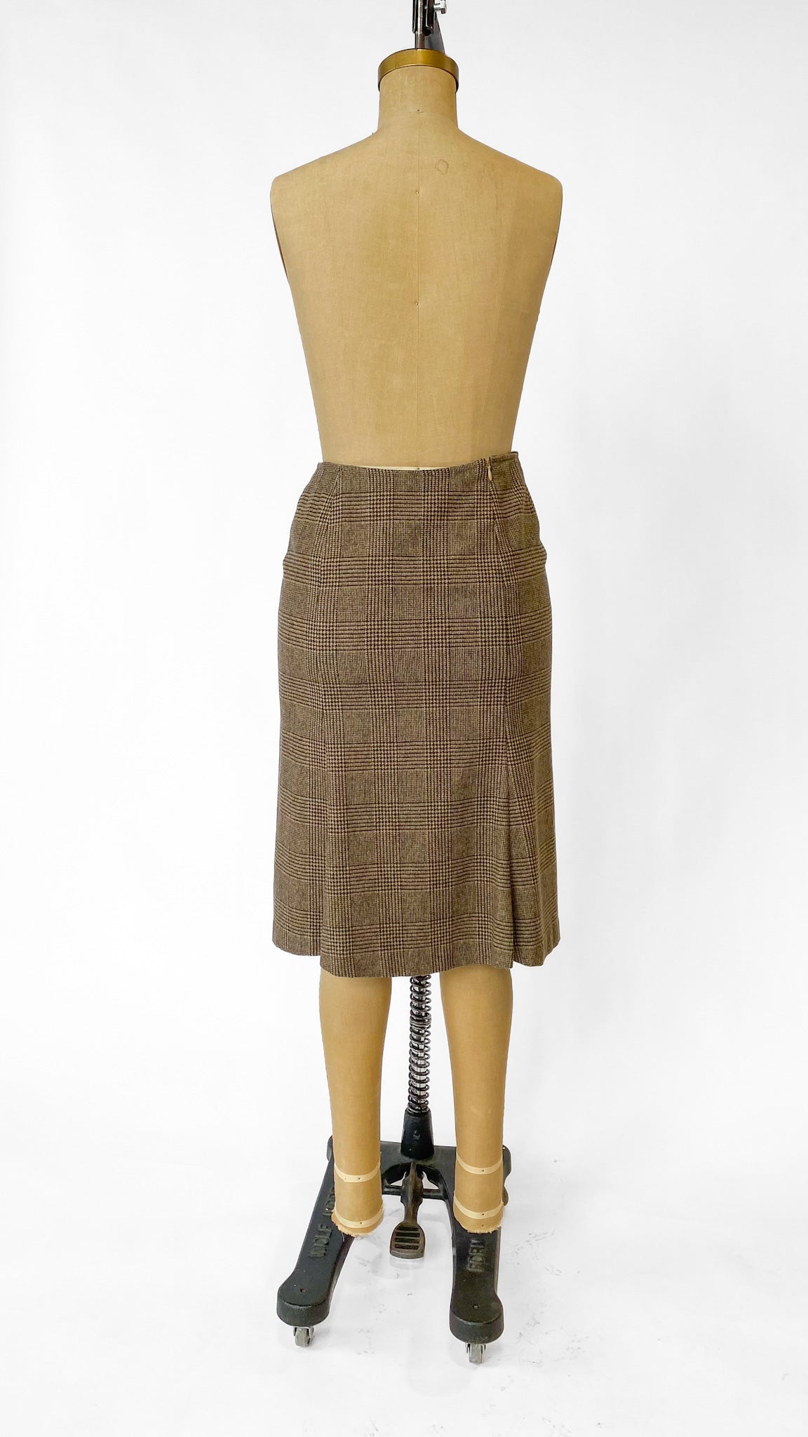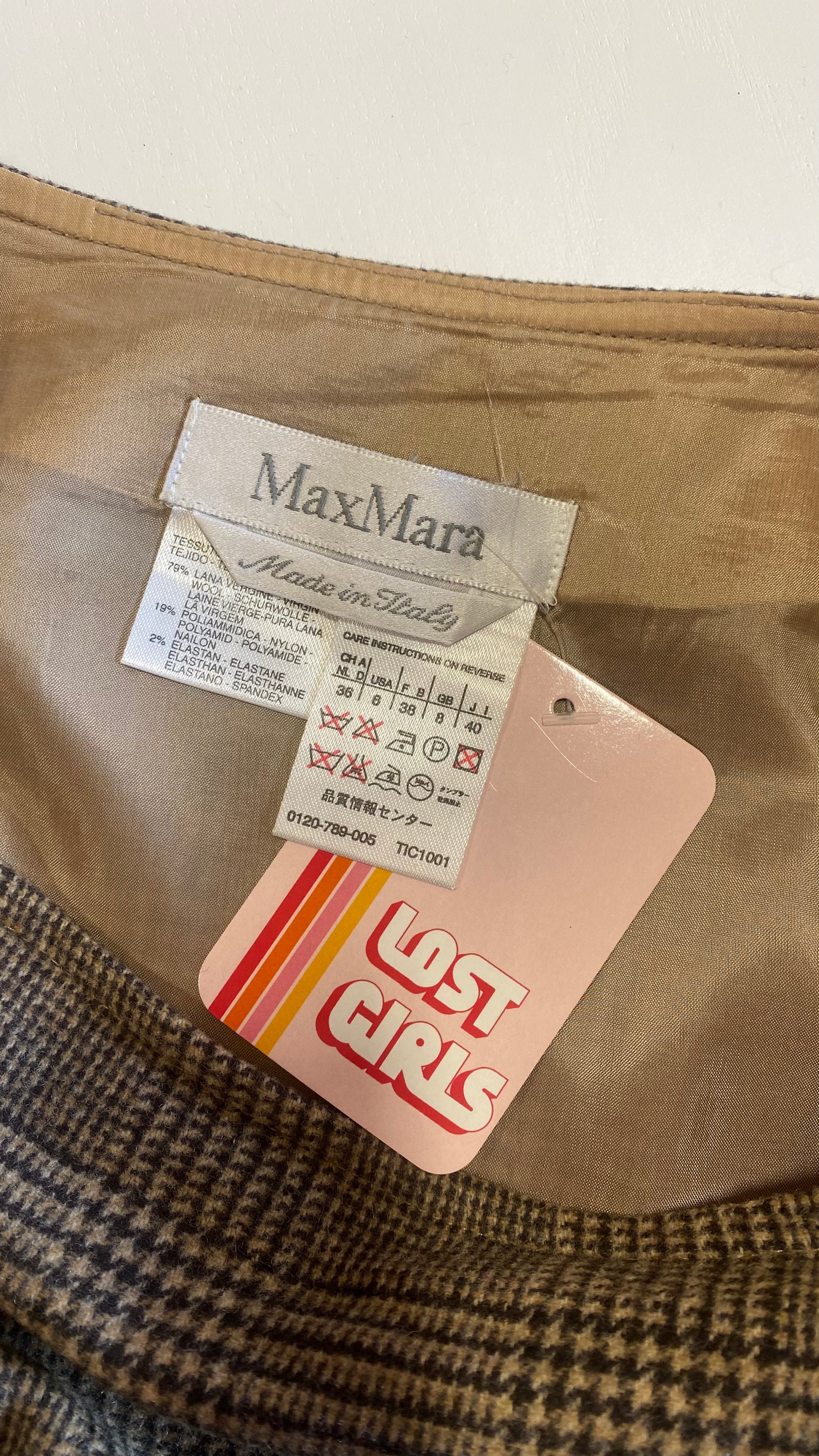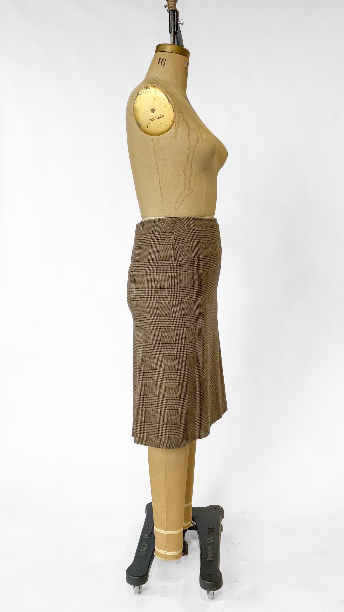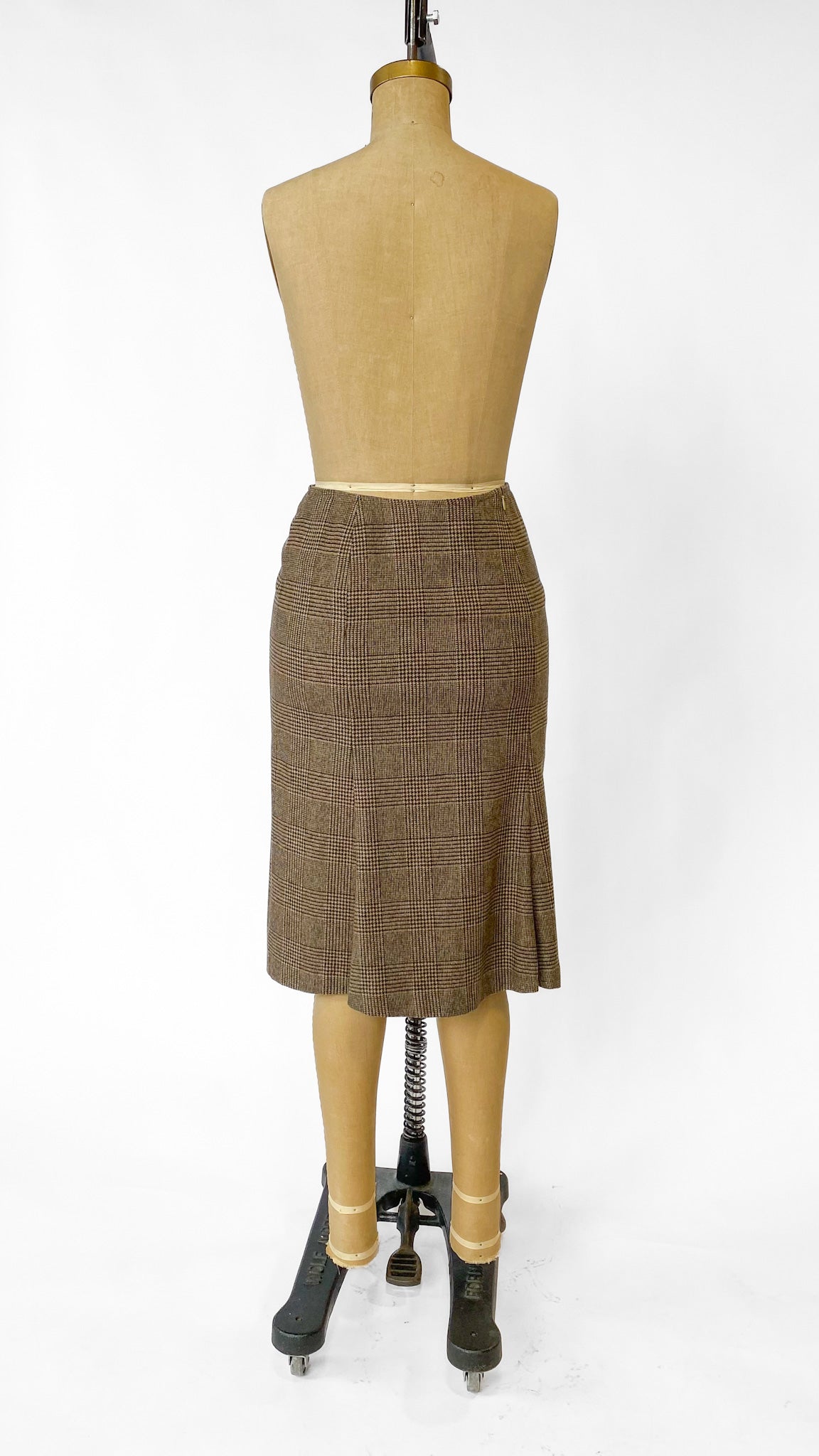 Y2K Max Mara Tan Plaid Pencil Skirt, sz. M
