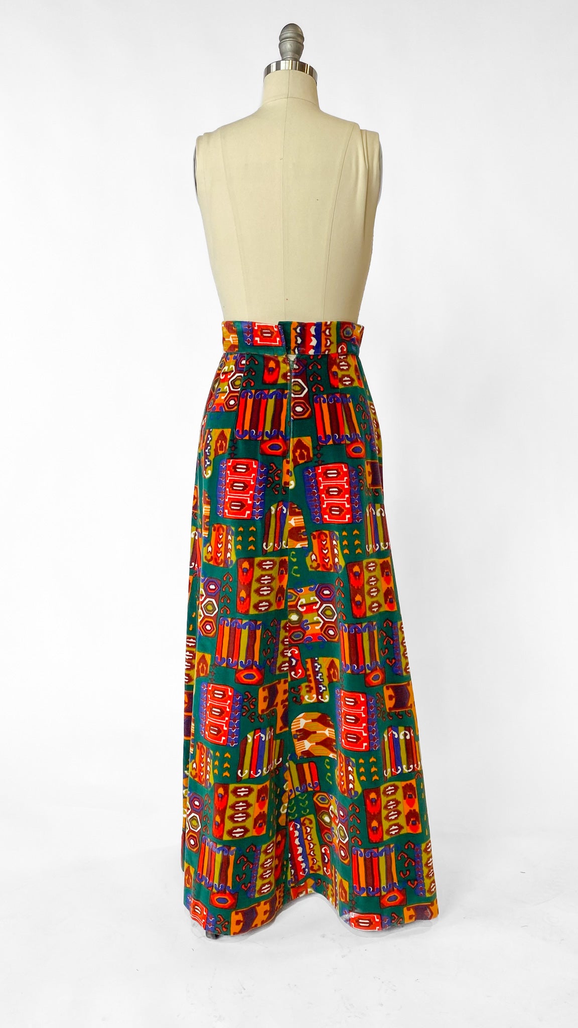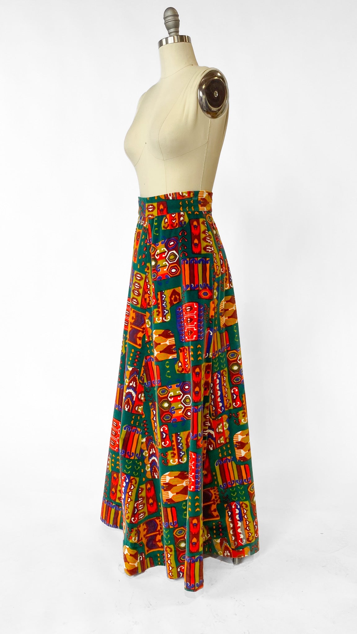 1990s Green Velvet Patterned Maxi Skirt, sz. XS