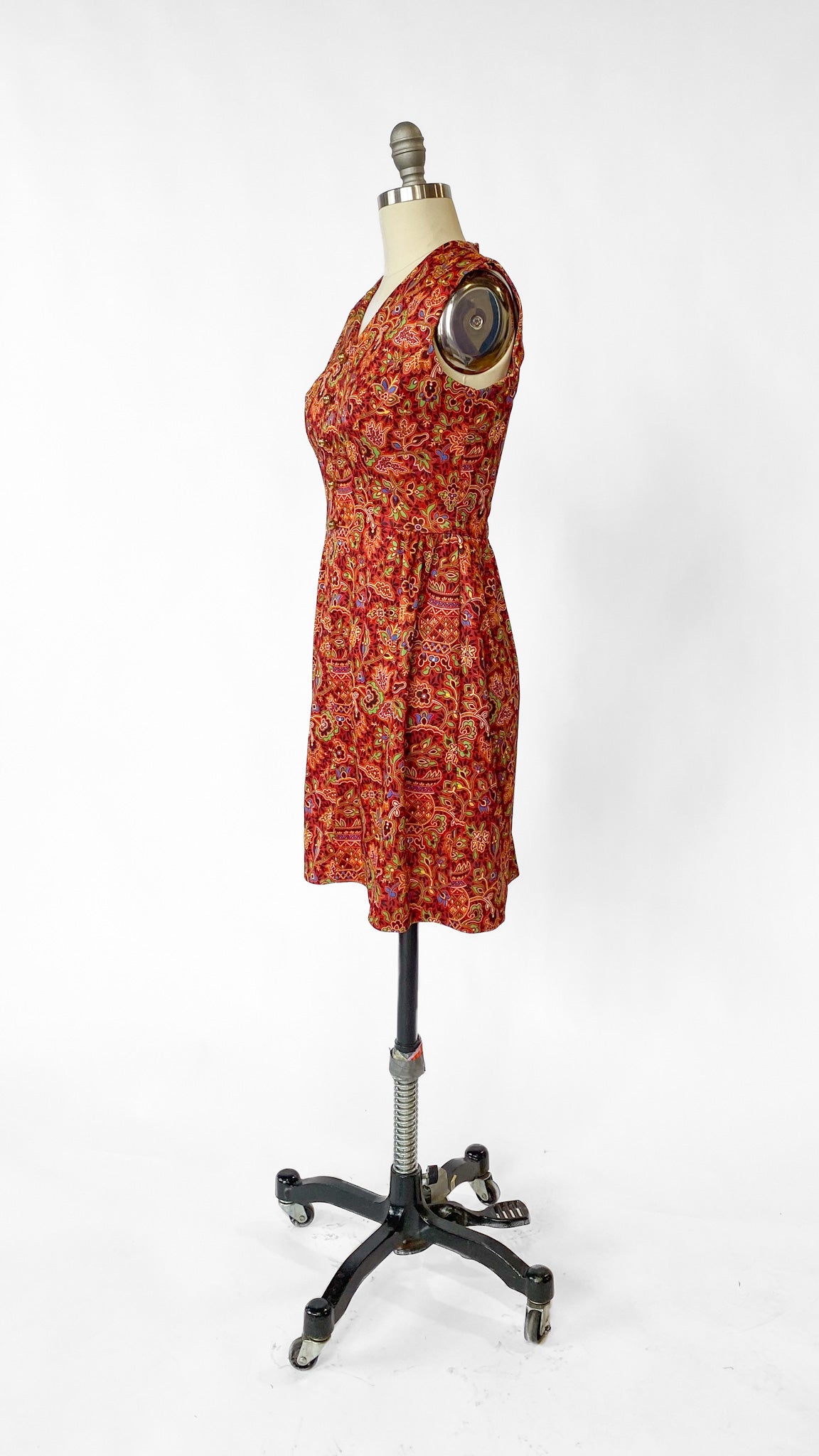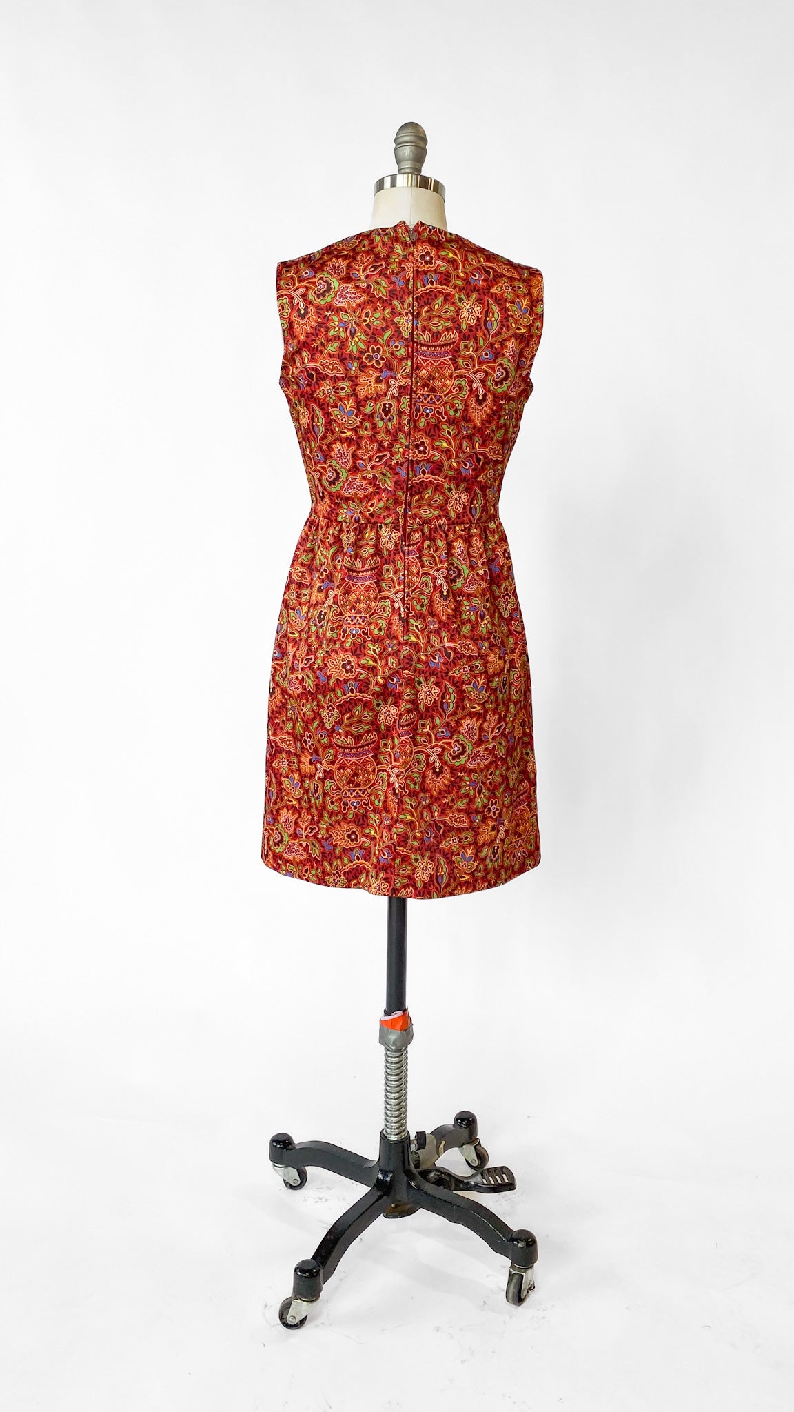 1970s Red Groovy Floral Sleeveless Dress, sz. S