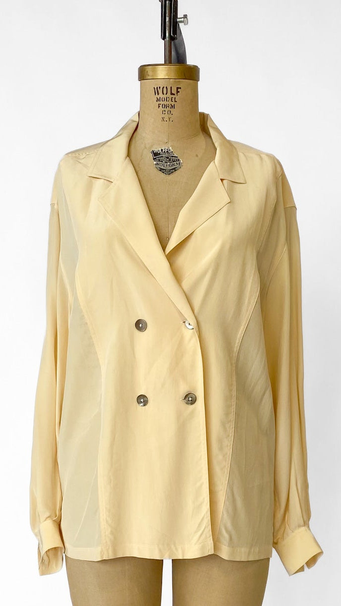 1990s Dana Buchman Ivory Silk Double Breasted Blazer, sz. L