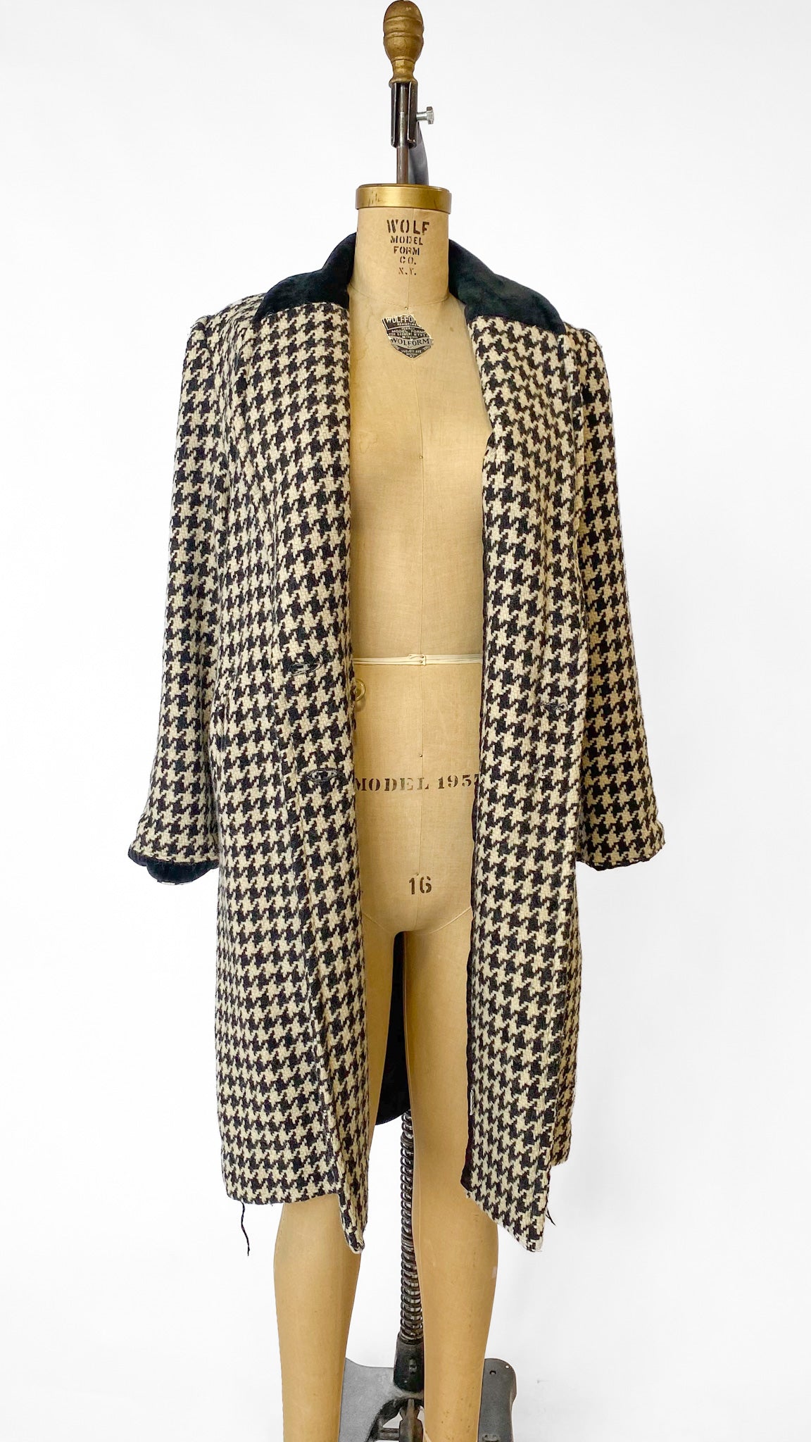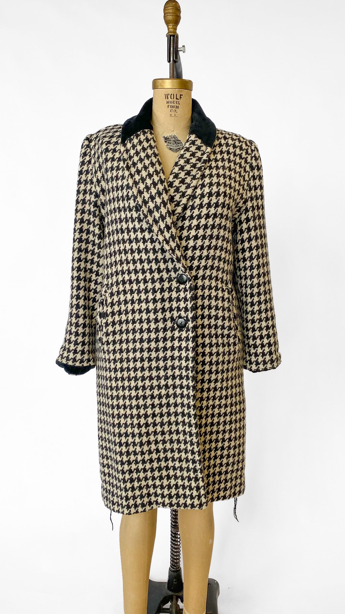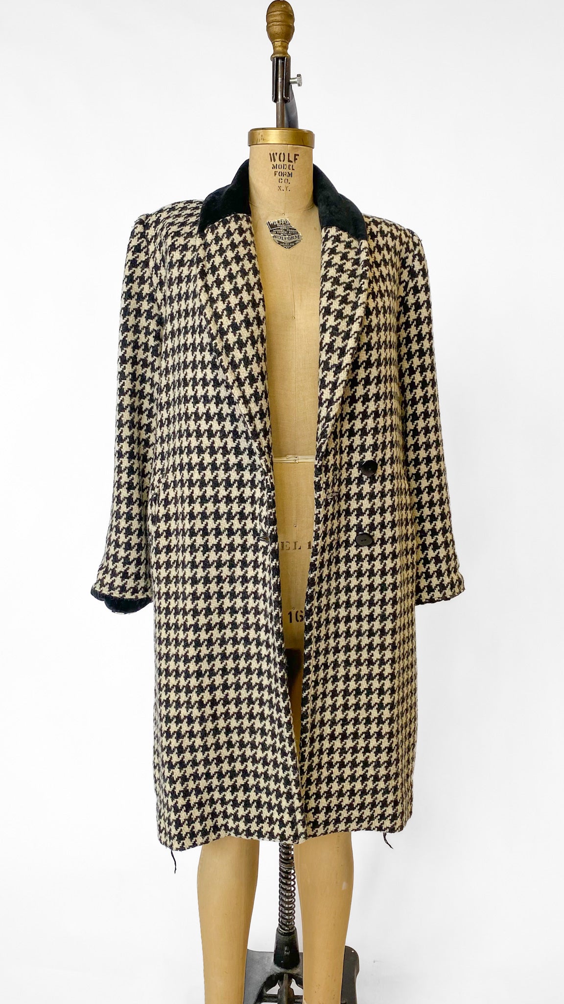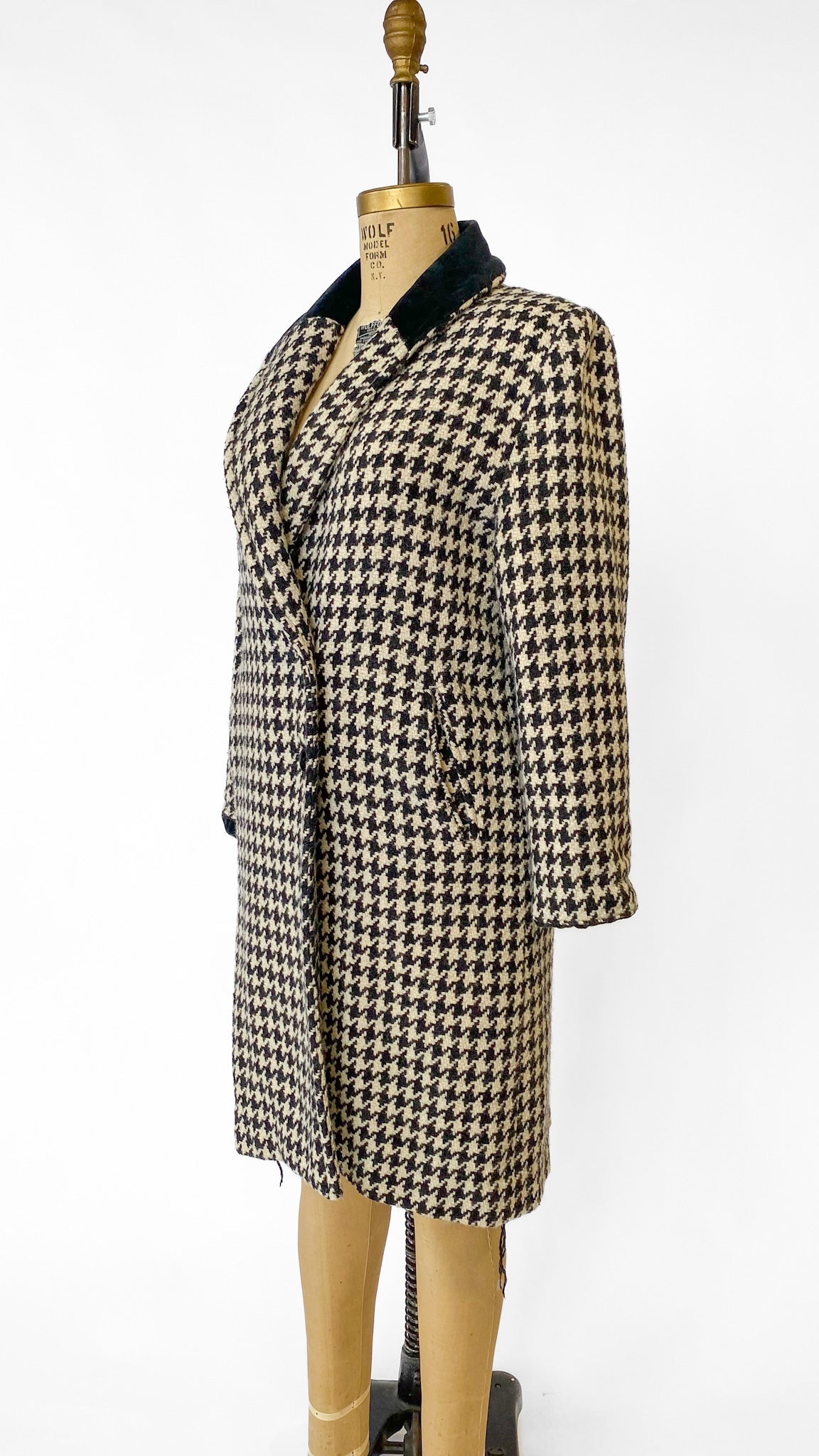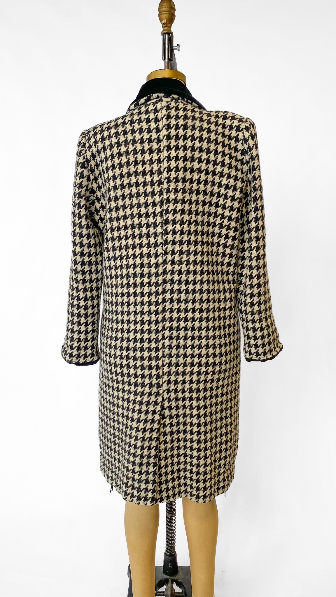 1980s Black + White Houndstooth Coat, sz. L