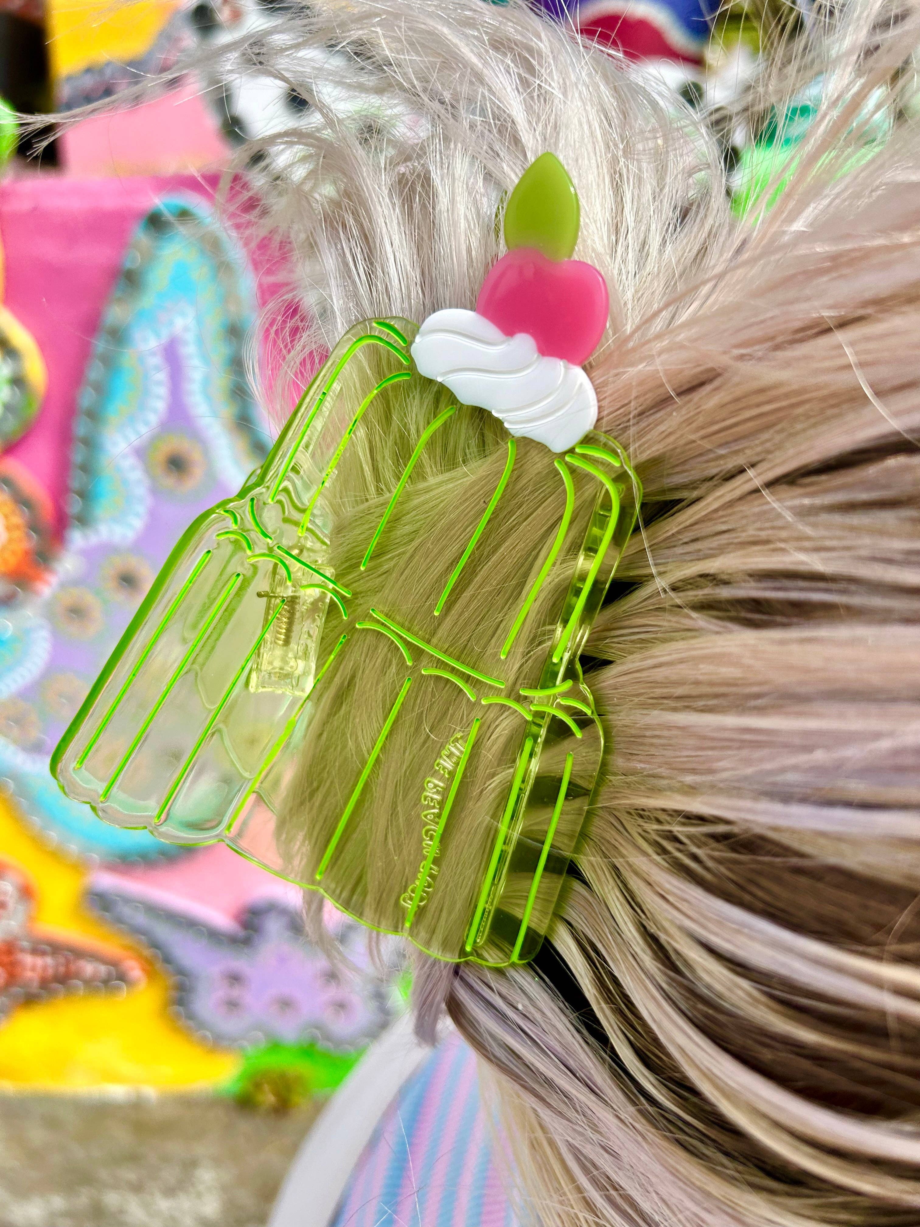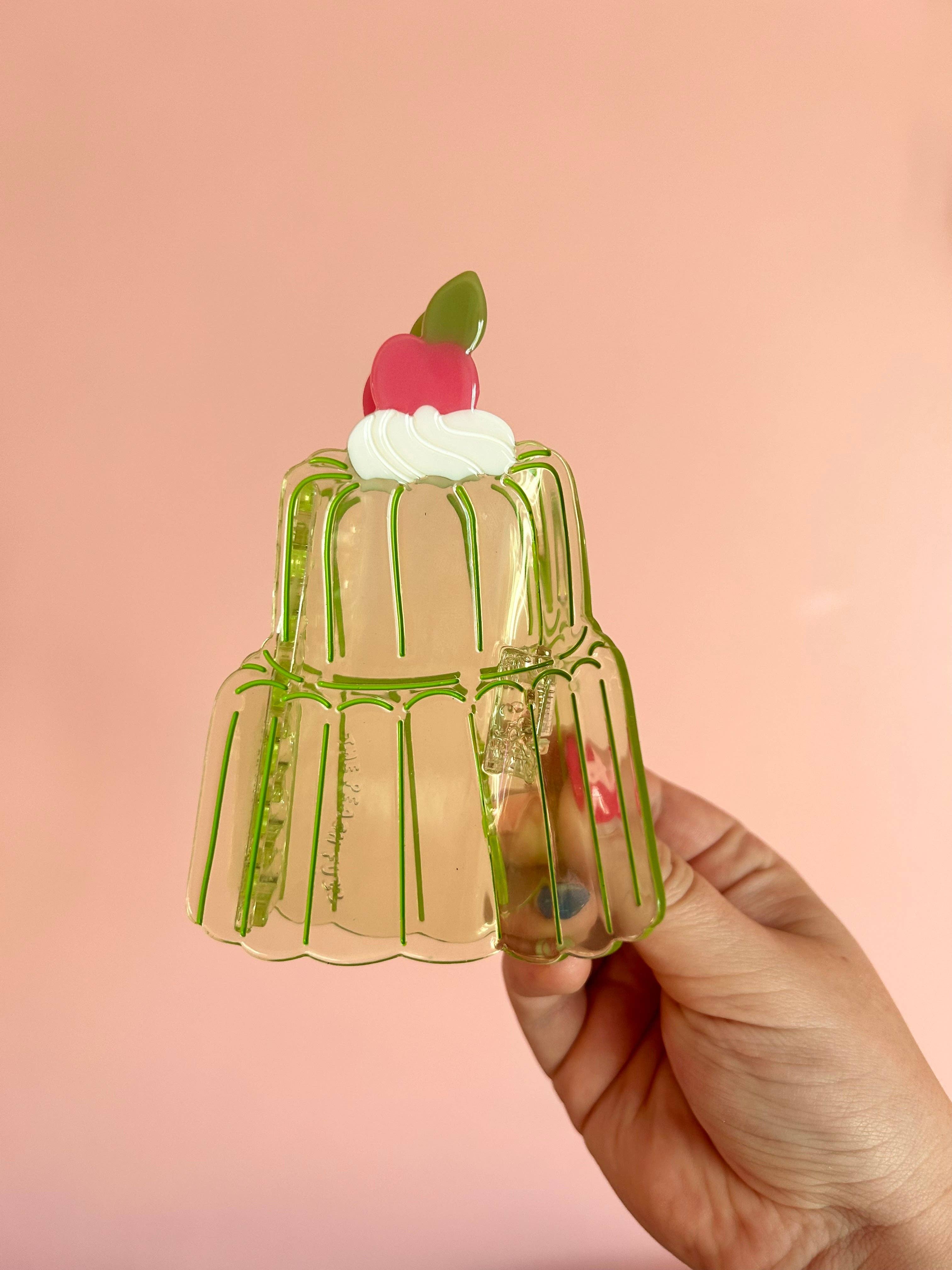 The fanciest cakes are the wiggliest! Welcome our jello mold hair claw, complete with transparent lime flavor and a cherry on top!