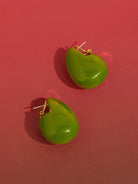 Olive Retro Chunky Teardrop Statement Earrings Silver Plating Resin Yellow Brass Measurement (L x W inch): 2 x 1 - Lead-free, Nickel-safe