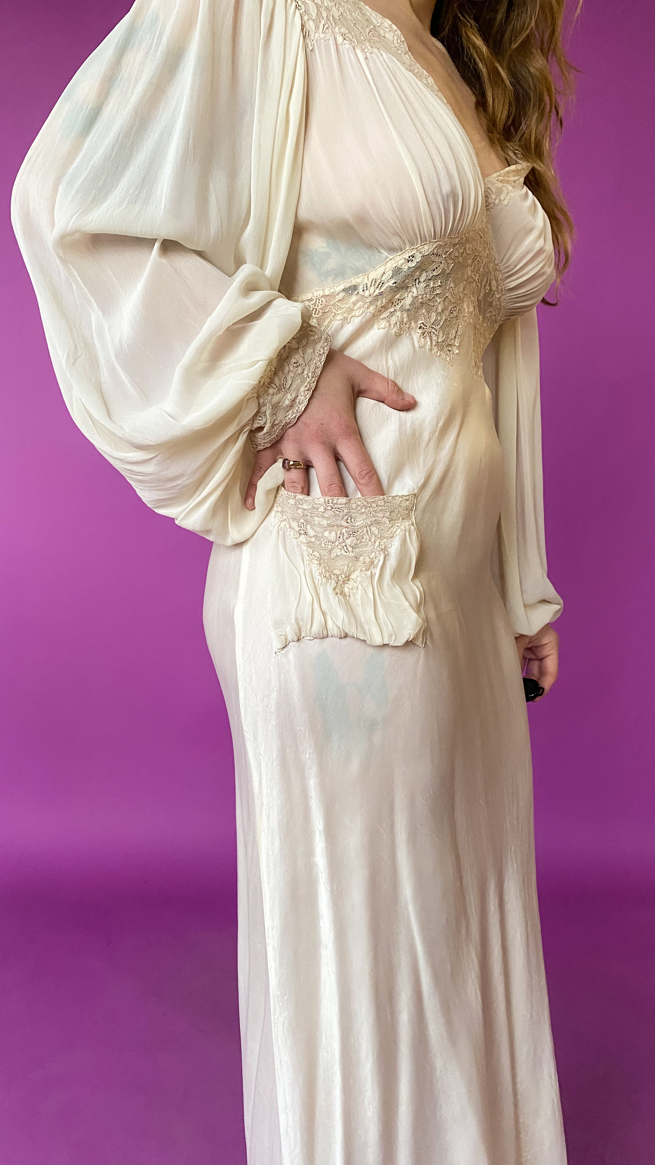 1930s Romantic Ivory Lace Gown, sz. S
