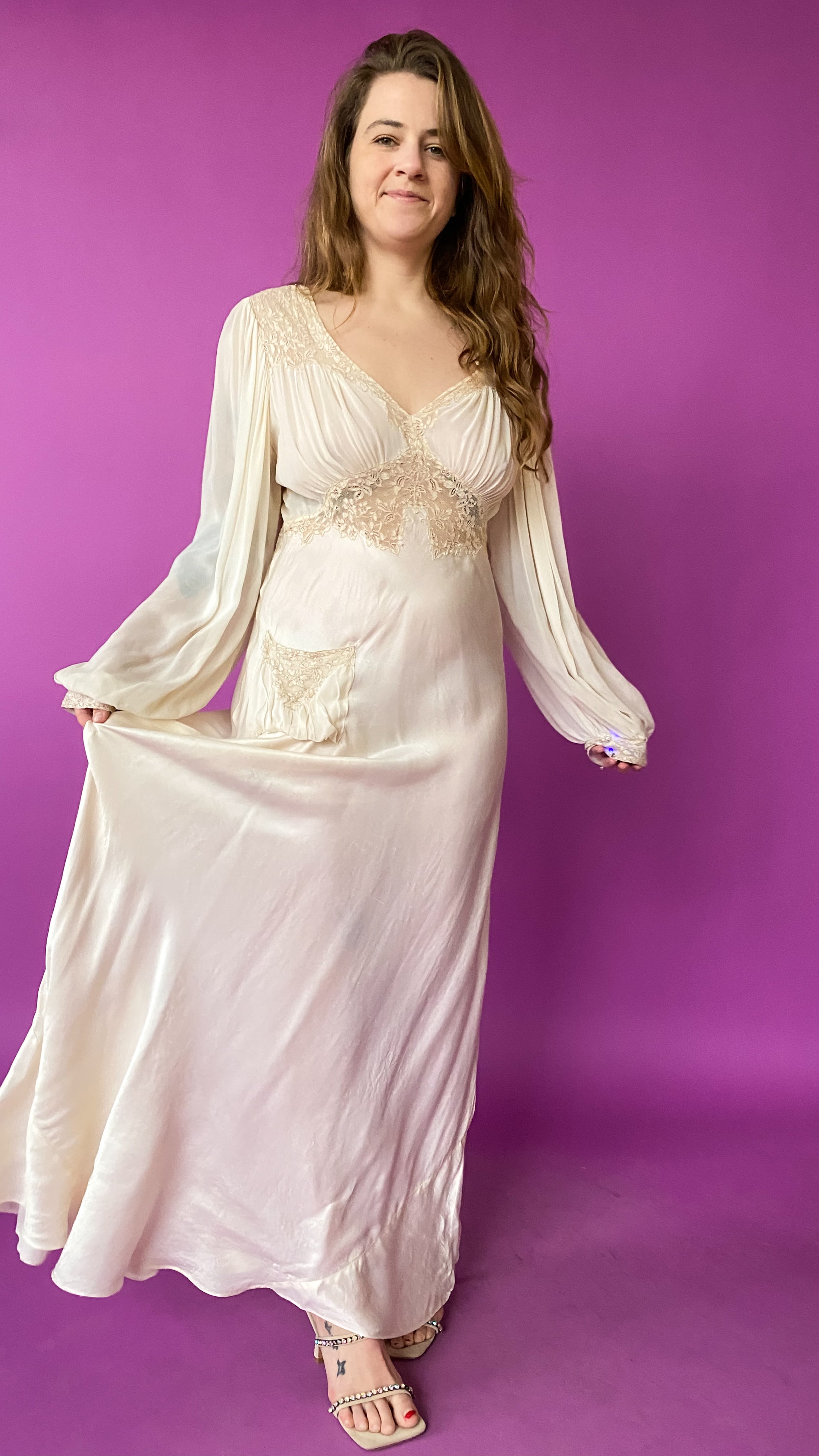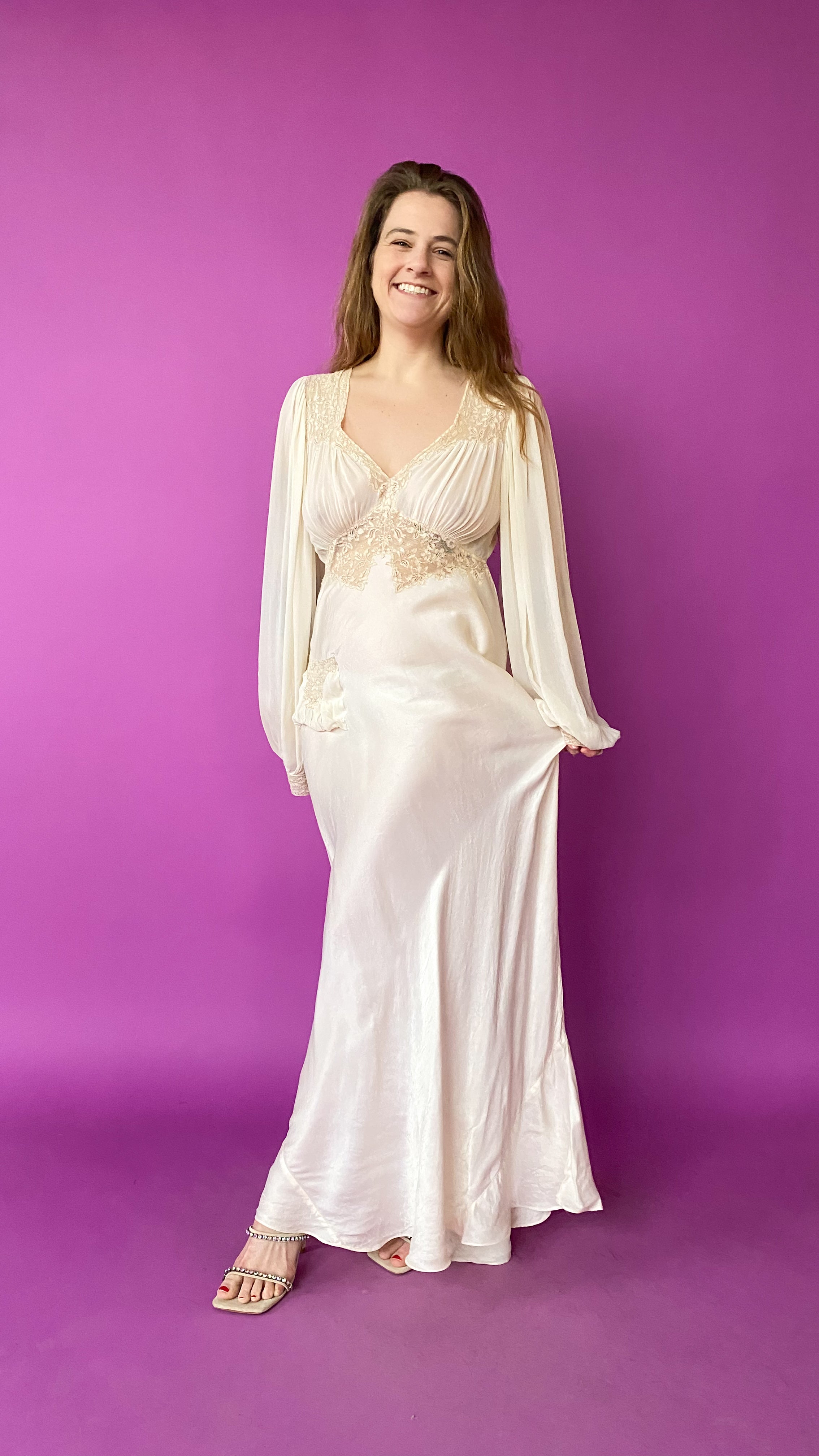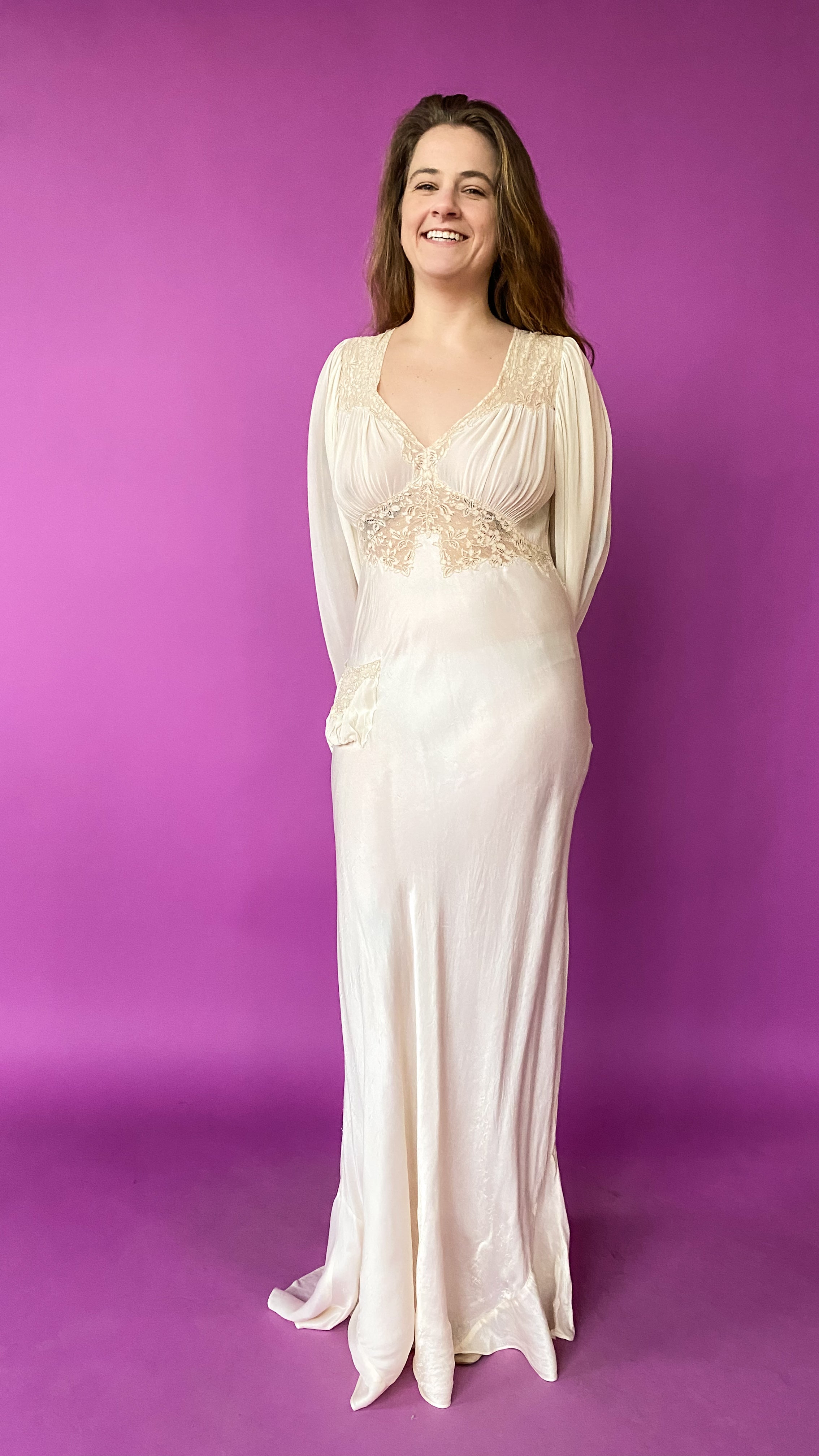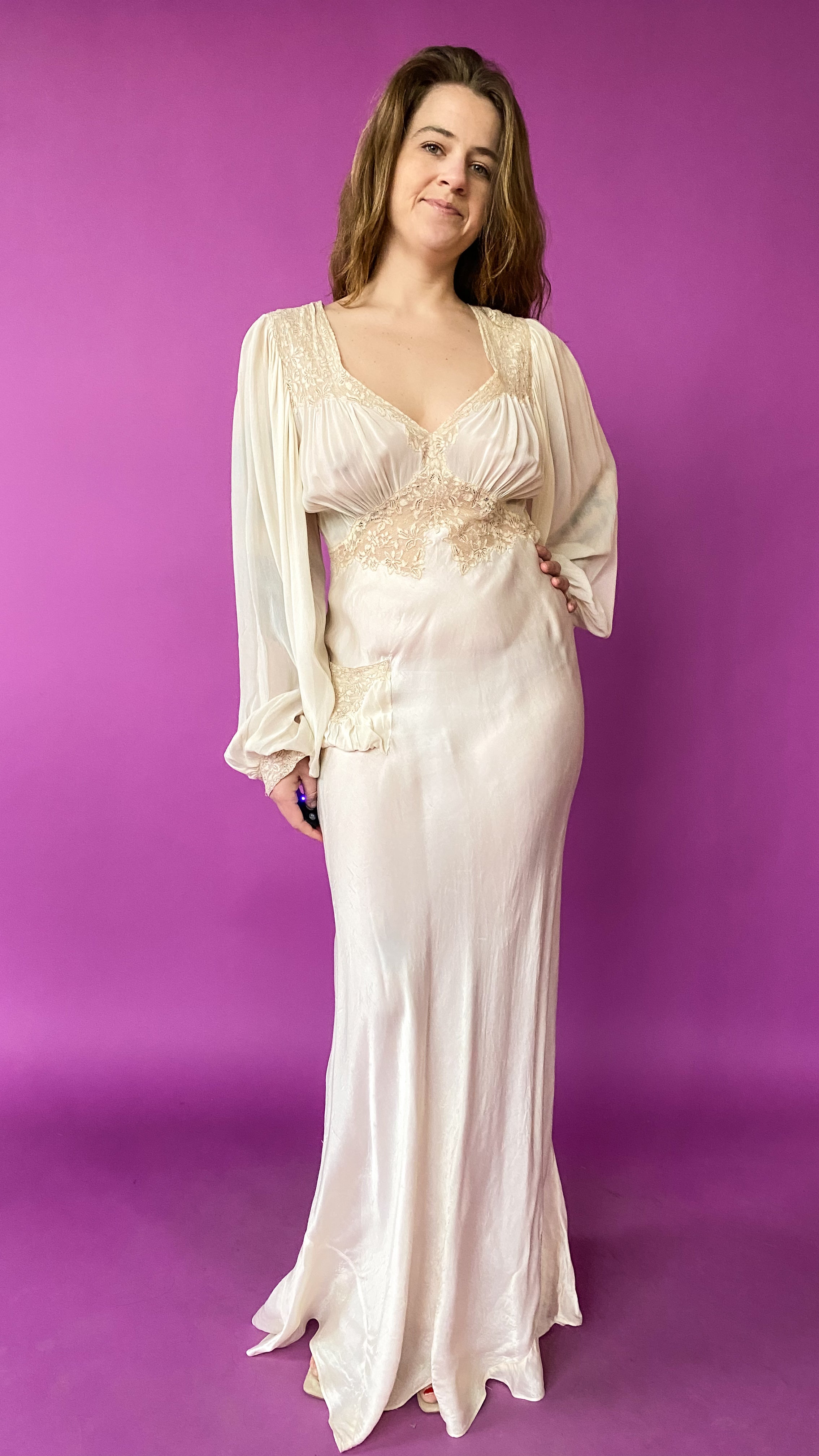 1930s Ivory Empire Waist Gown, sz. M