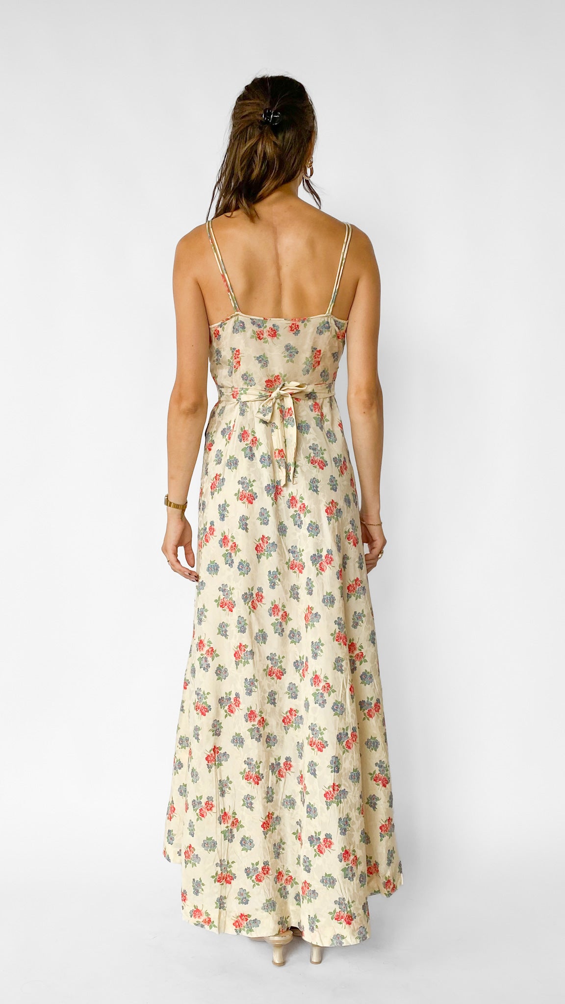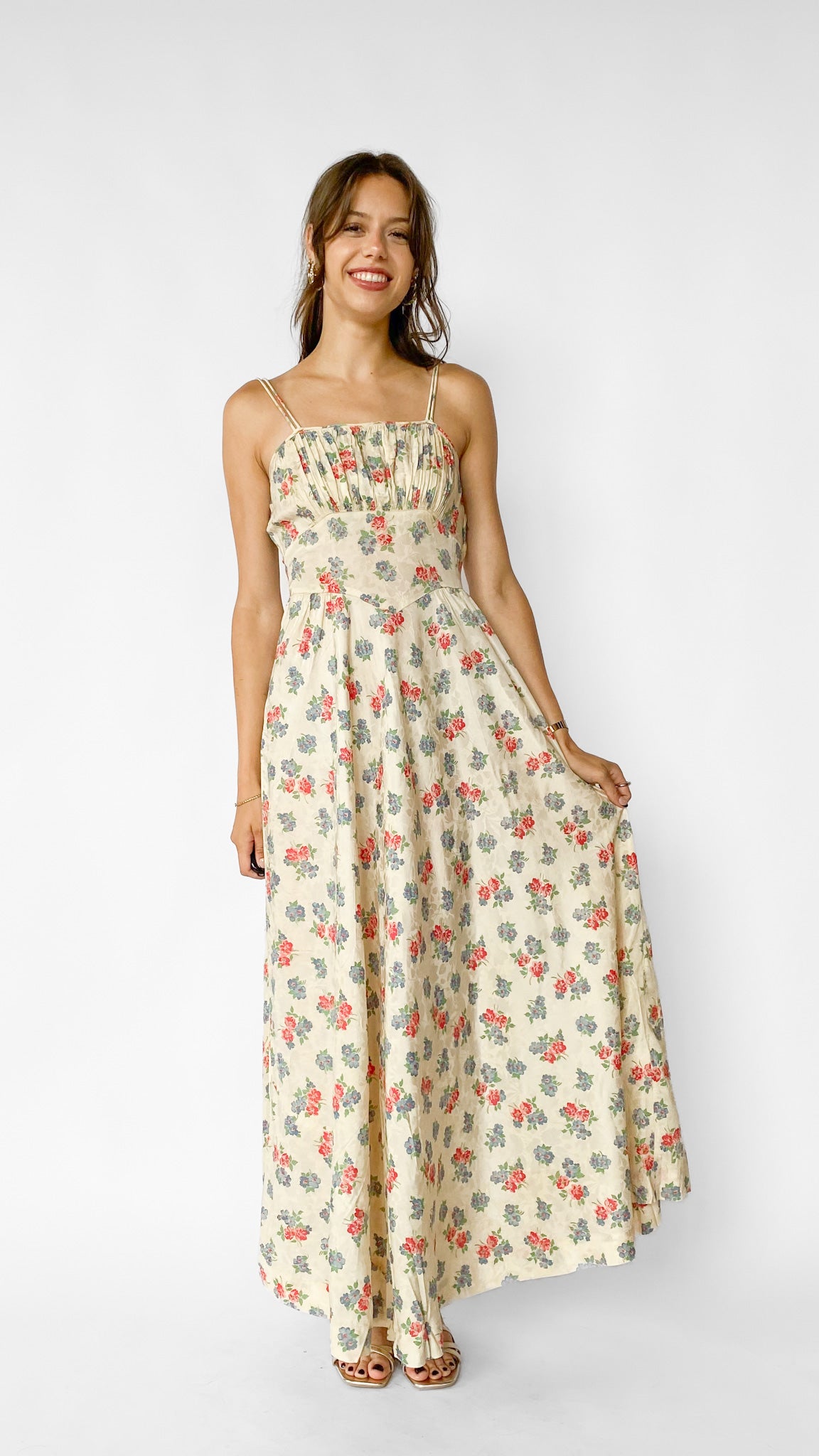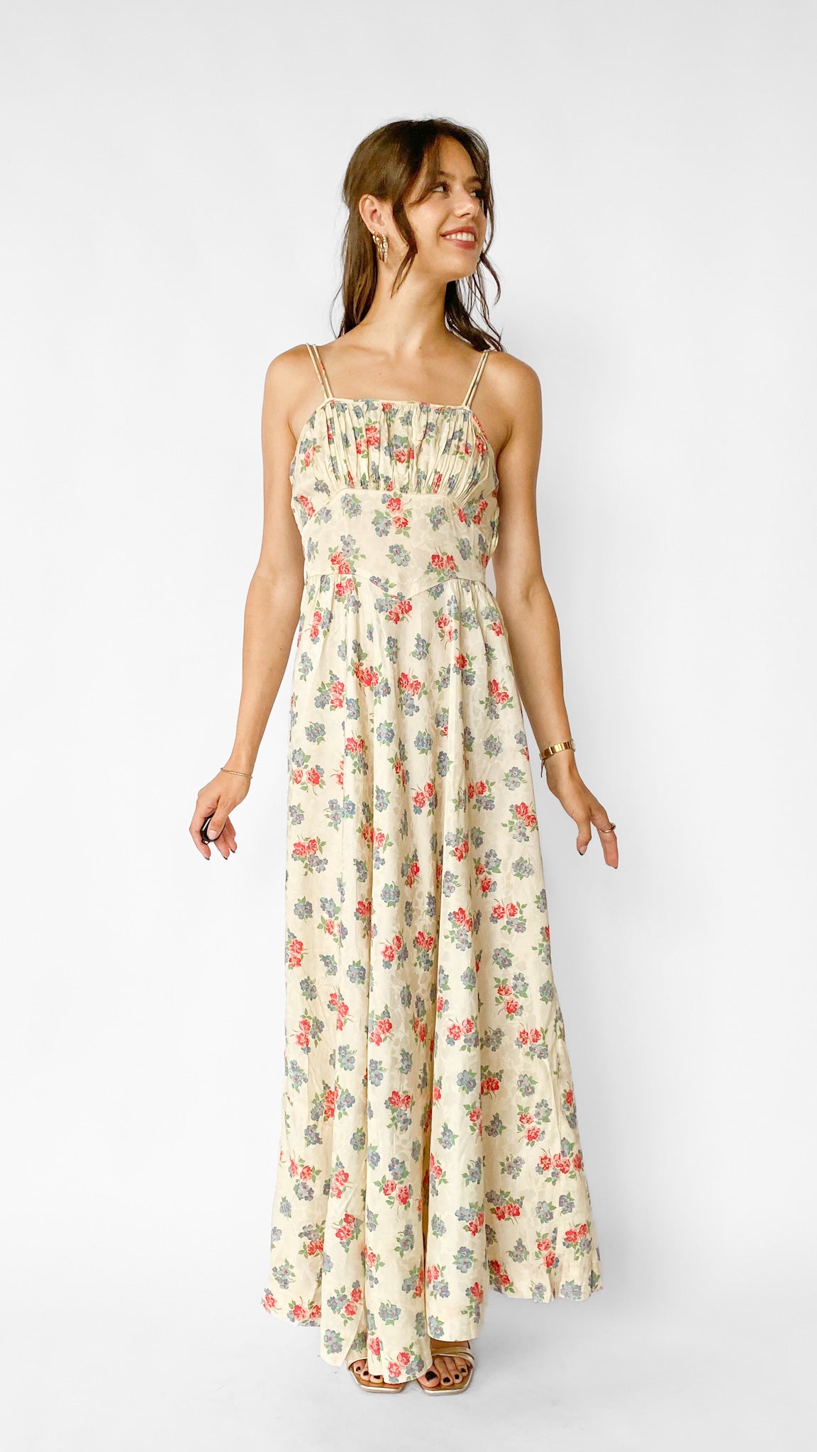 1940s Soft Floral Maxi Dress, sz. S