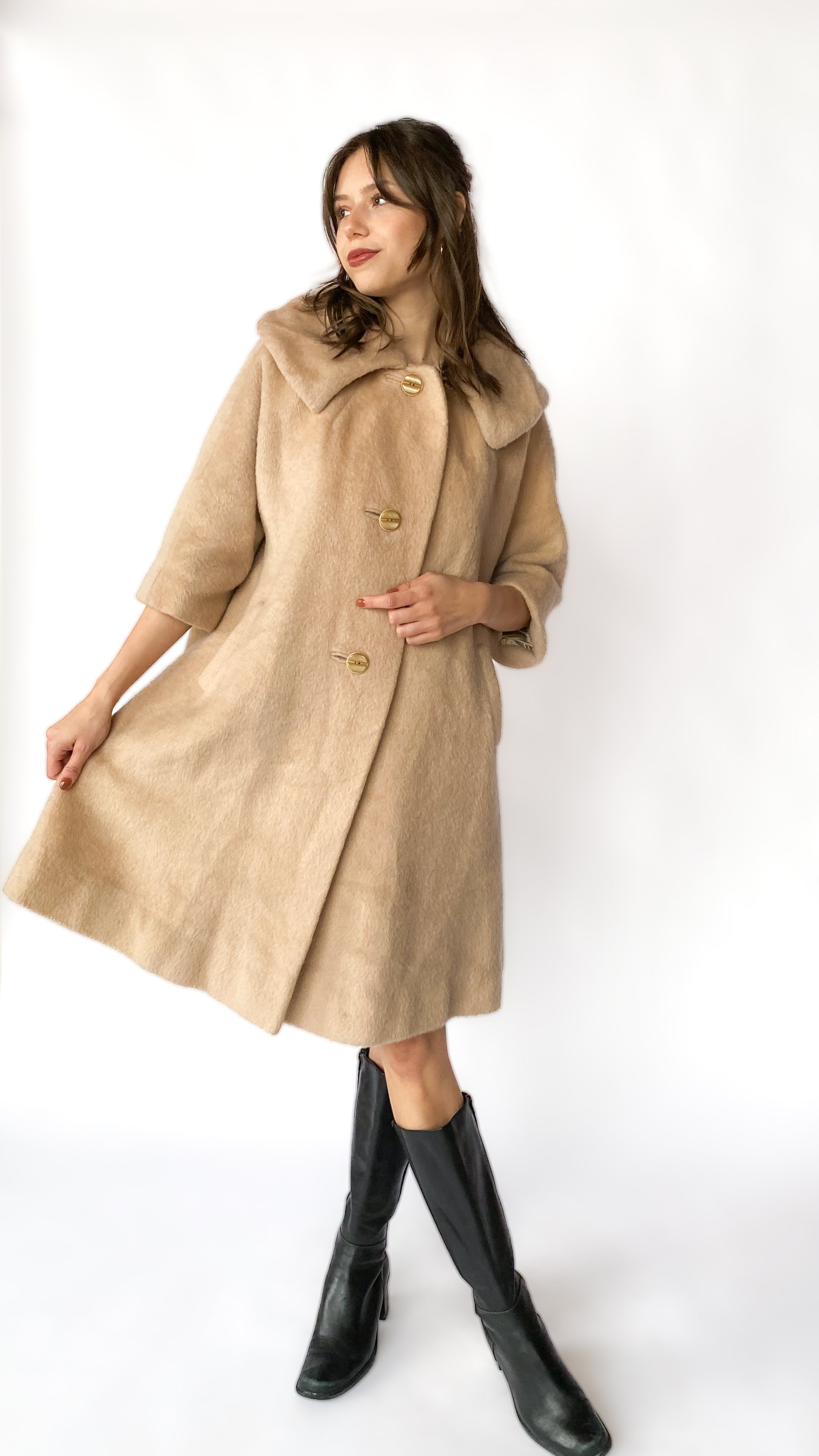 1960s Lilli Ann Cream Mohair Coat sz. M/L