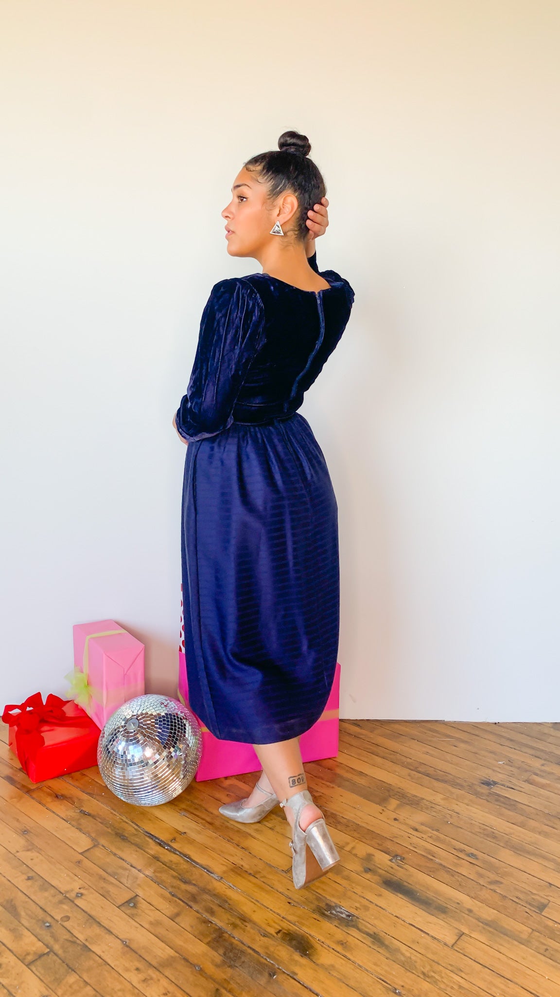 1980s Crushed velvet indigo dress, sz. M