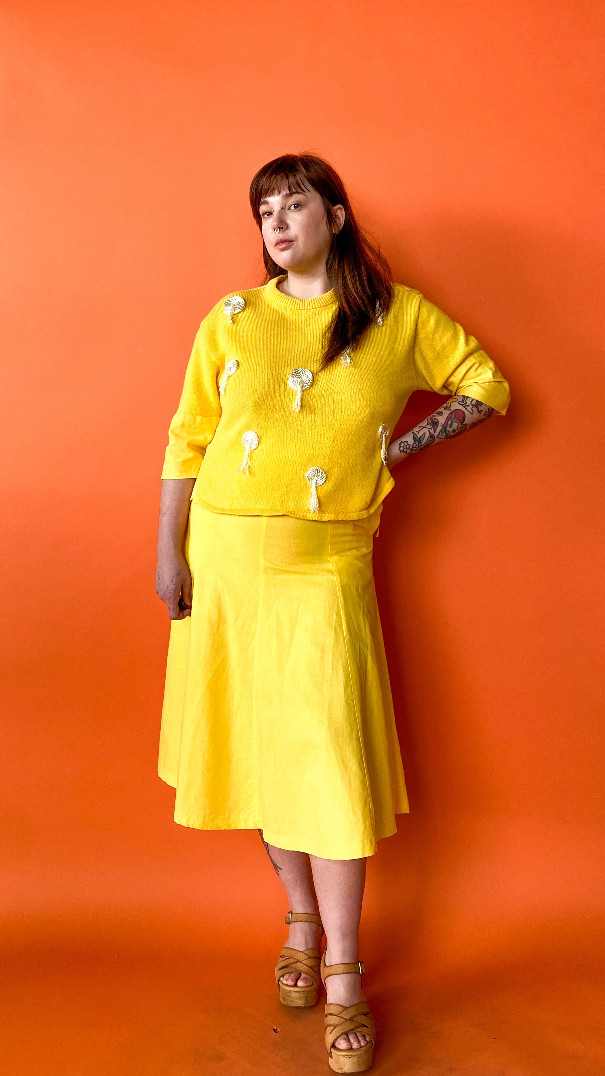 1980s Sunshine Yellow Skirt Set, sz. XL