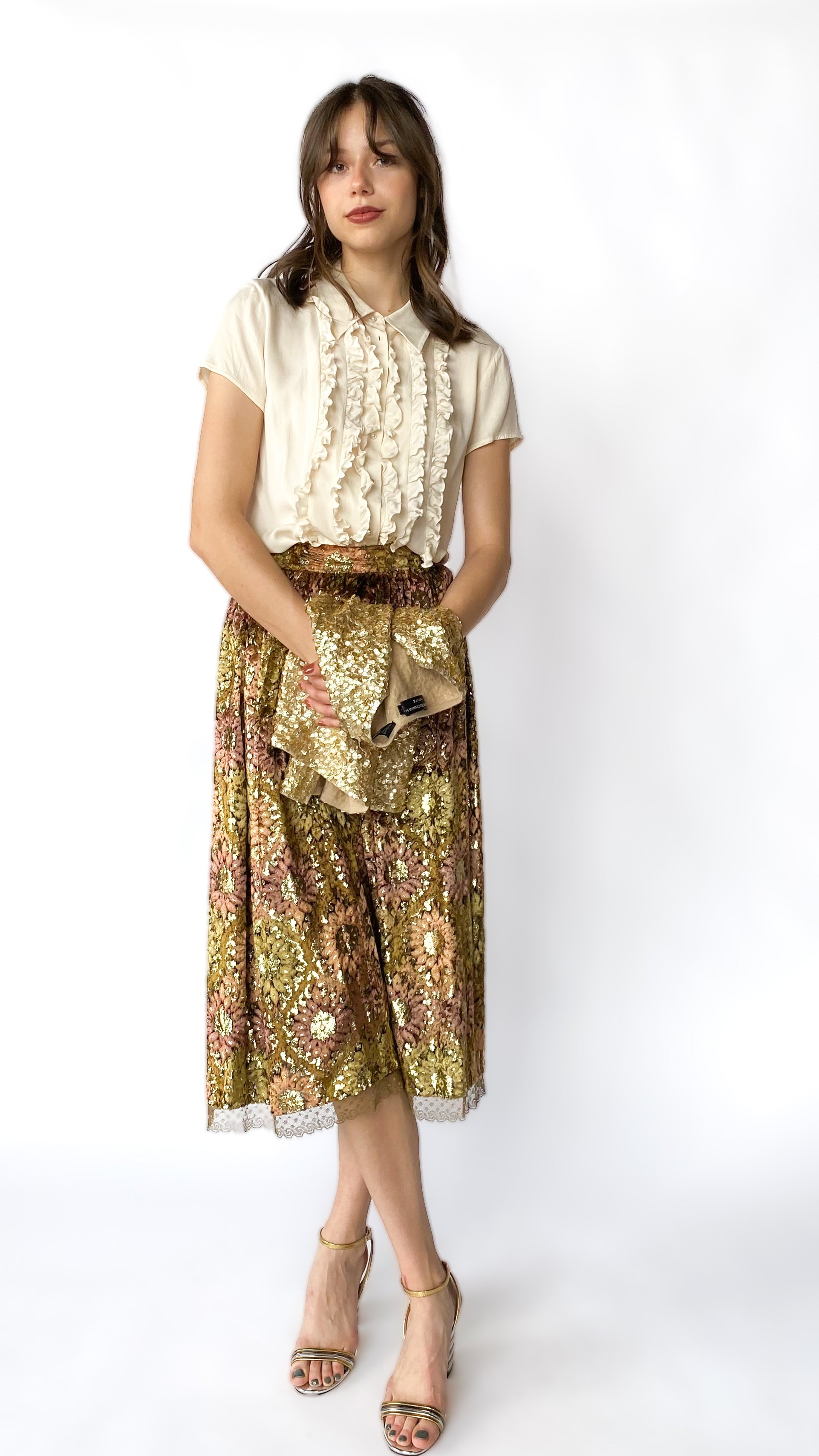 1990s St. John Ivory Silk Ruffle Blouse sz. M