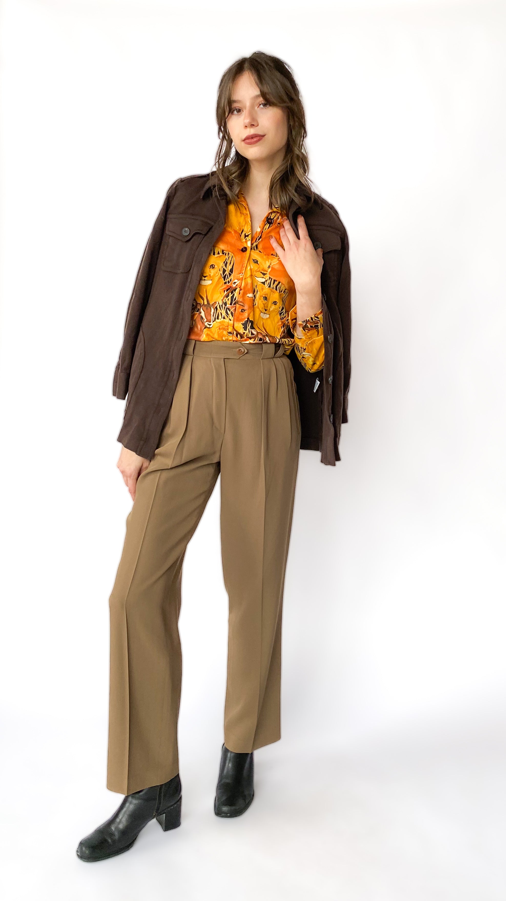 Chocolate brown button down shacket with cargo breast pockets and inseam pockets.