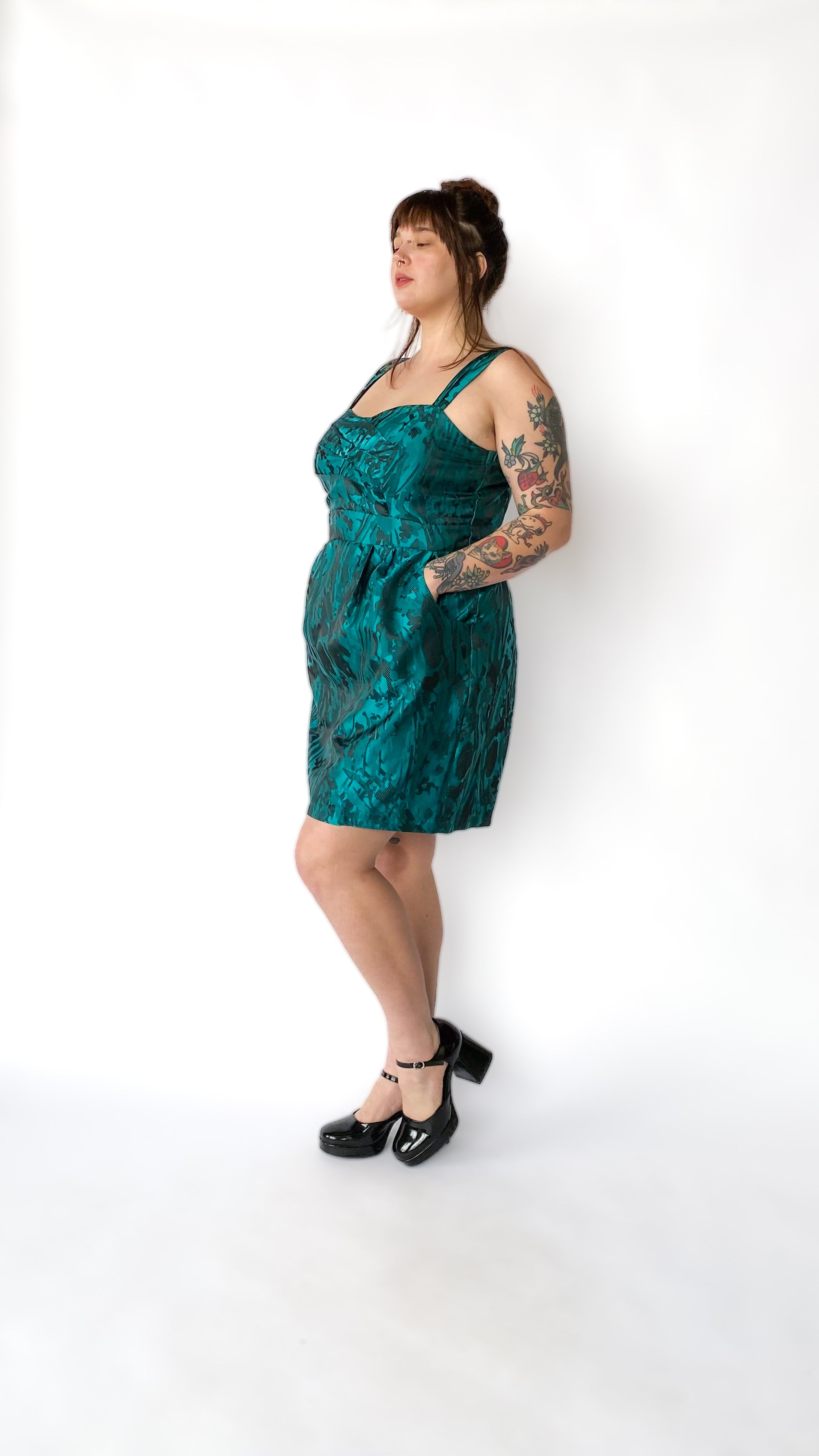 Y2K Teal and Black Cocktail Dress, sz. 2XL