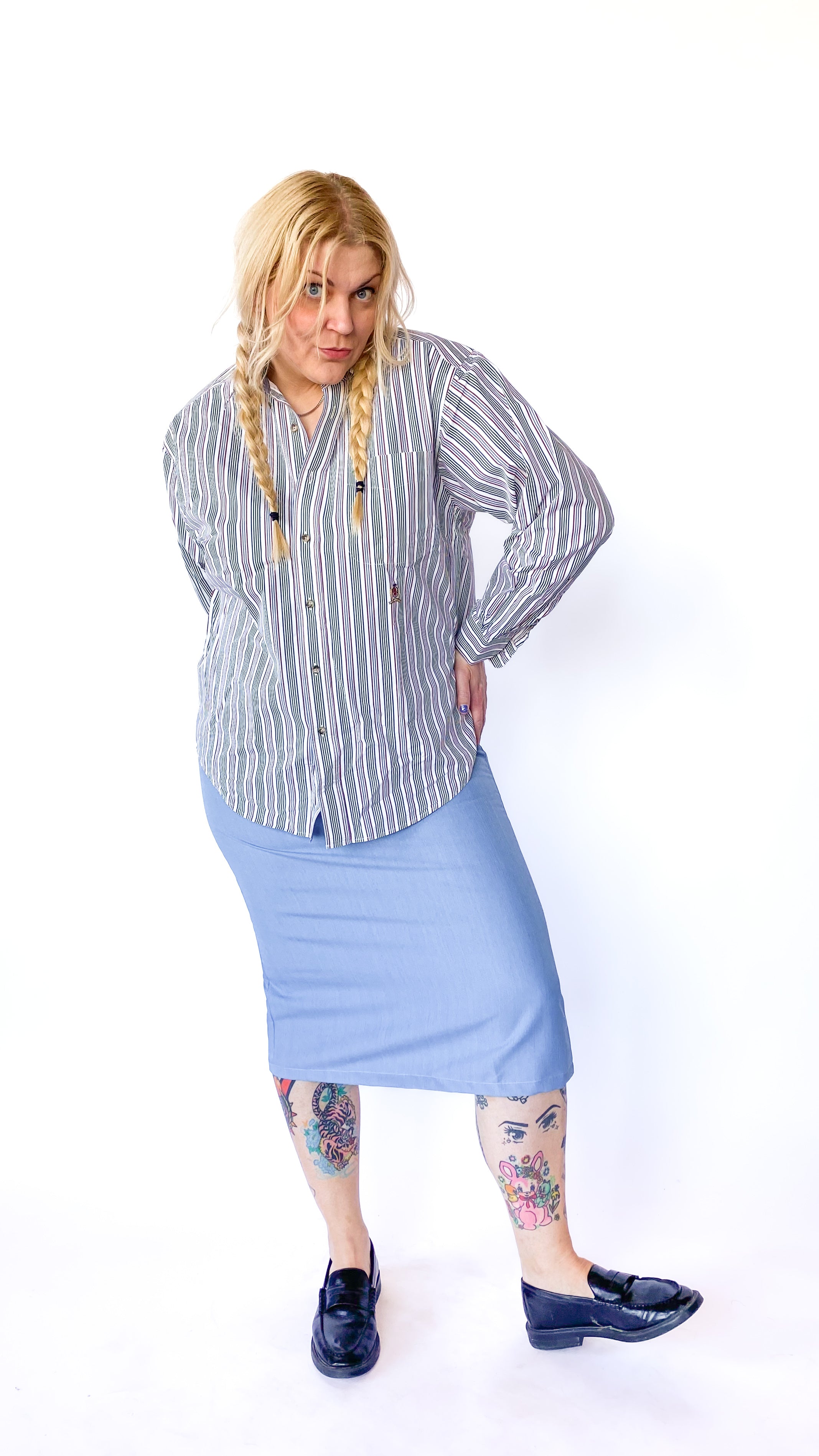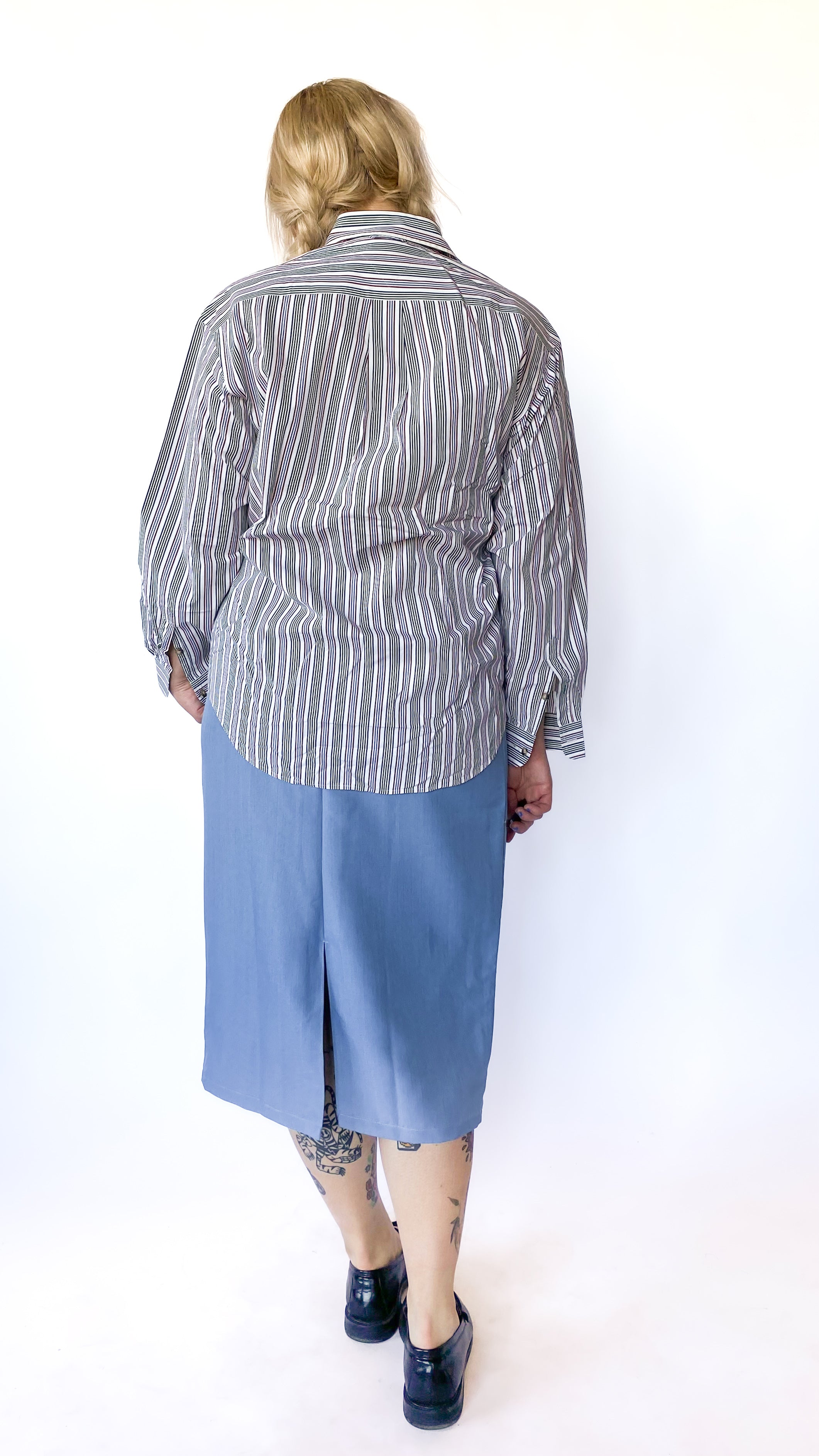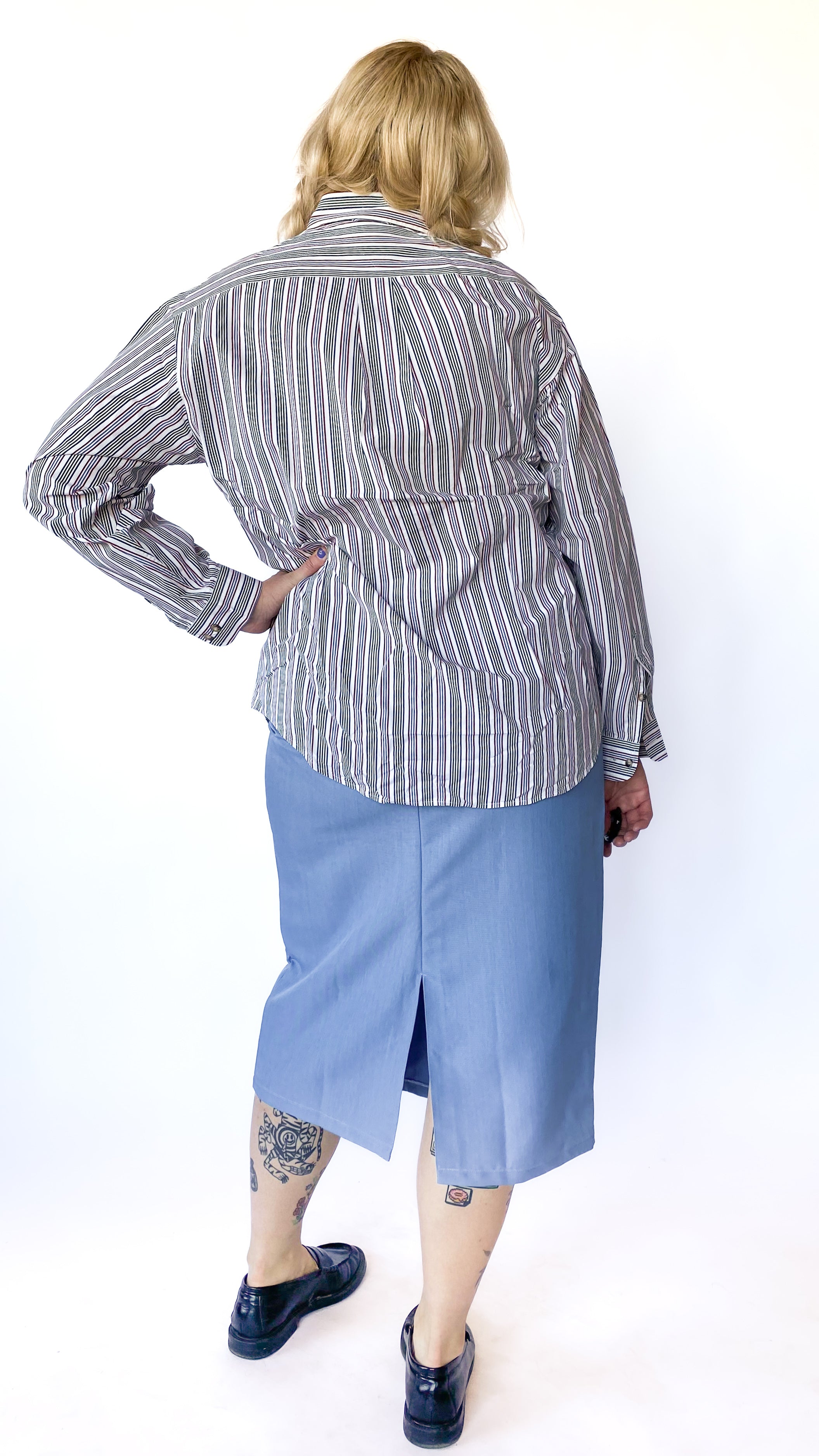 1970s Powder Blue Midi Skirt, sz. 1XL