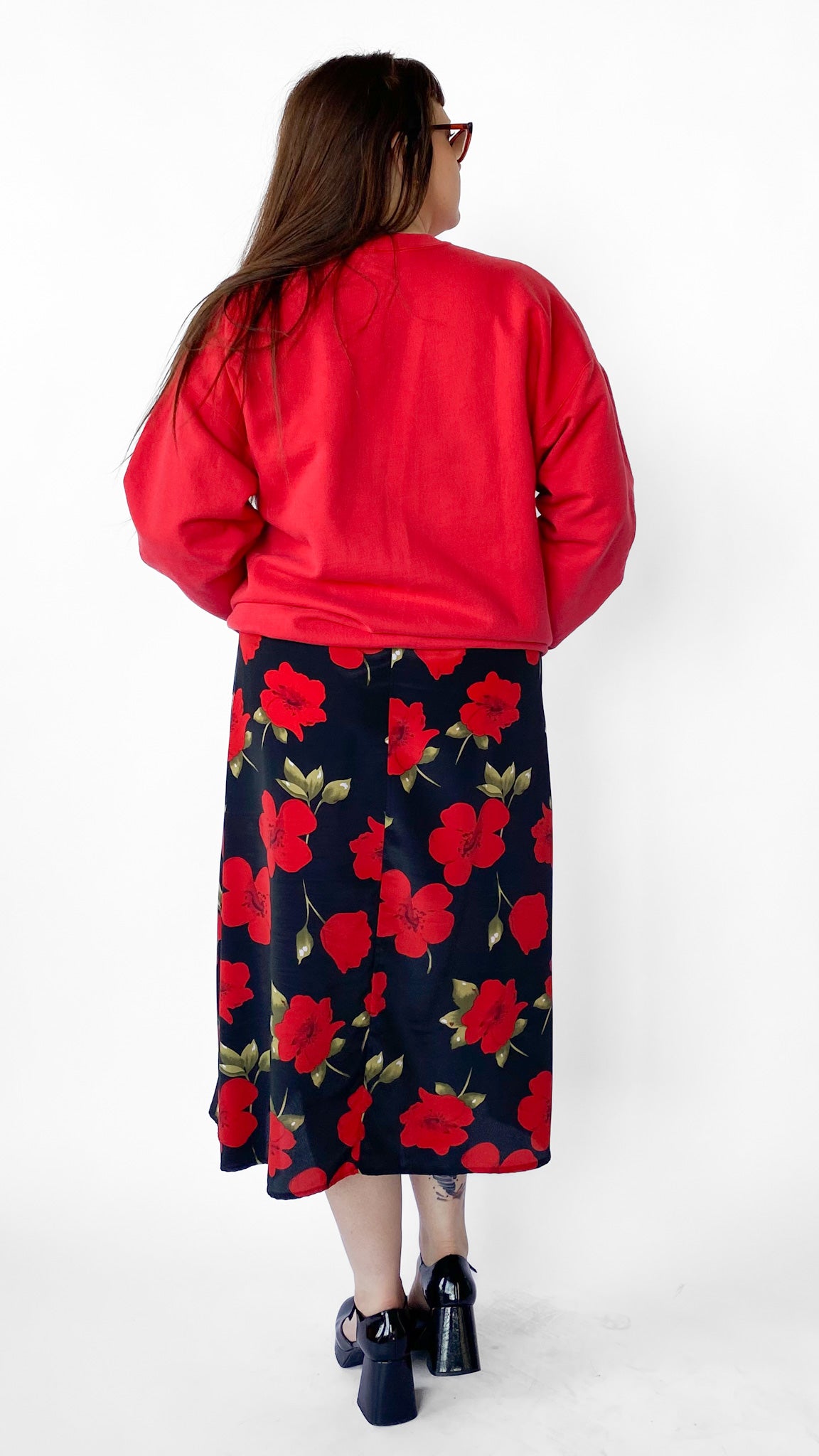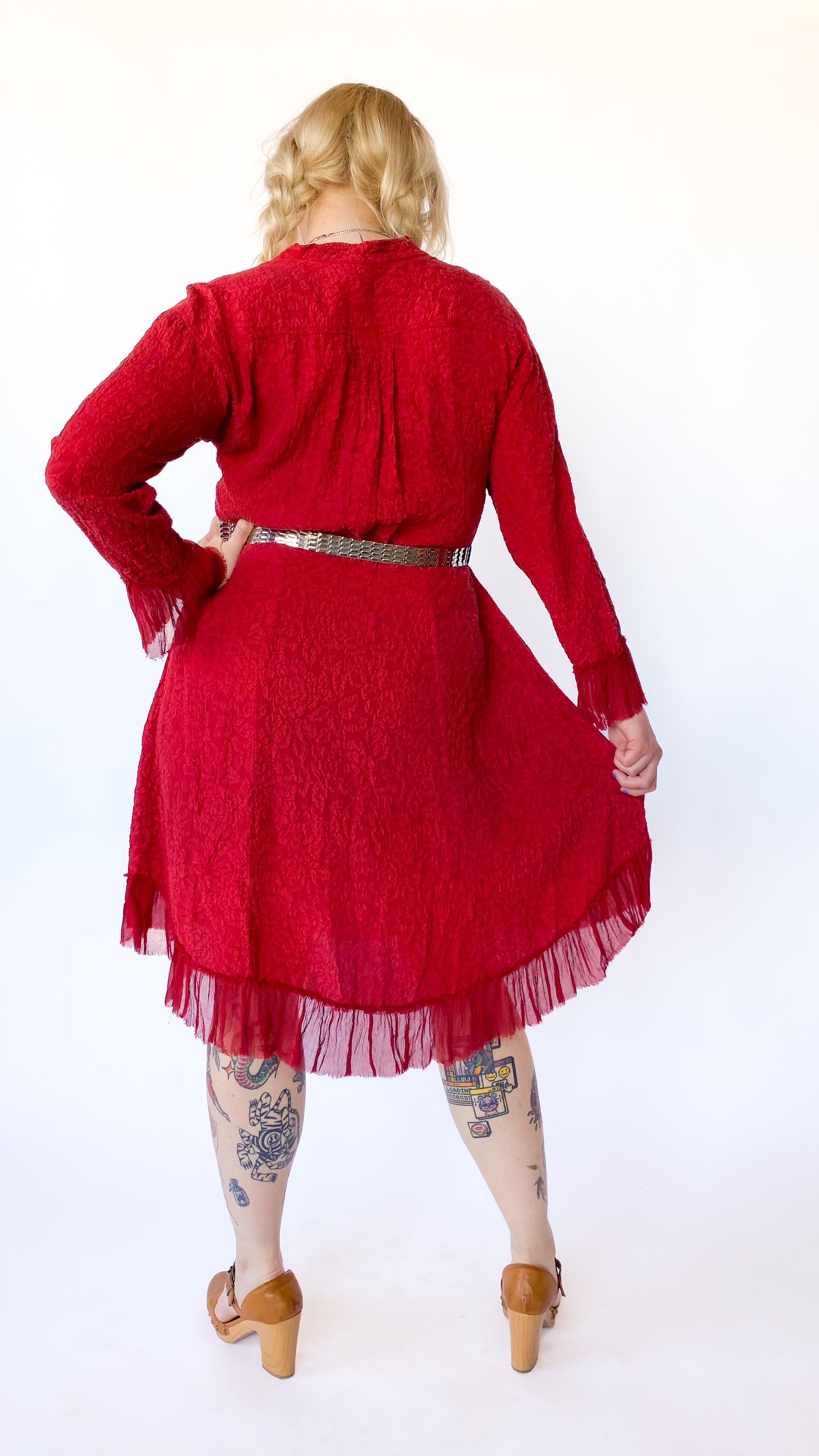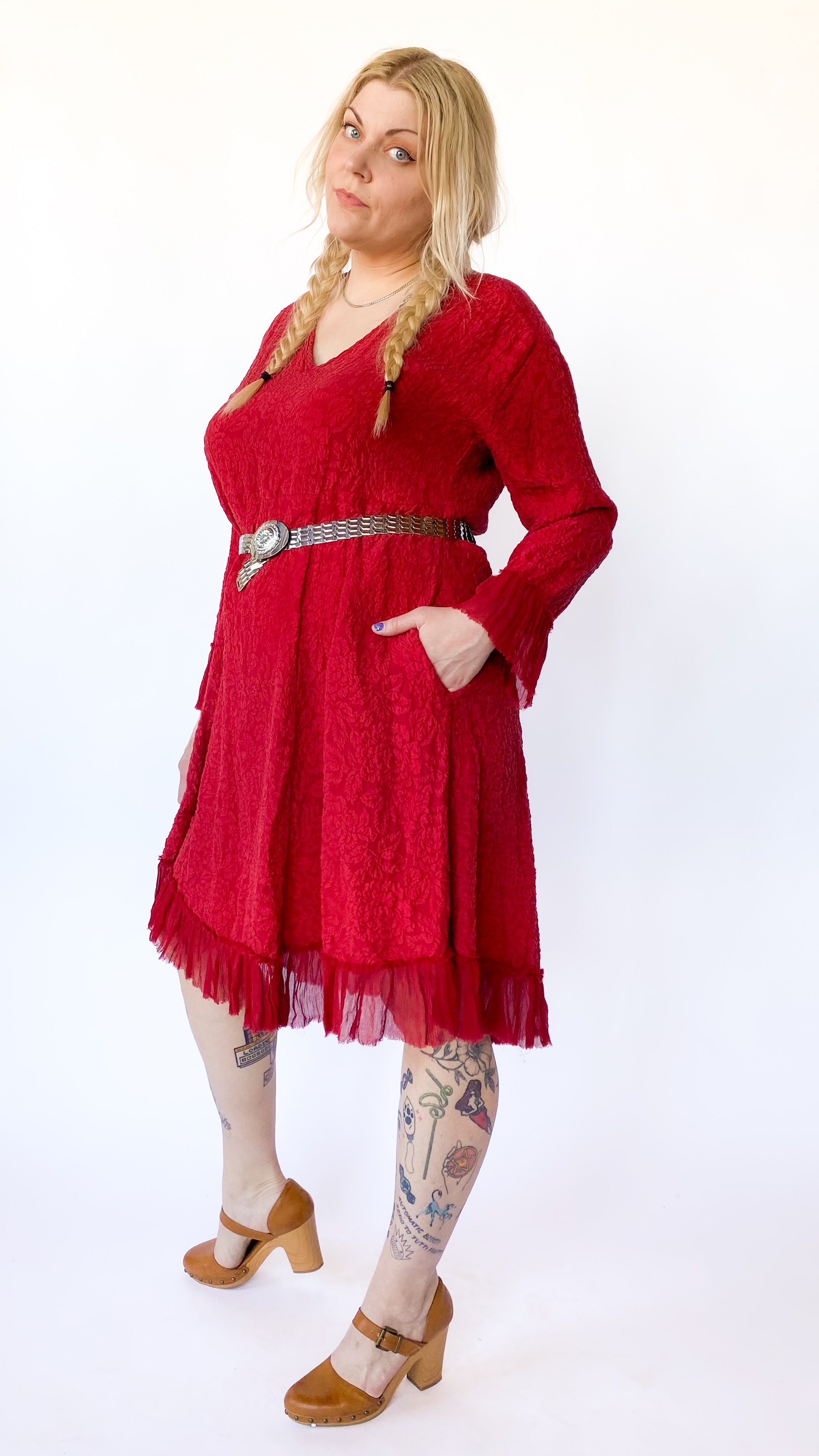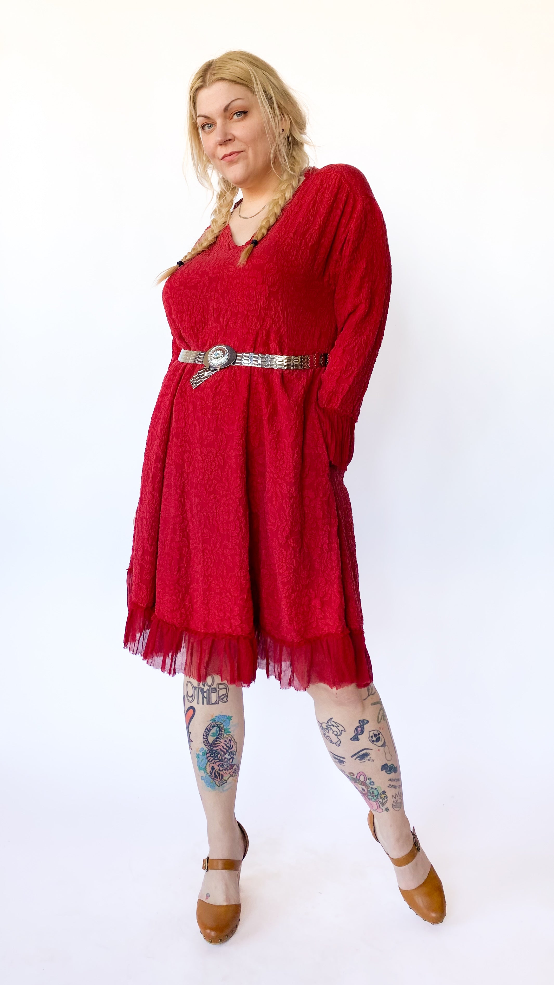 Modern Red Textured Floral Dress, sz. XL/1XL
