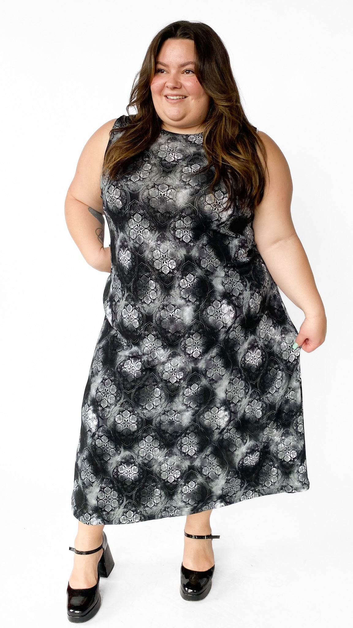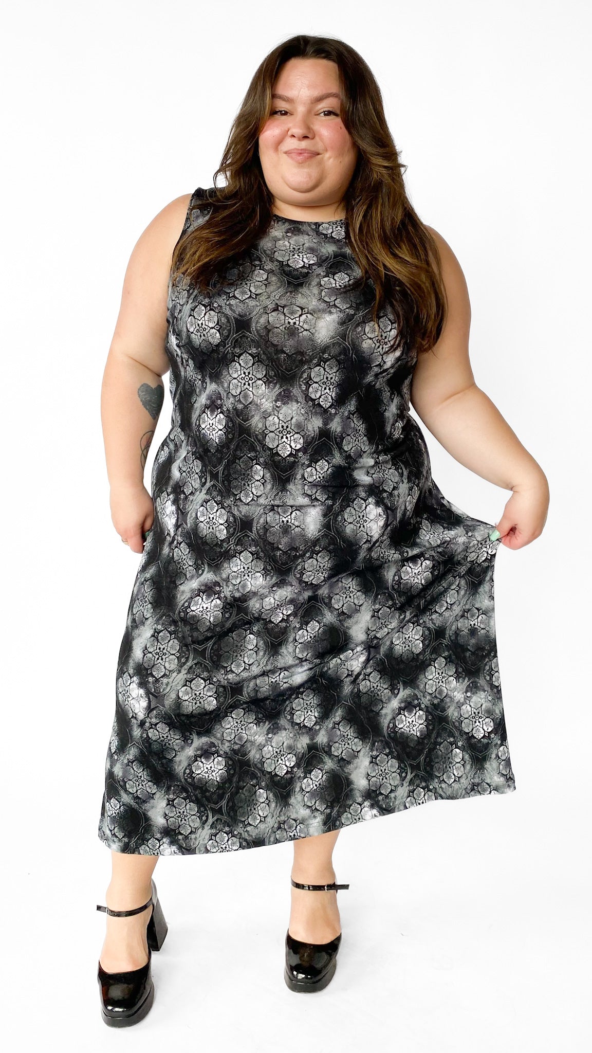 1990s Black & Gray Maxi Dress, sz. 4XL+