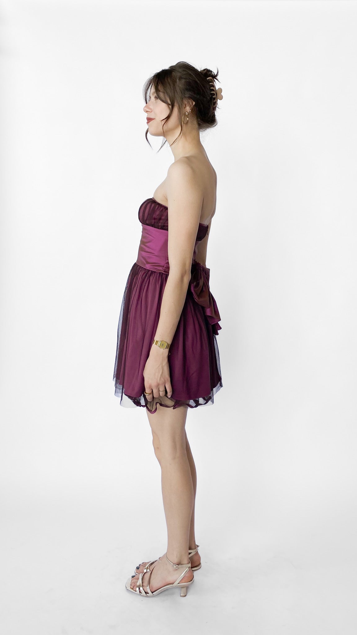Y2K Purple Tulle Strapless Mini Party Dress, sz. XS