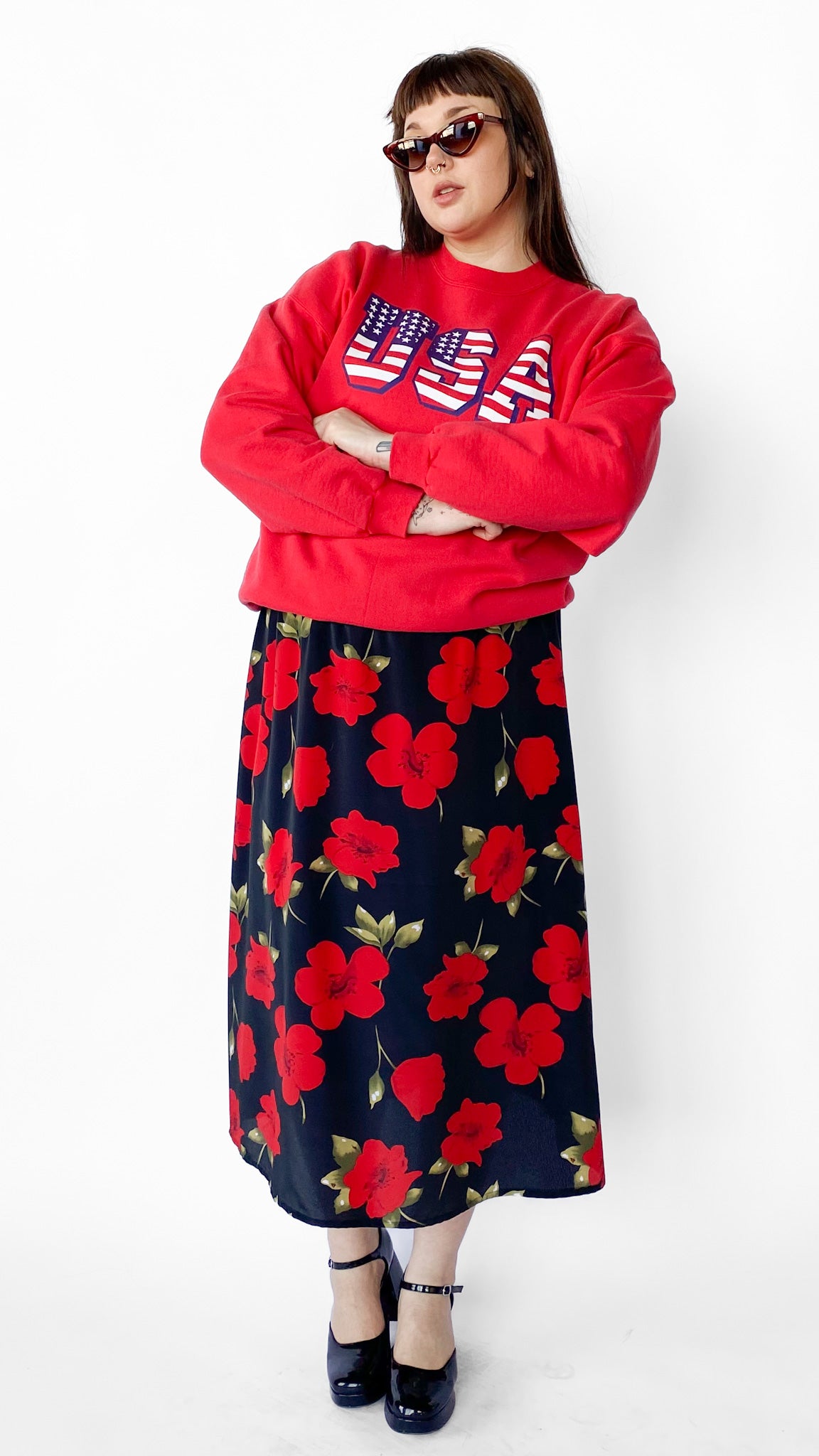 1990s Red USA Sweatshirt, sz. 2XL/3XL