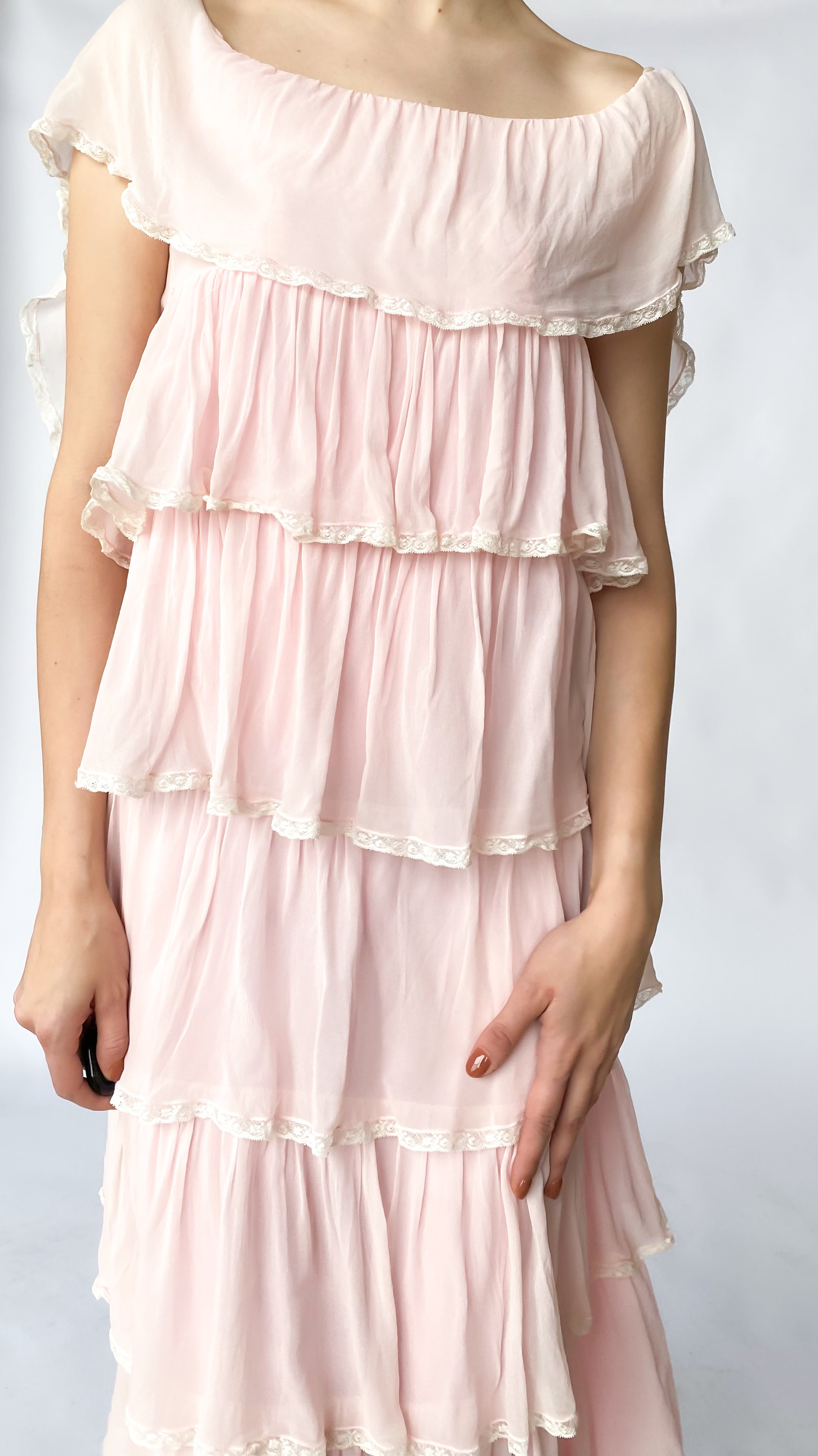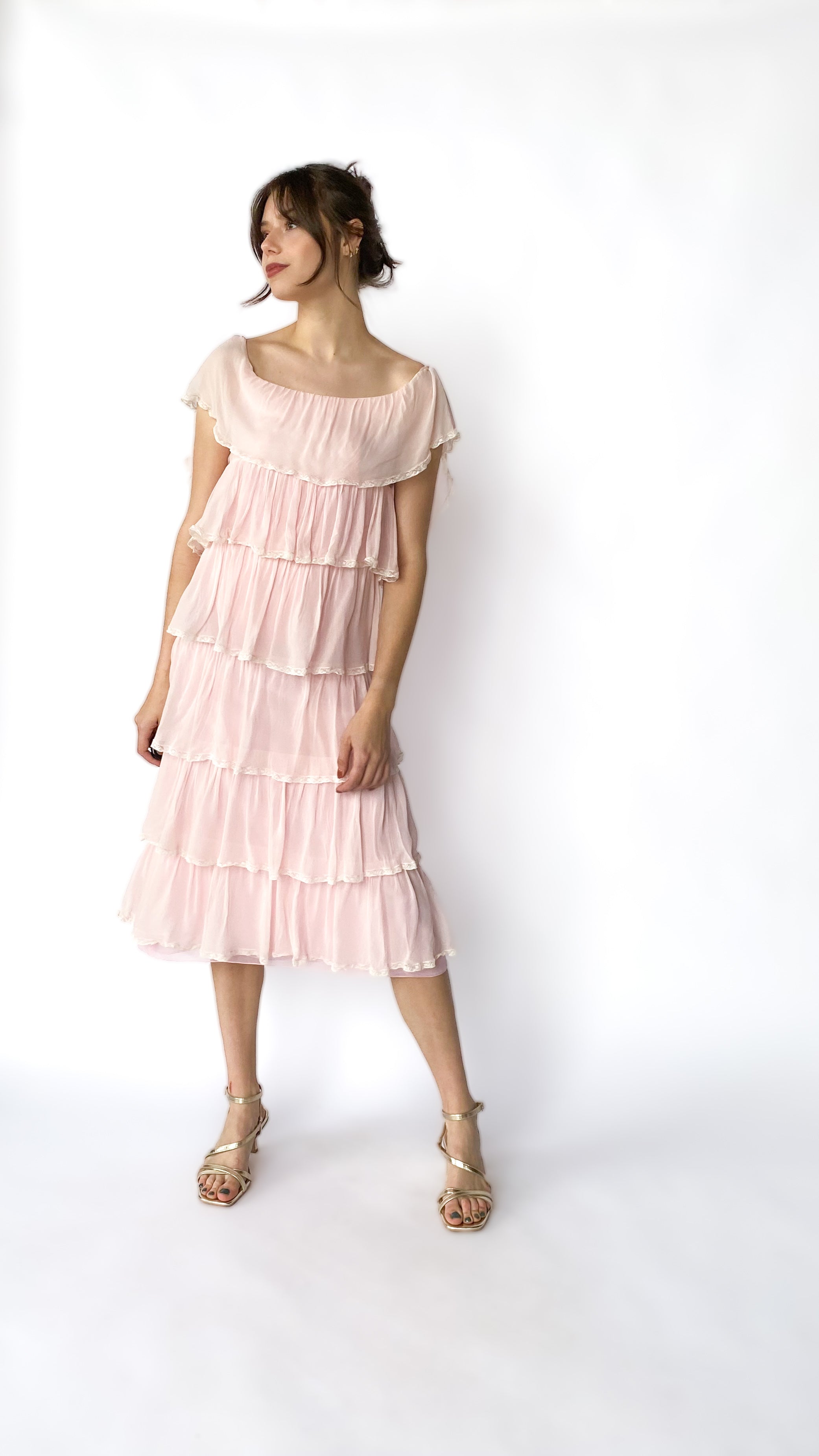 1970s Pale Pink Ruffled Dress, sz. XXS