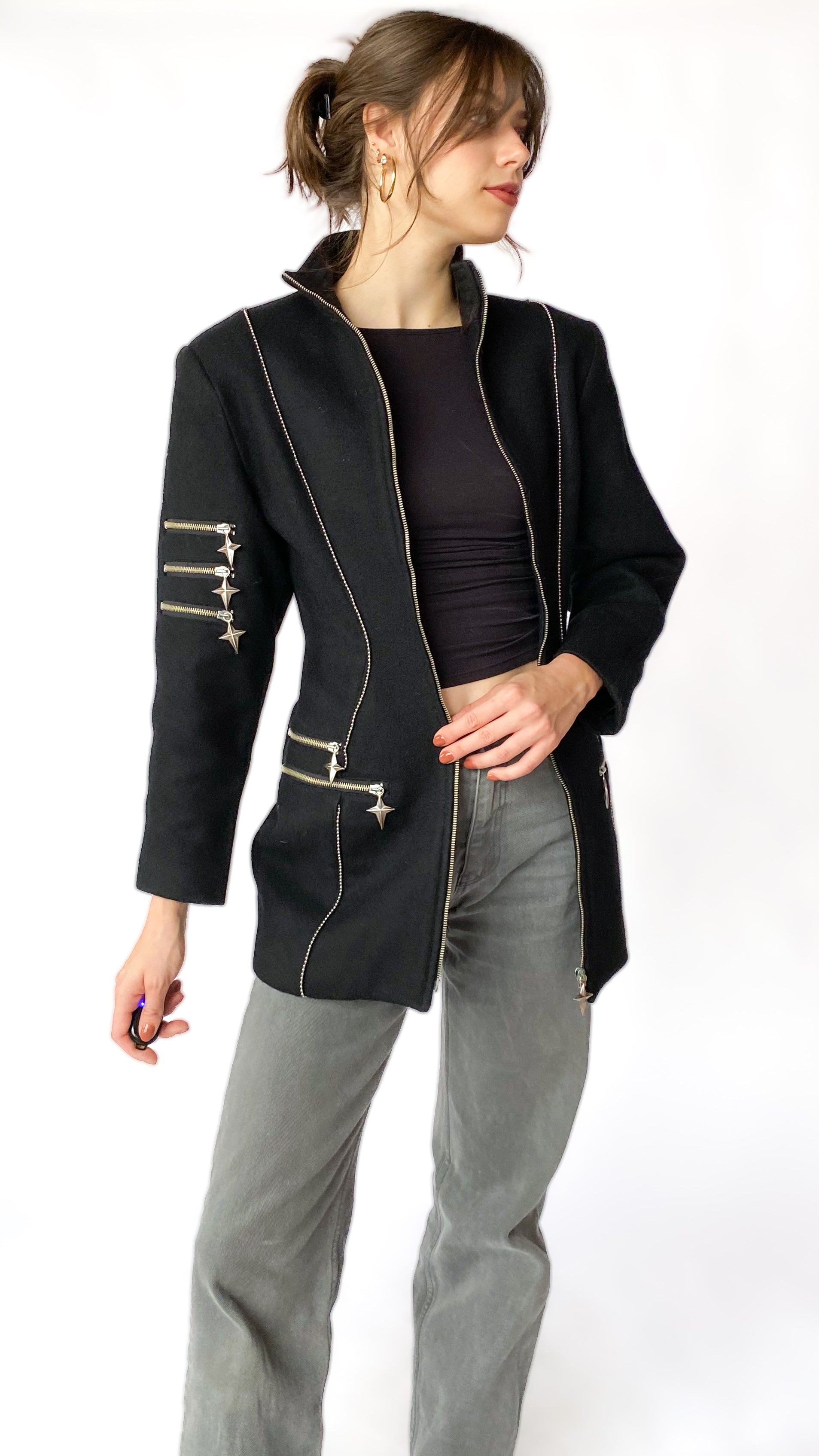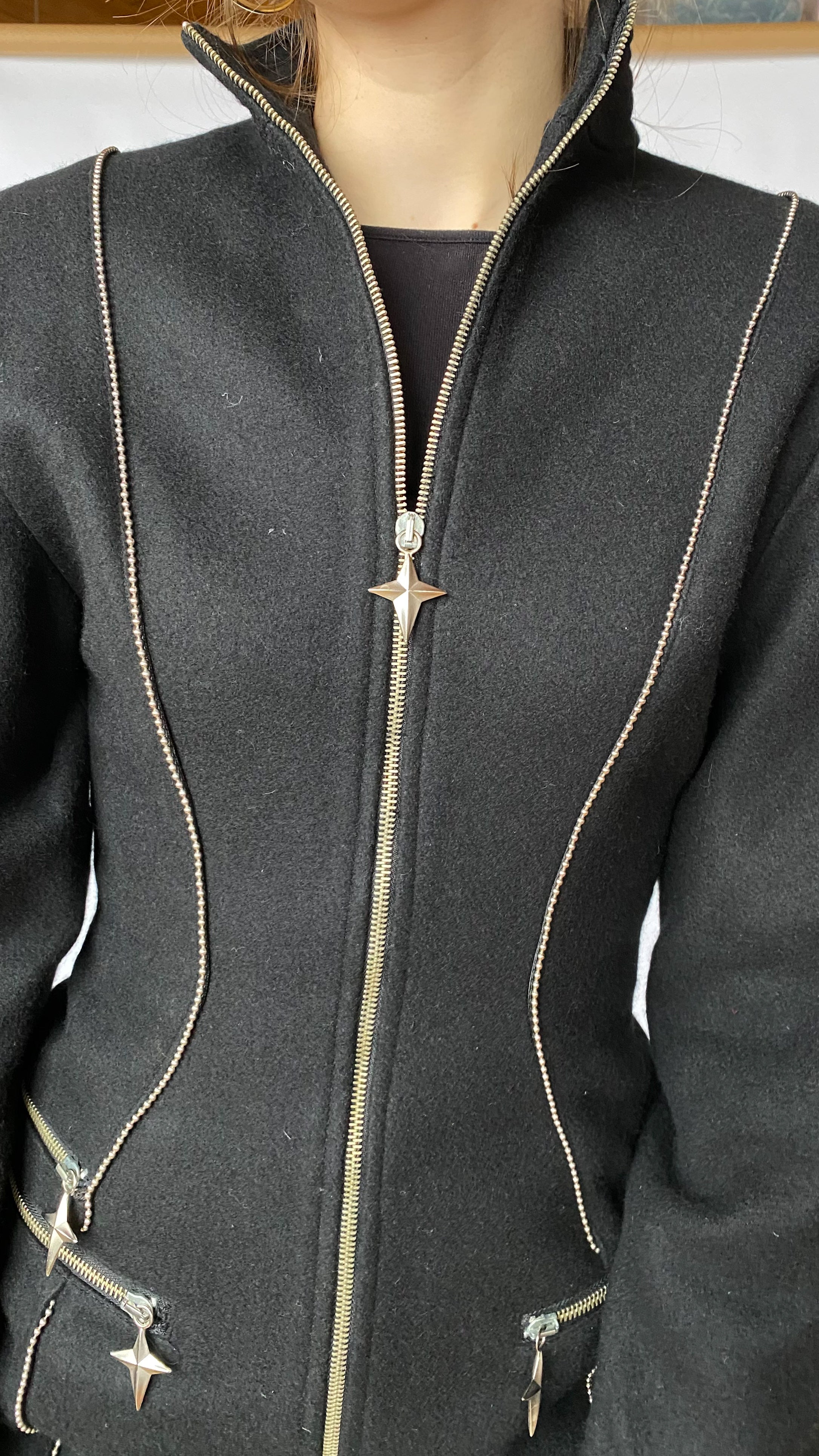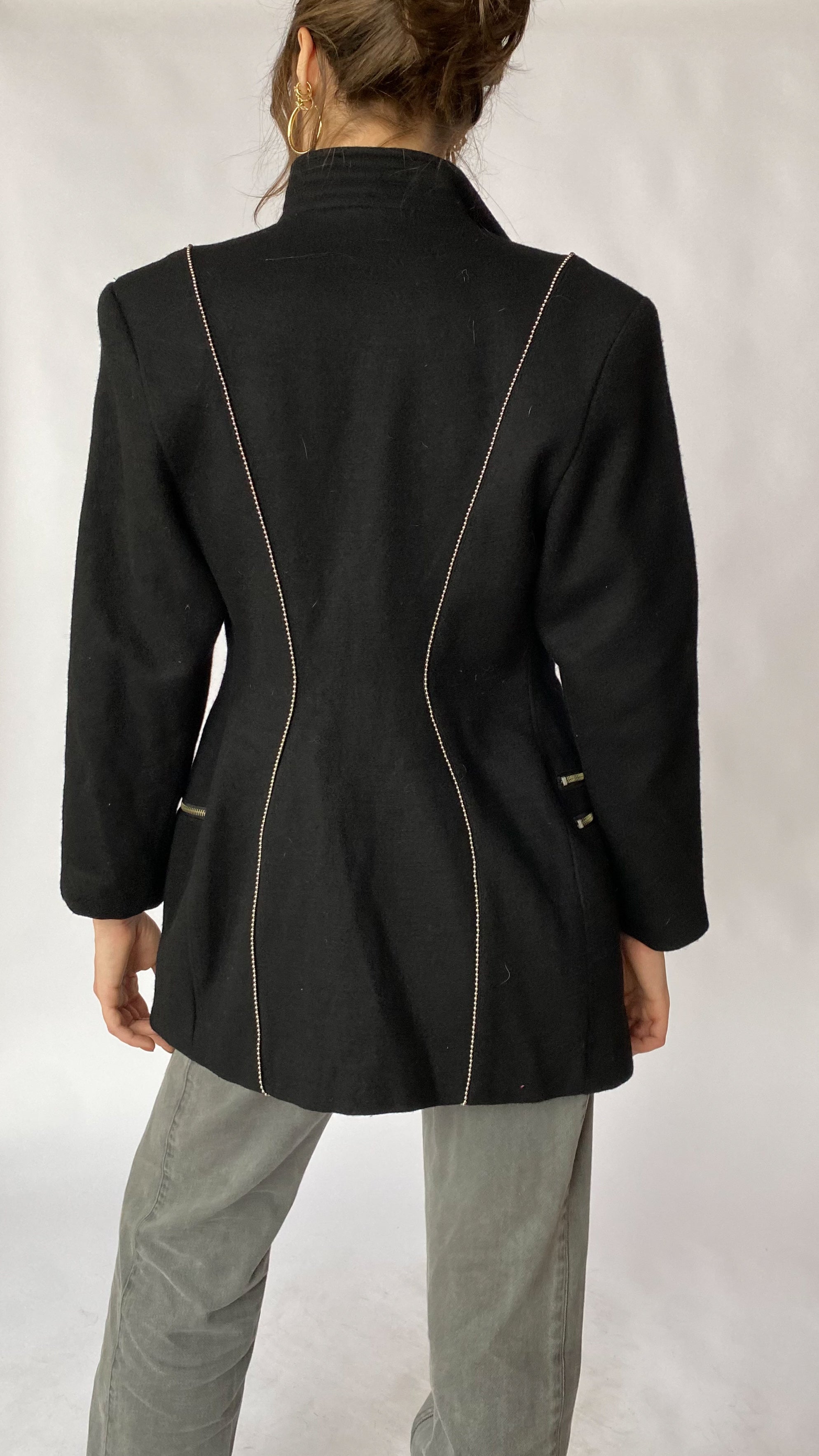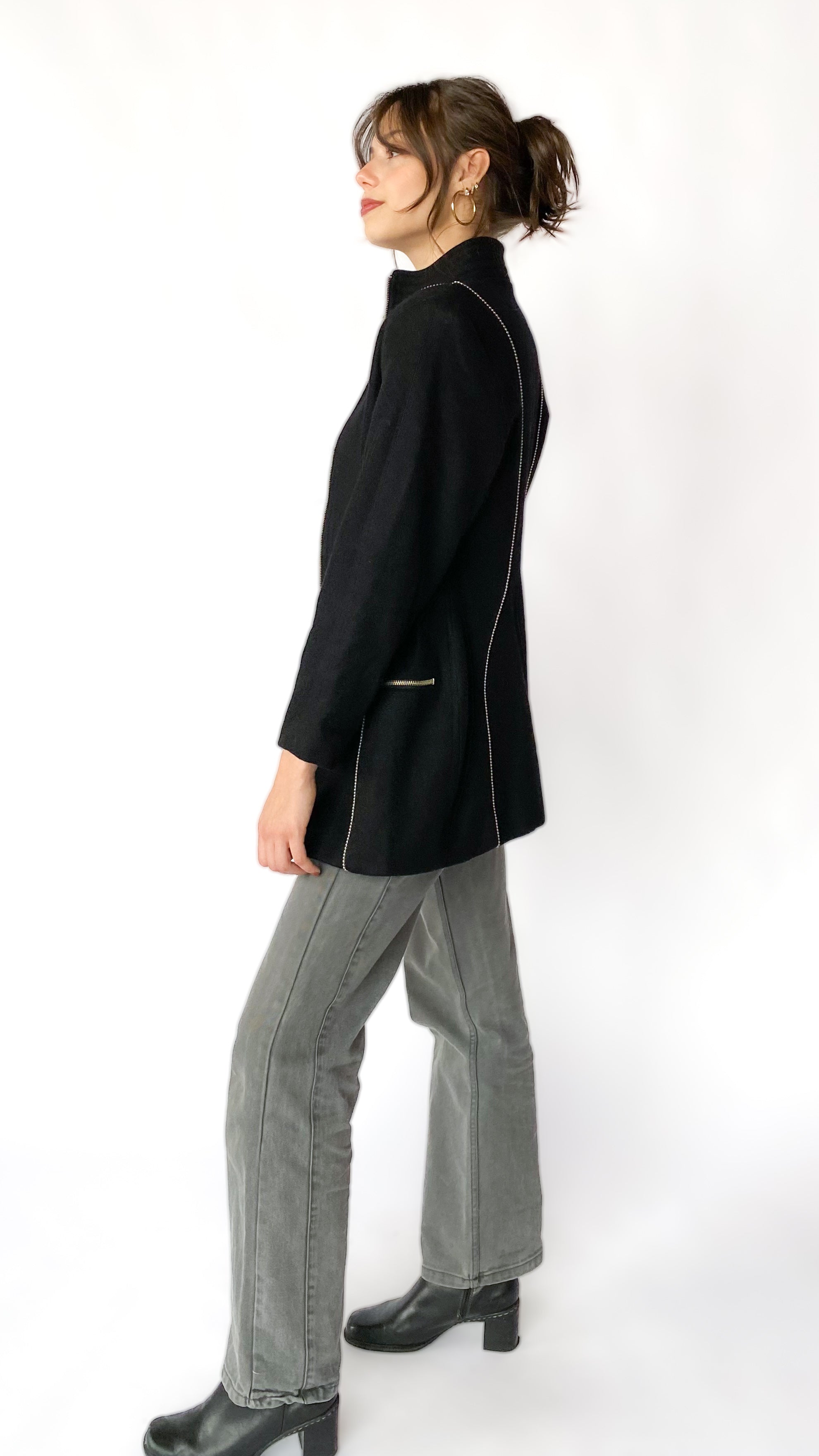 1980s Wool Collared Long Sleeve Black Dress, sz. 2XL-4XL