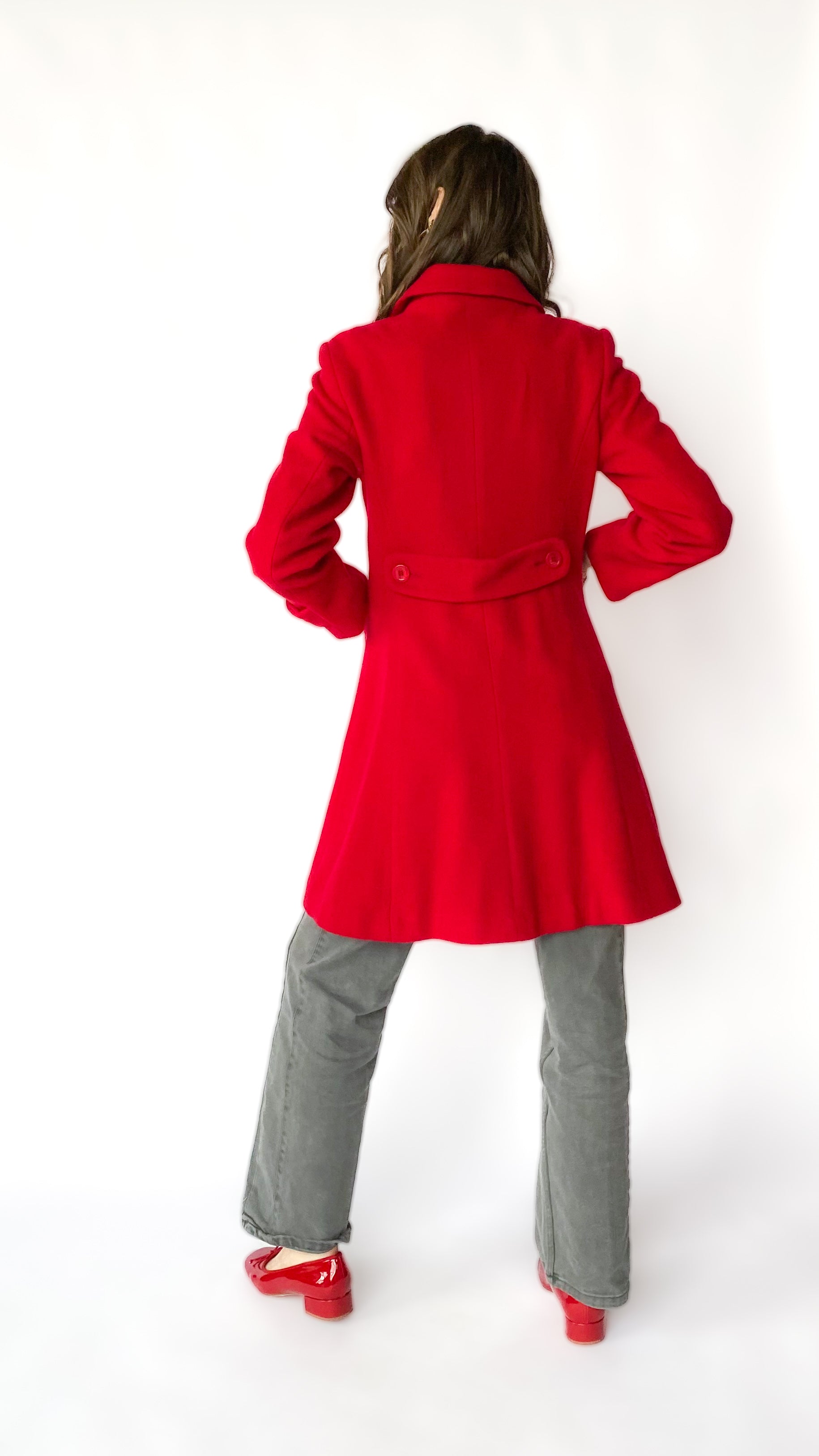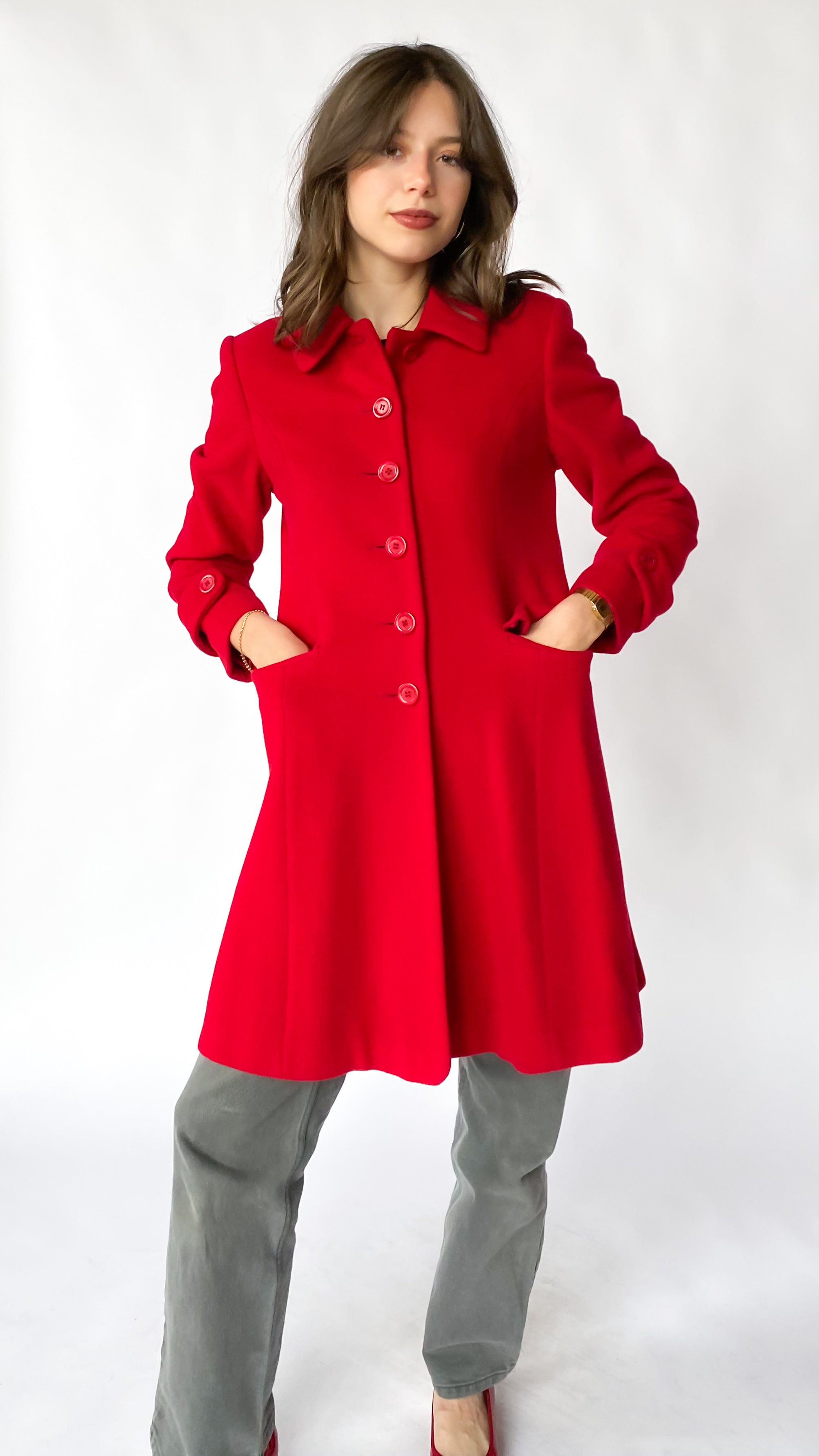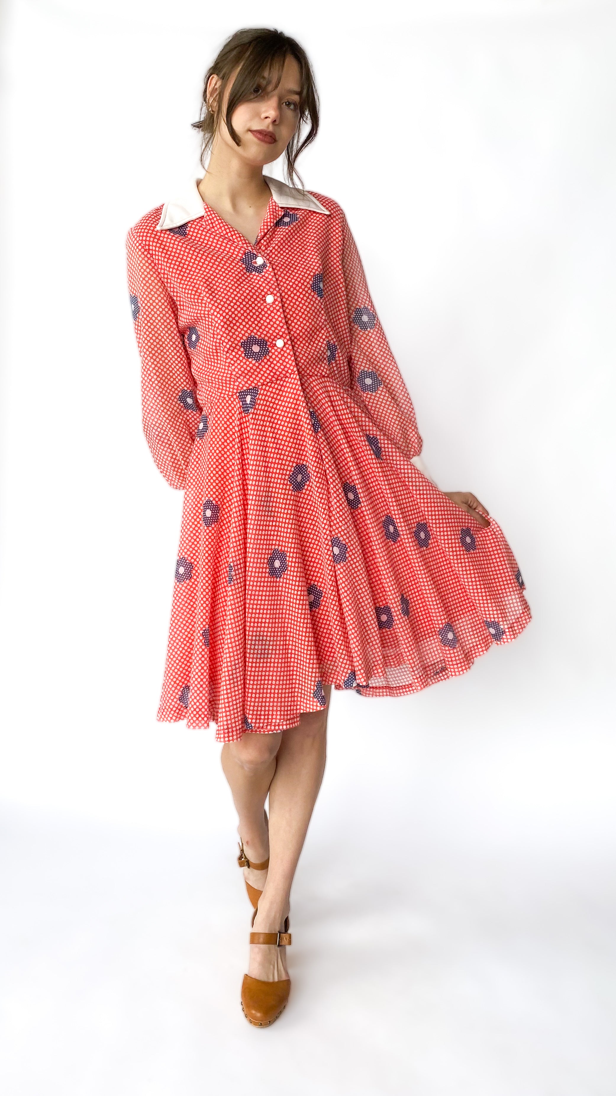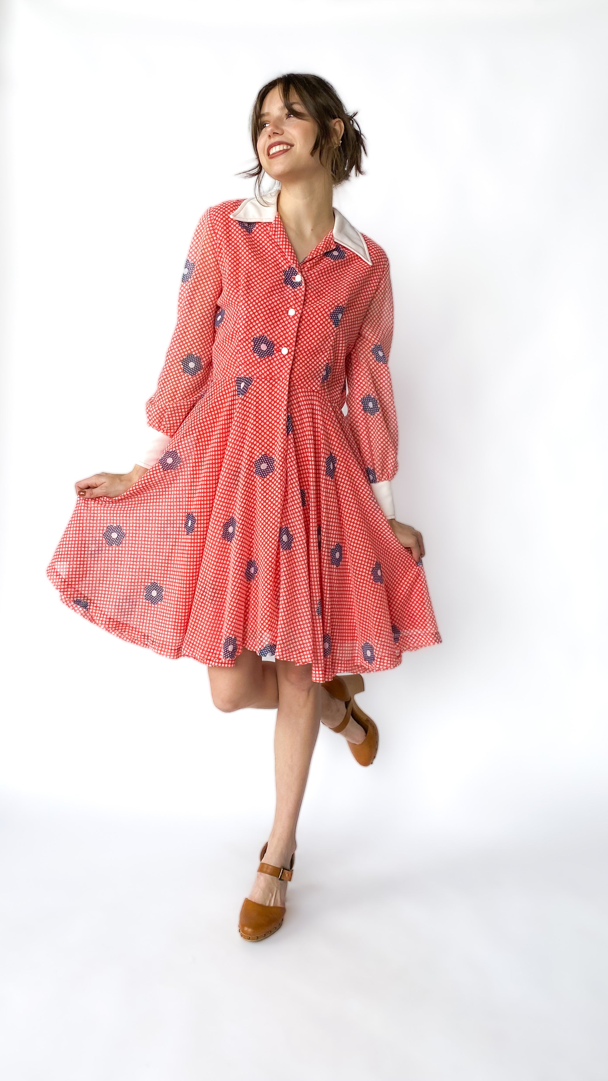 1970s Bright Red Pinafore Jumpsuit , sz. S