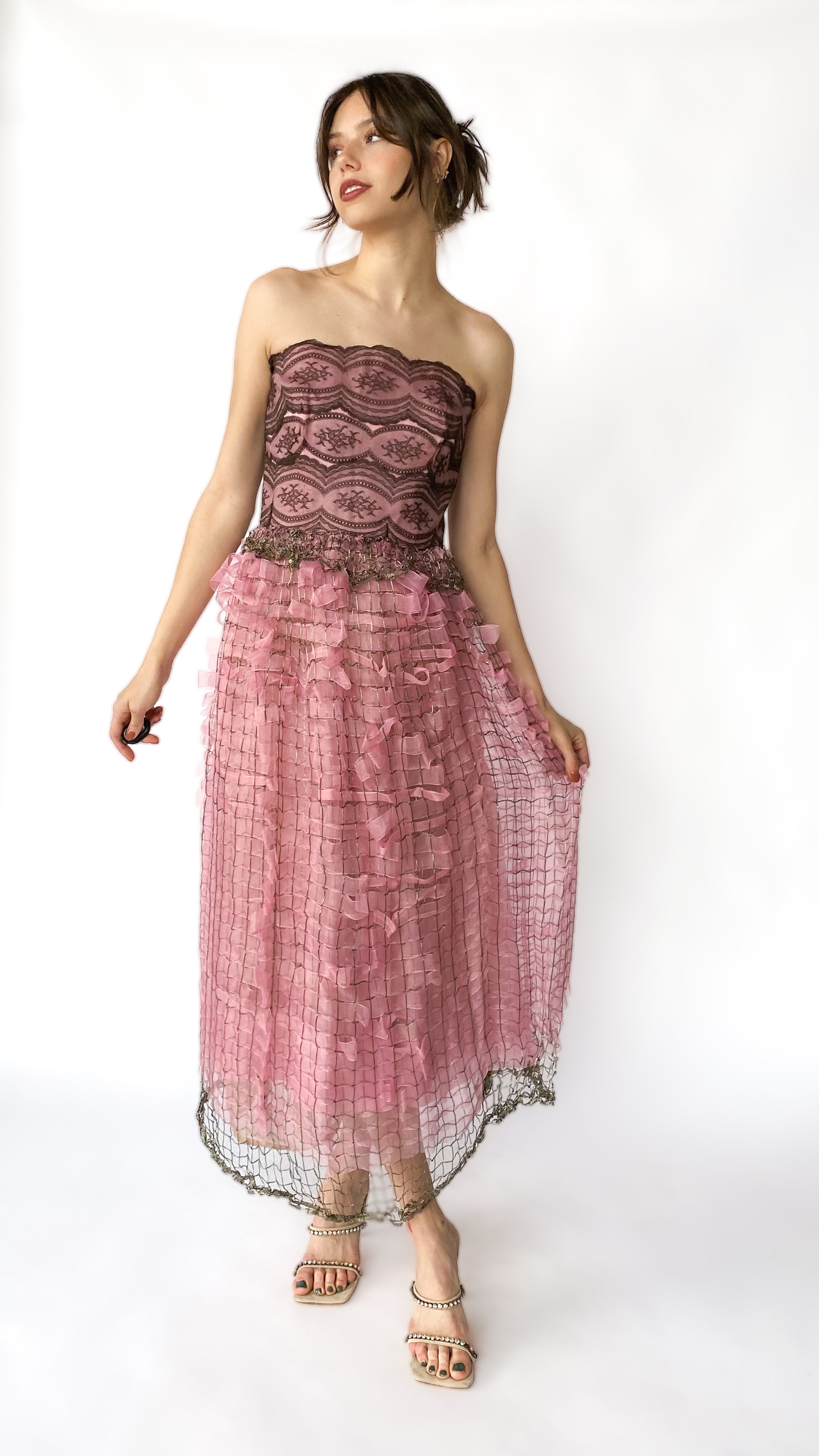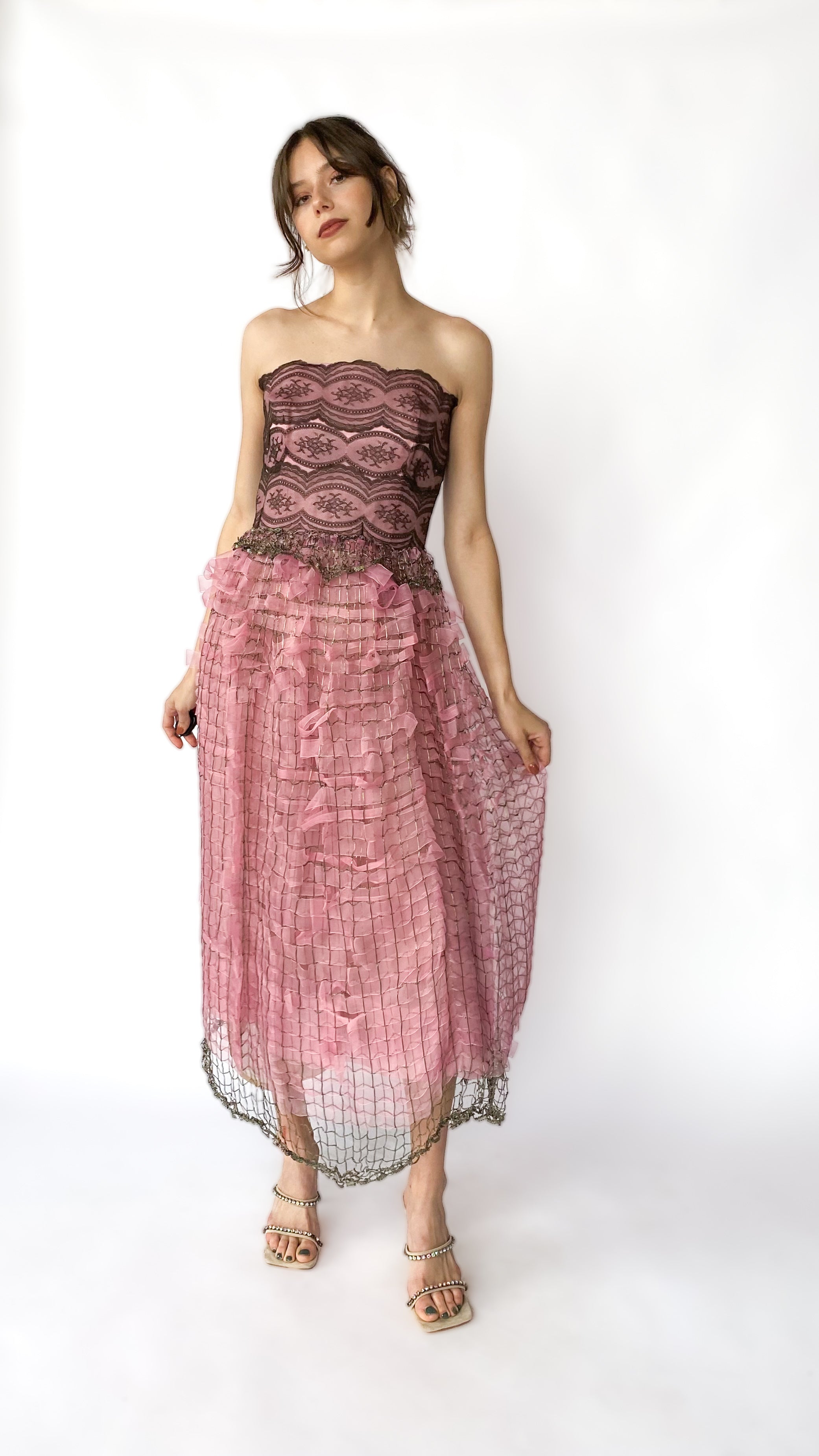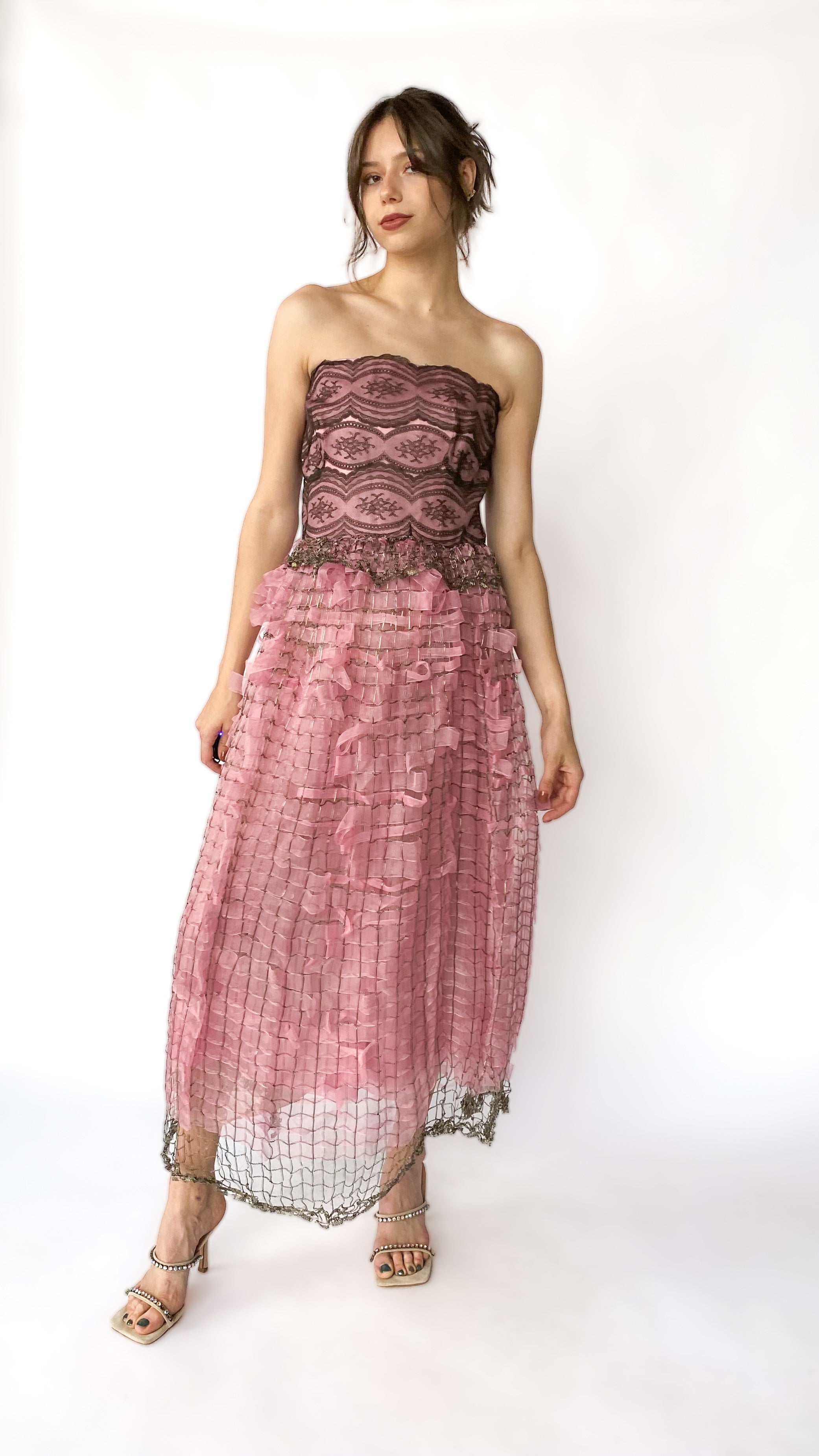 Y2K Pink & Silver Woven Ribbon Gown, sz. S