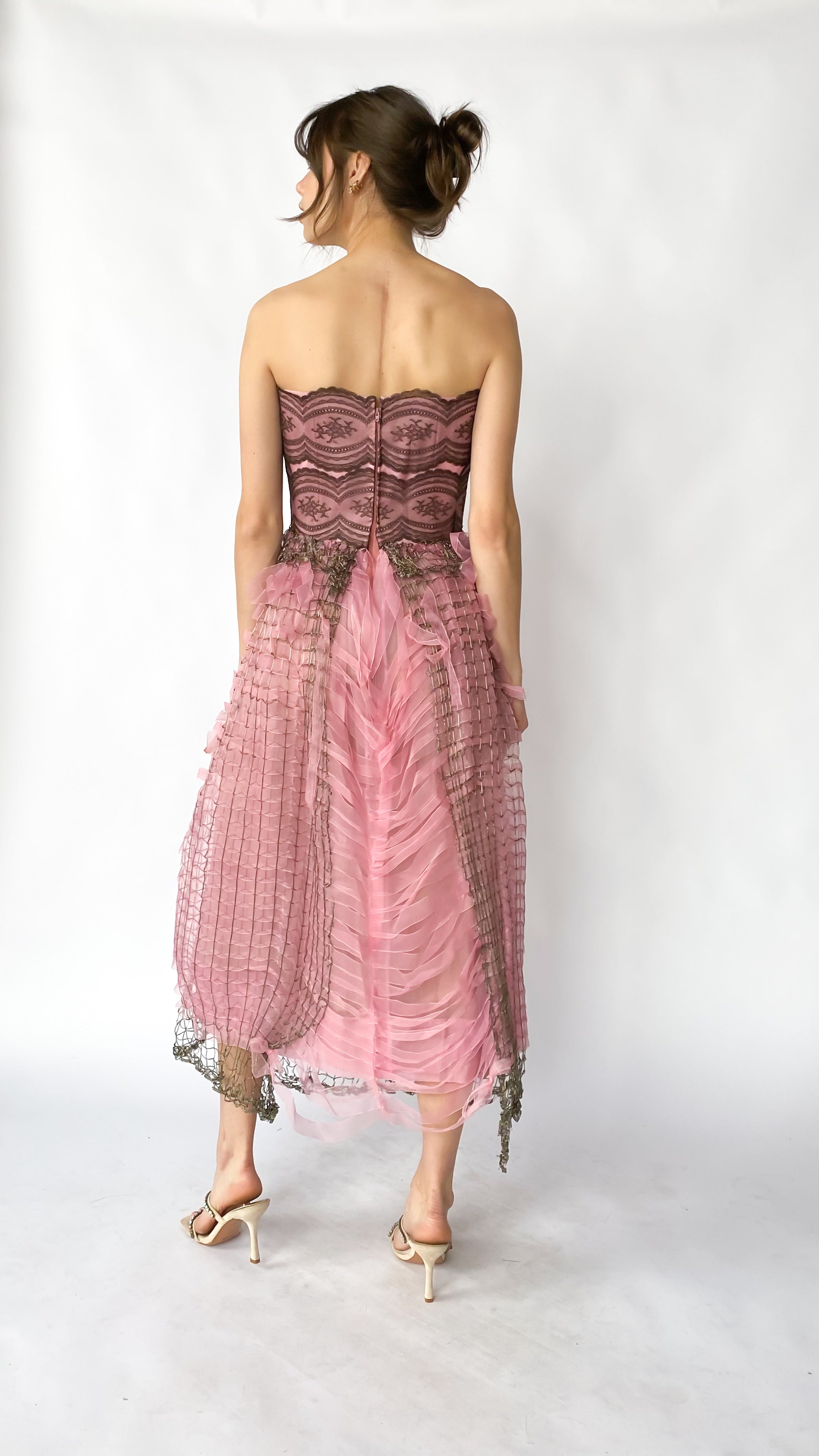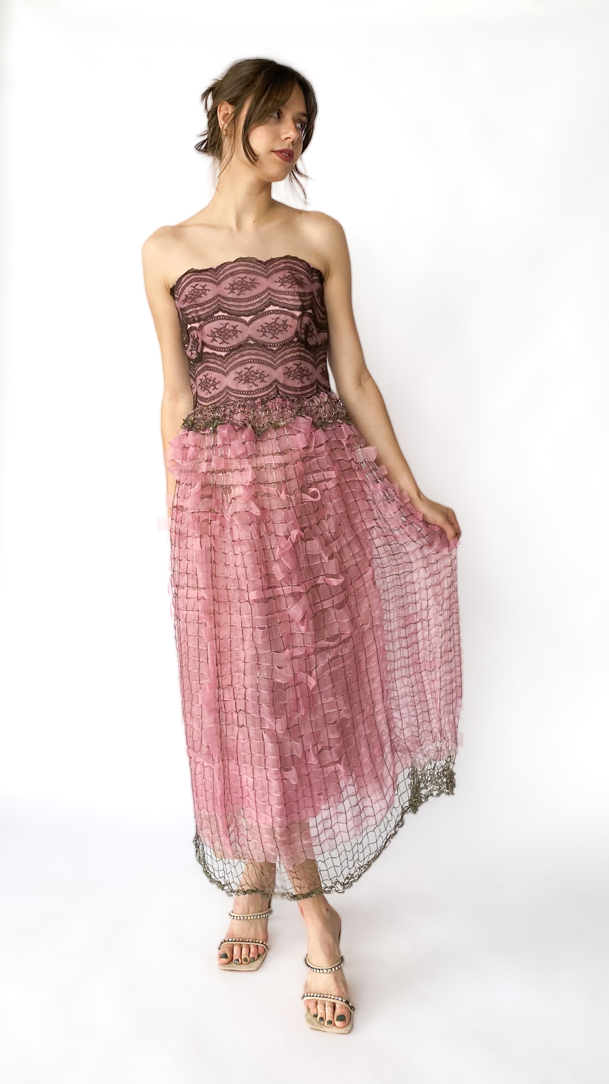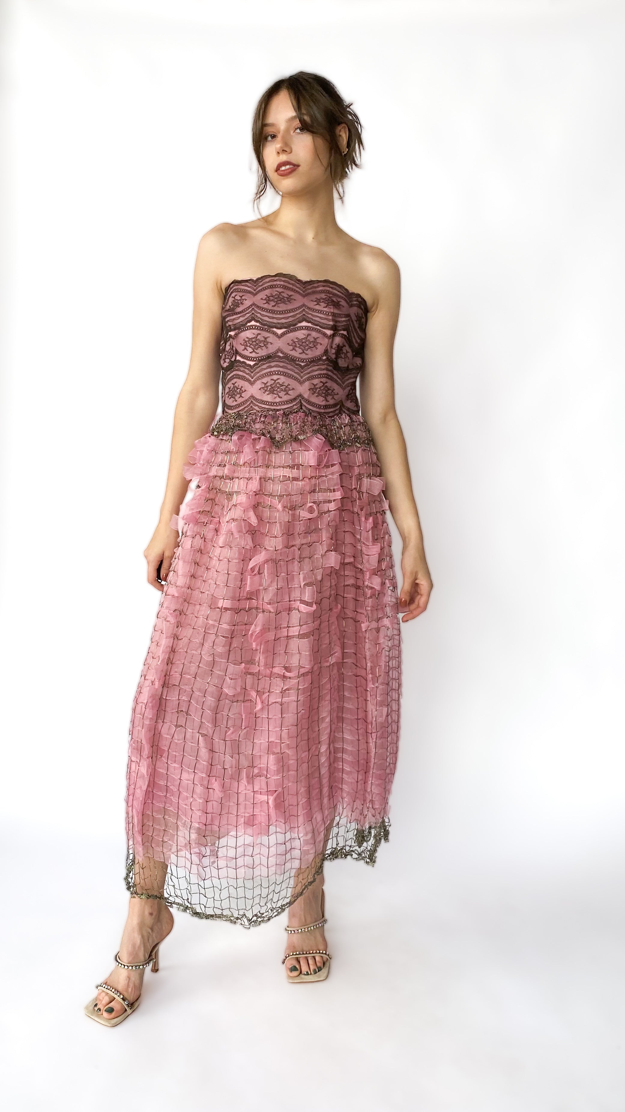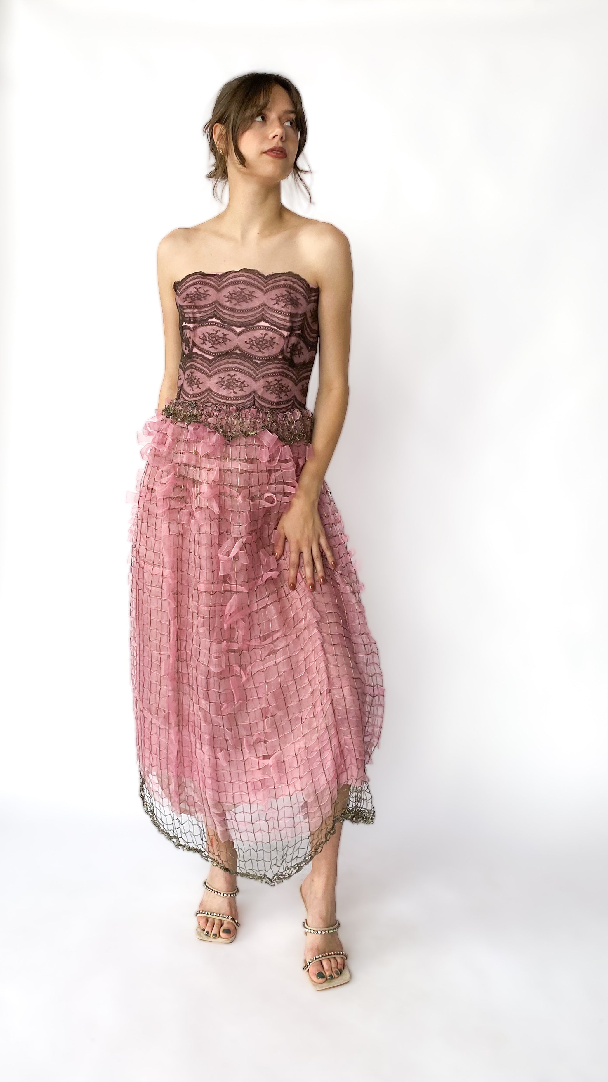 Y2K Pink & Silver Woven Ribbon Gown, sz. S