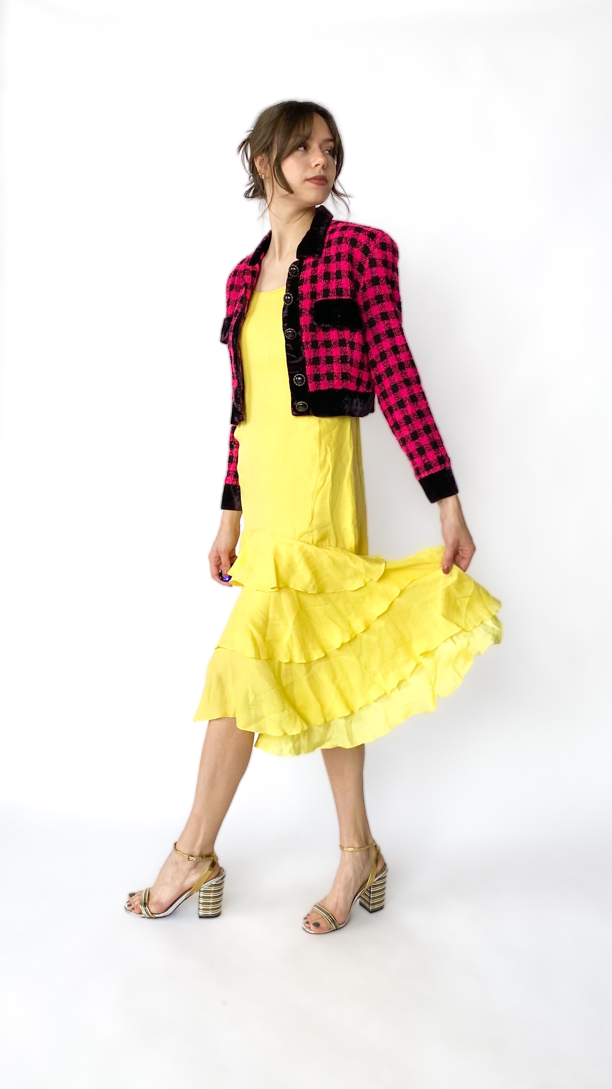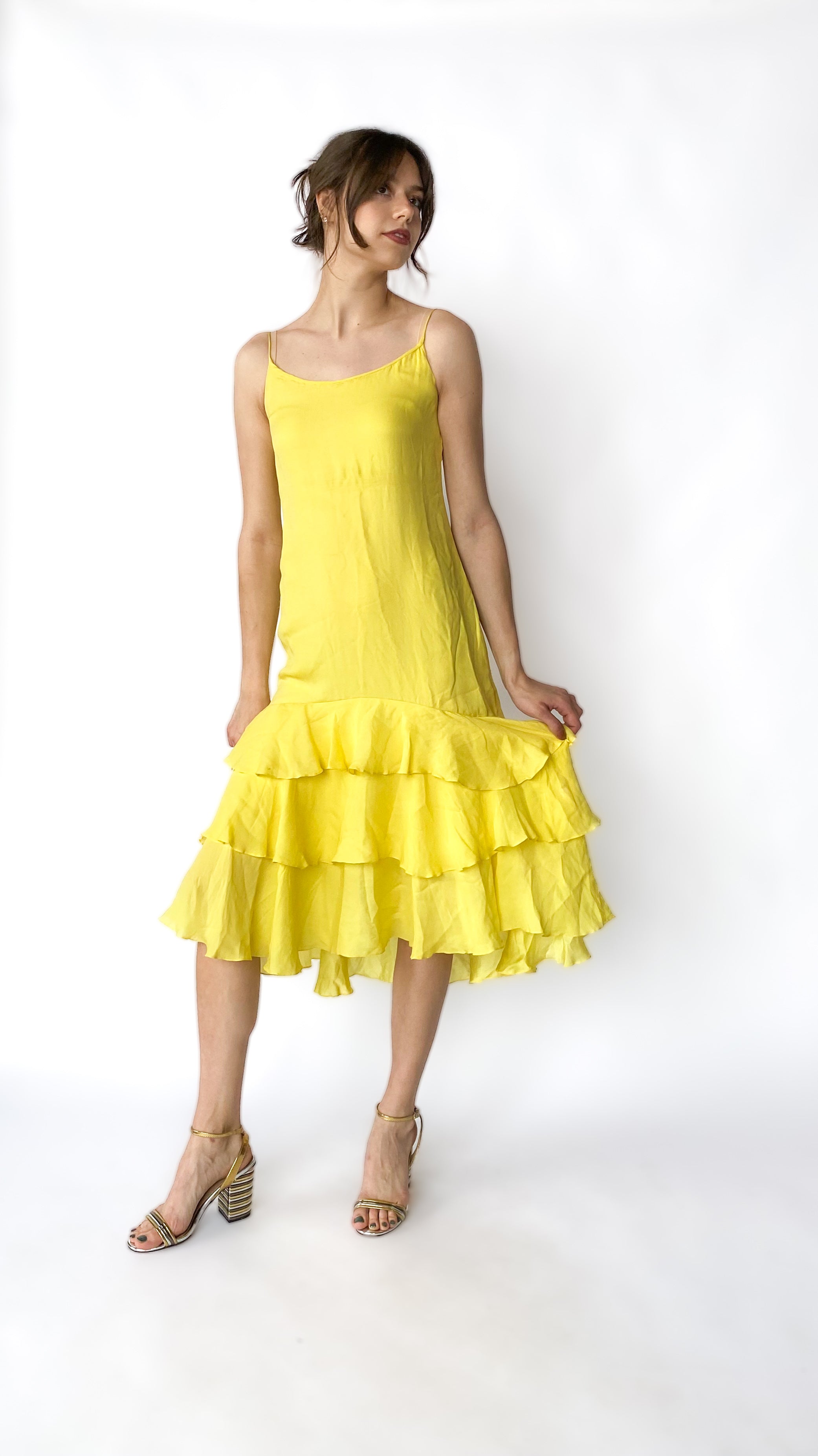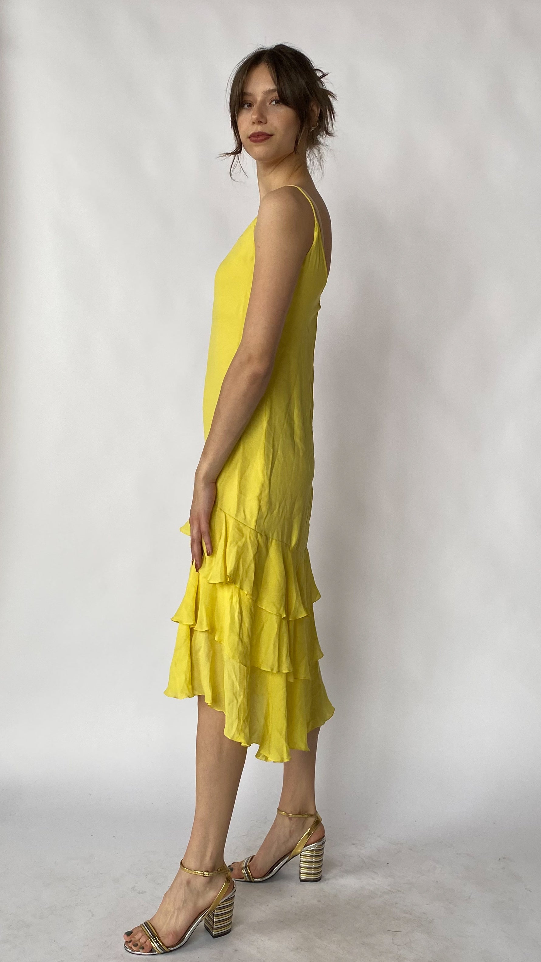 Y2K Yellow Silk Ruffle Dress, sz. XS/S