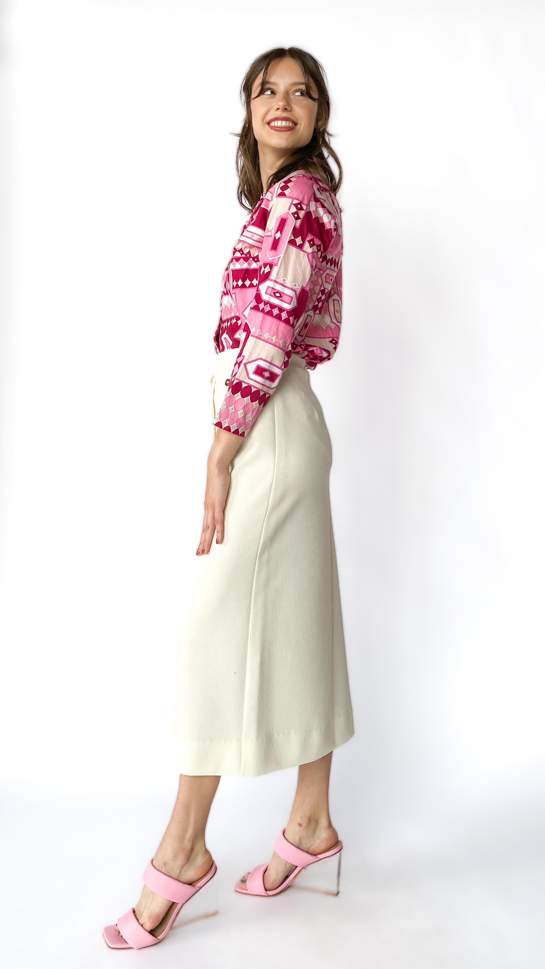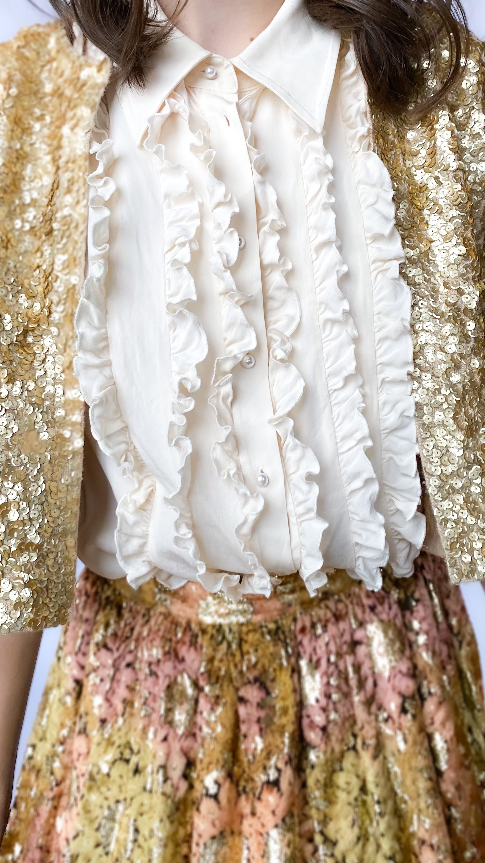 1990s St. John Ivory Silk Ruffle Blouse sz. M