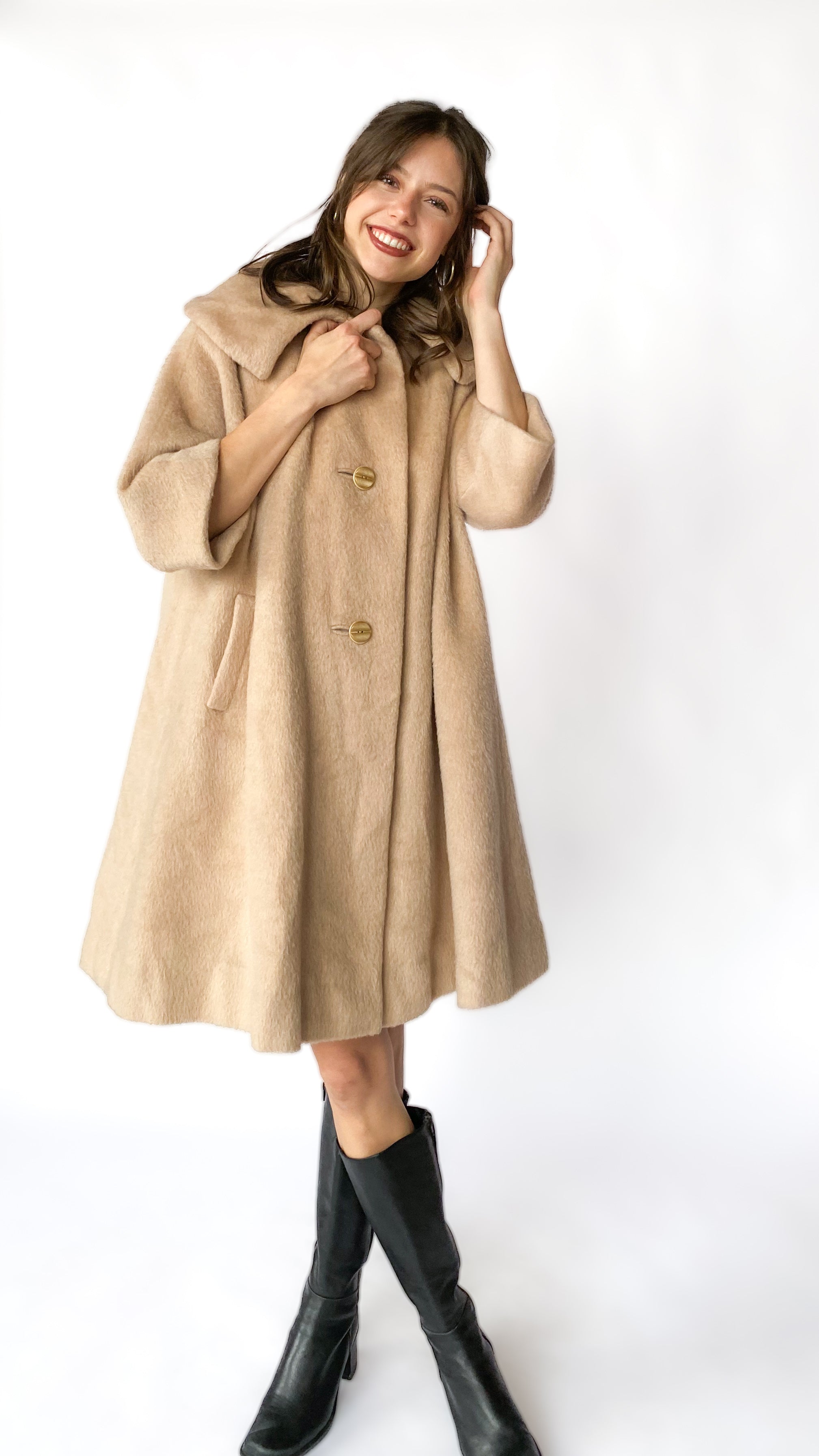 1960s Lilli Ann Cream Mohair Coat sz. M/L