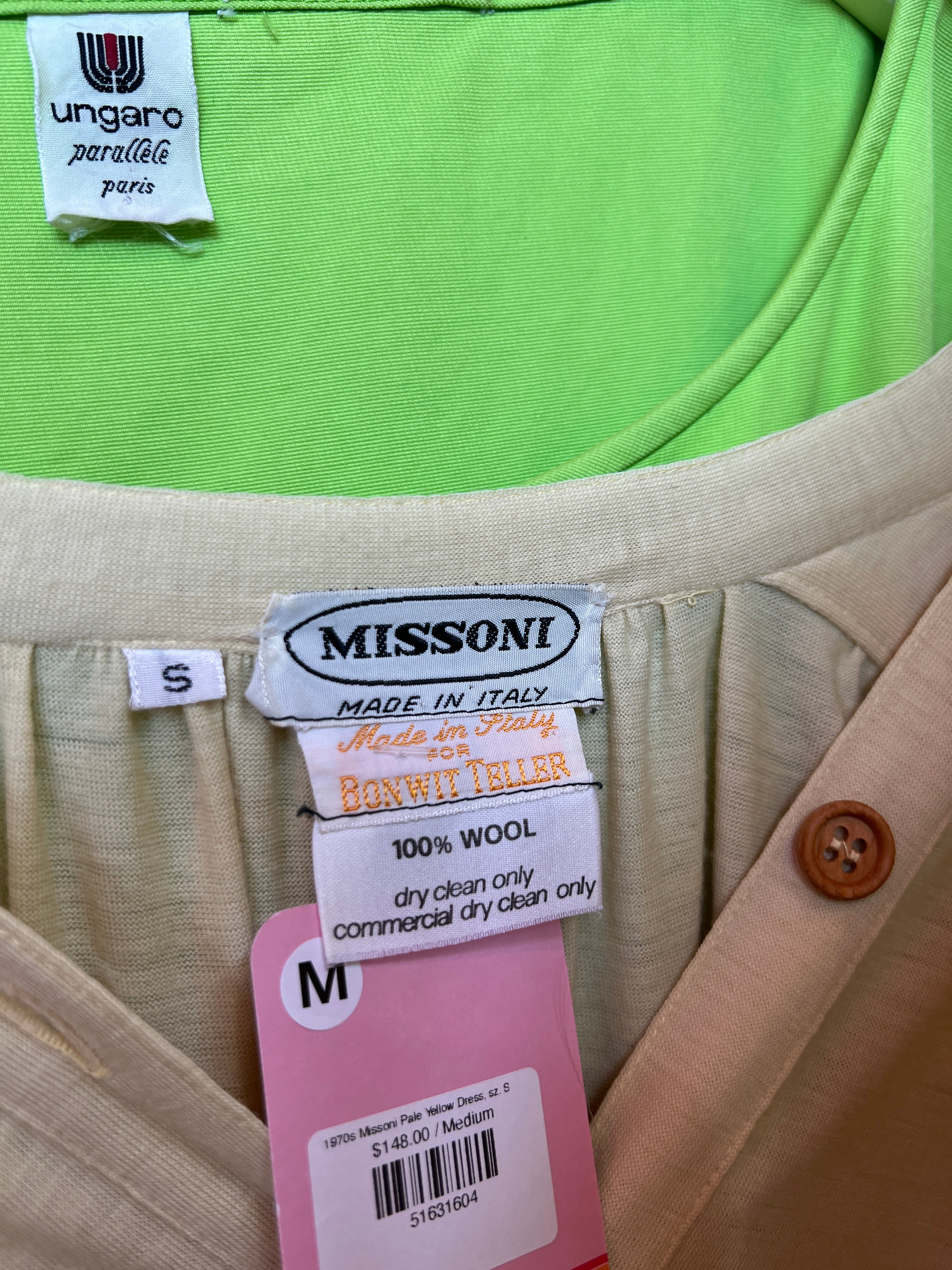 1970s Missoni Pale Yellow Dress, sz. S-2XL