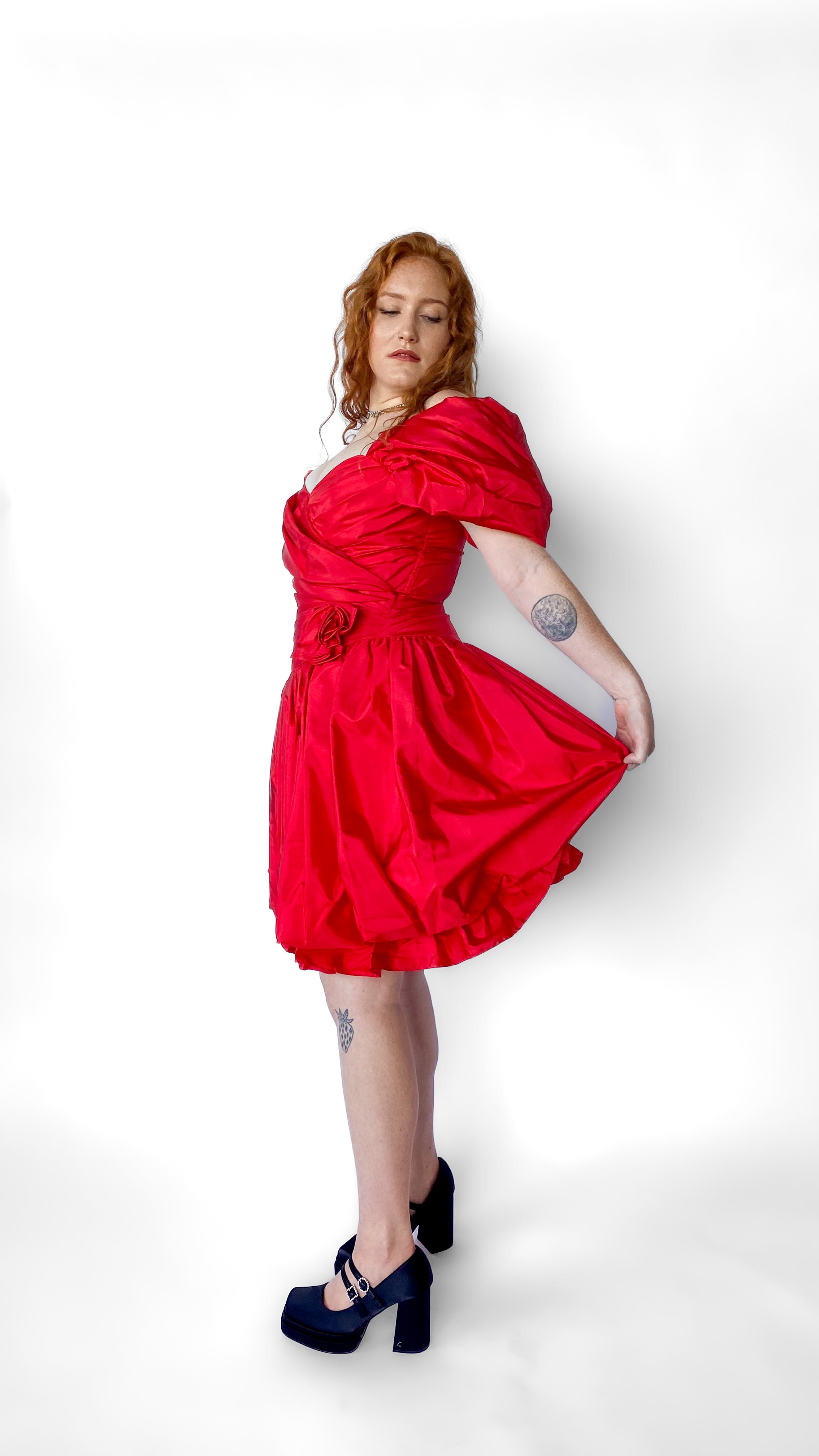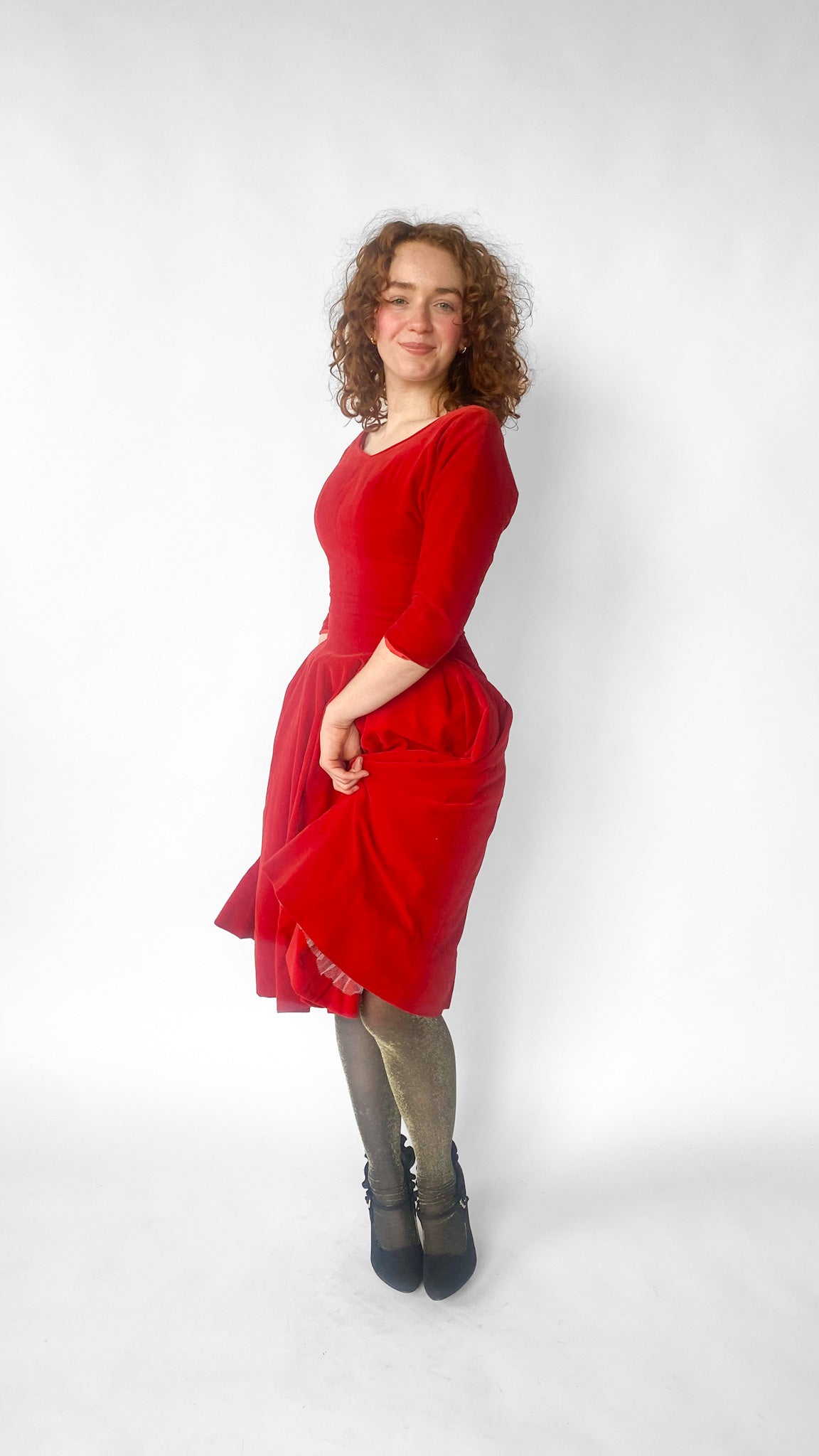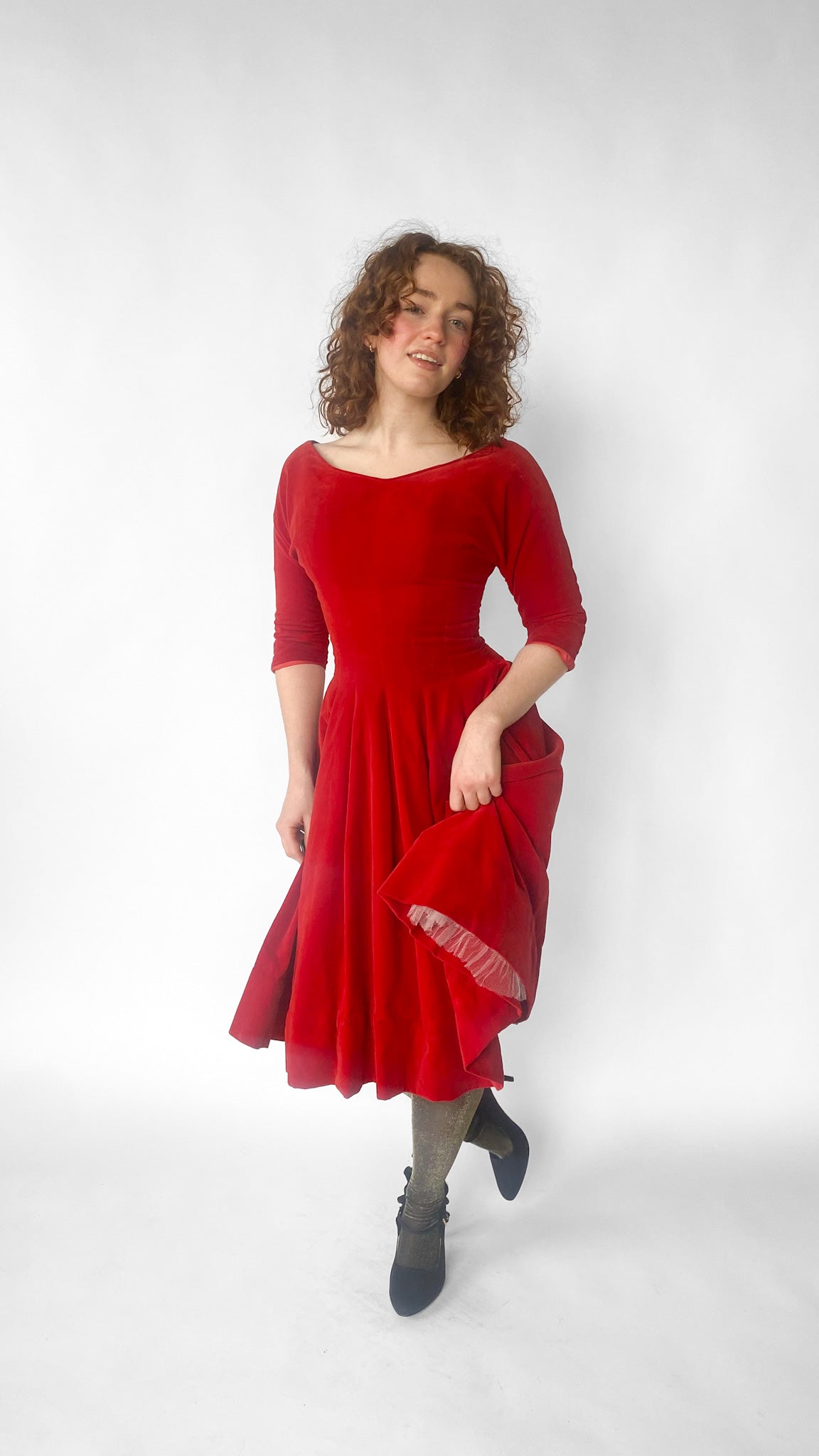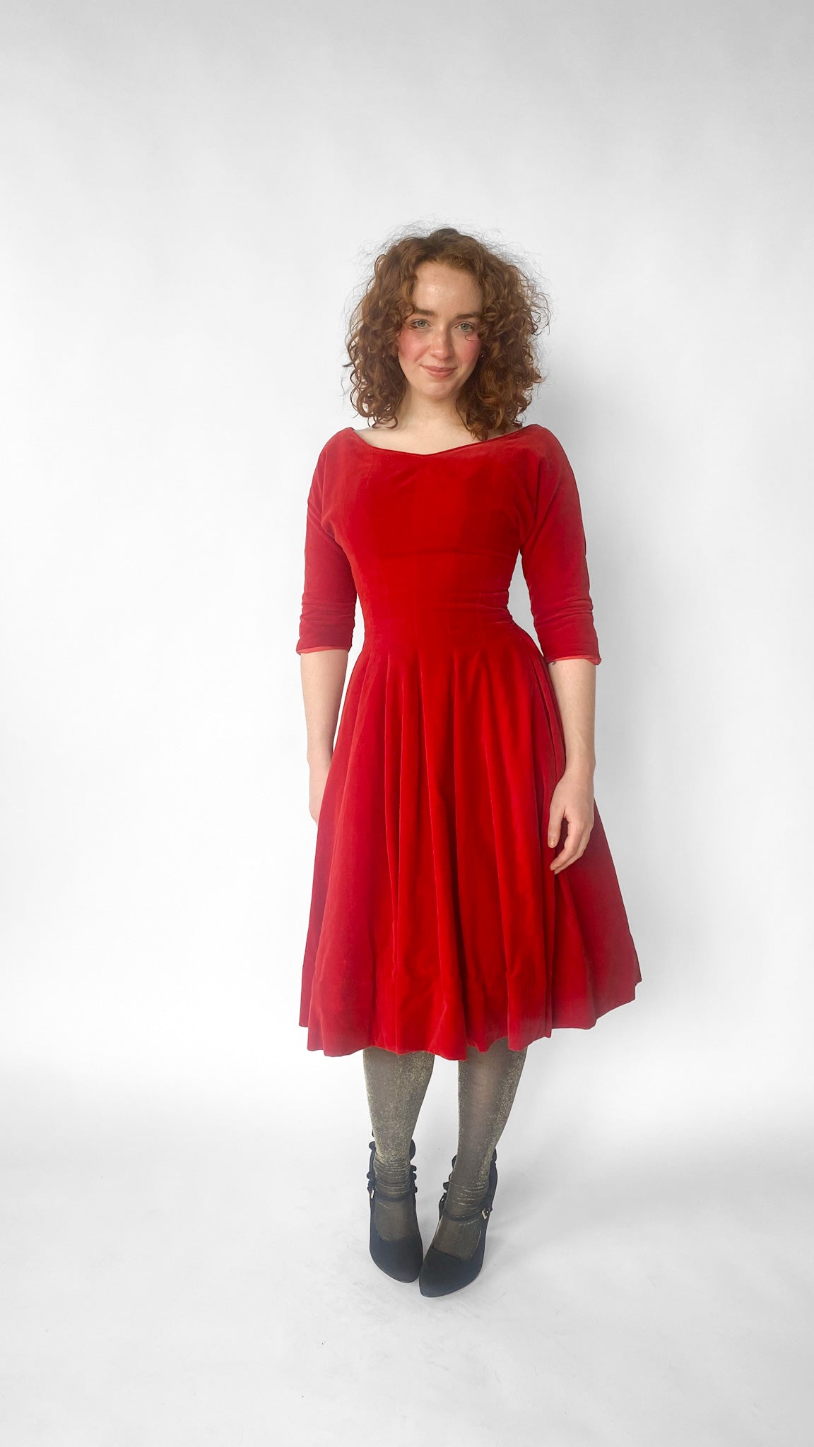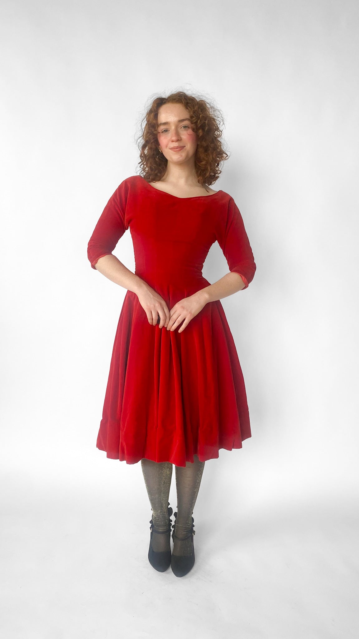 1950s Red Velvet Fit and Flare Dress, sz. S