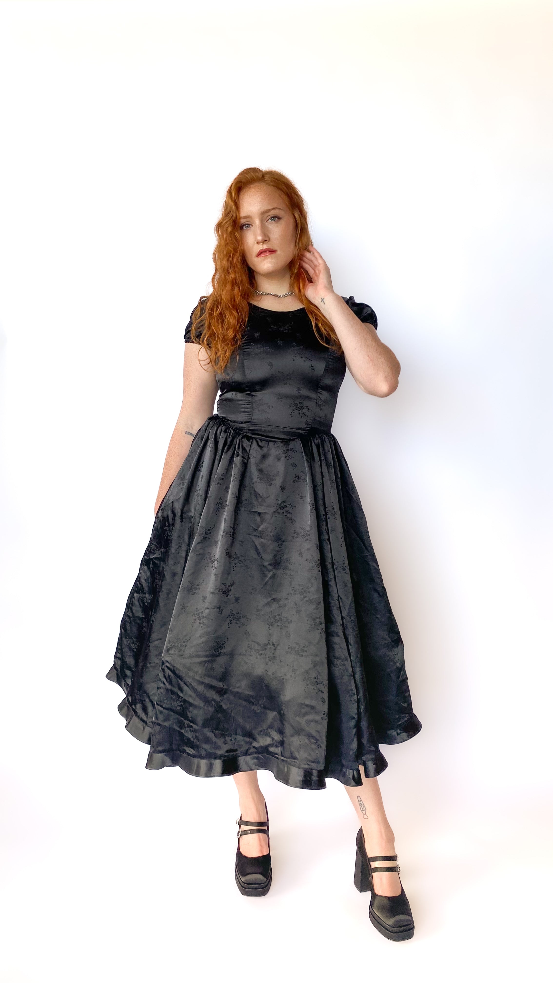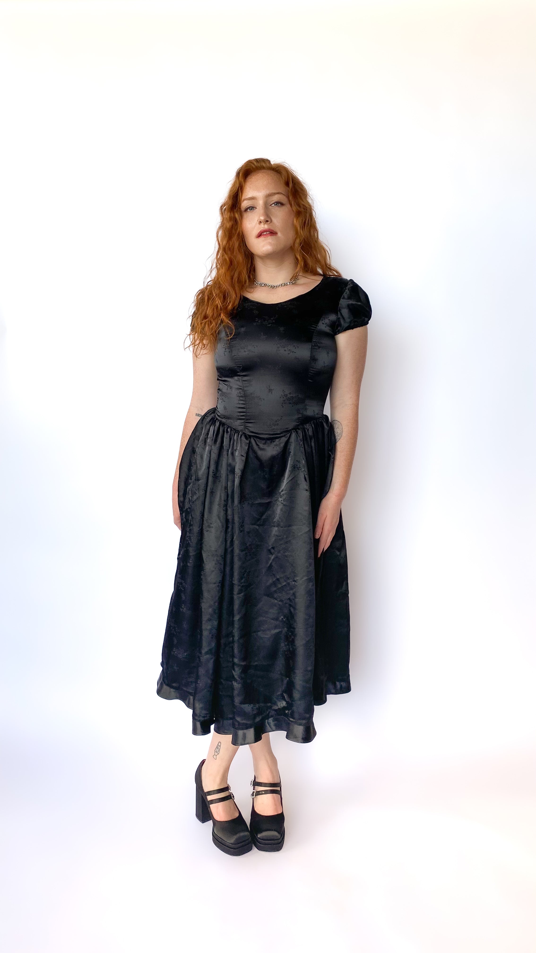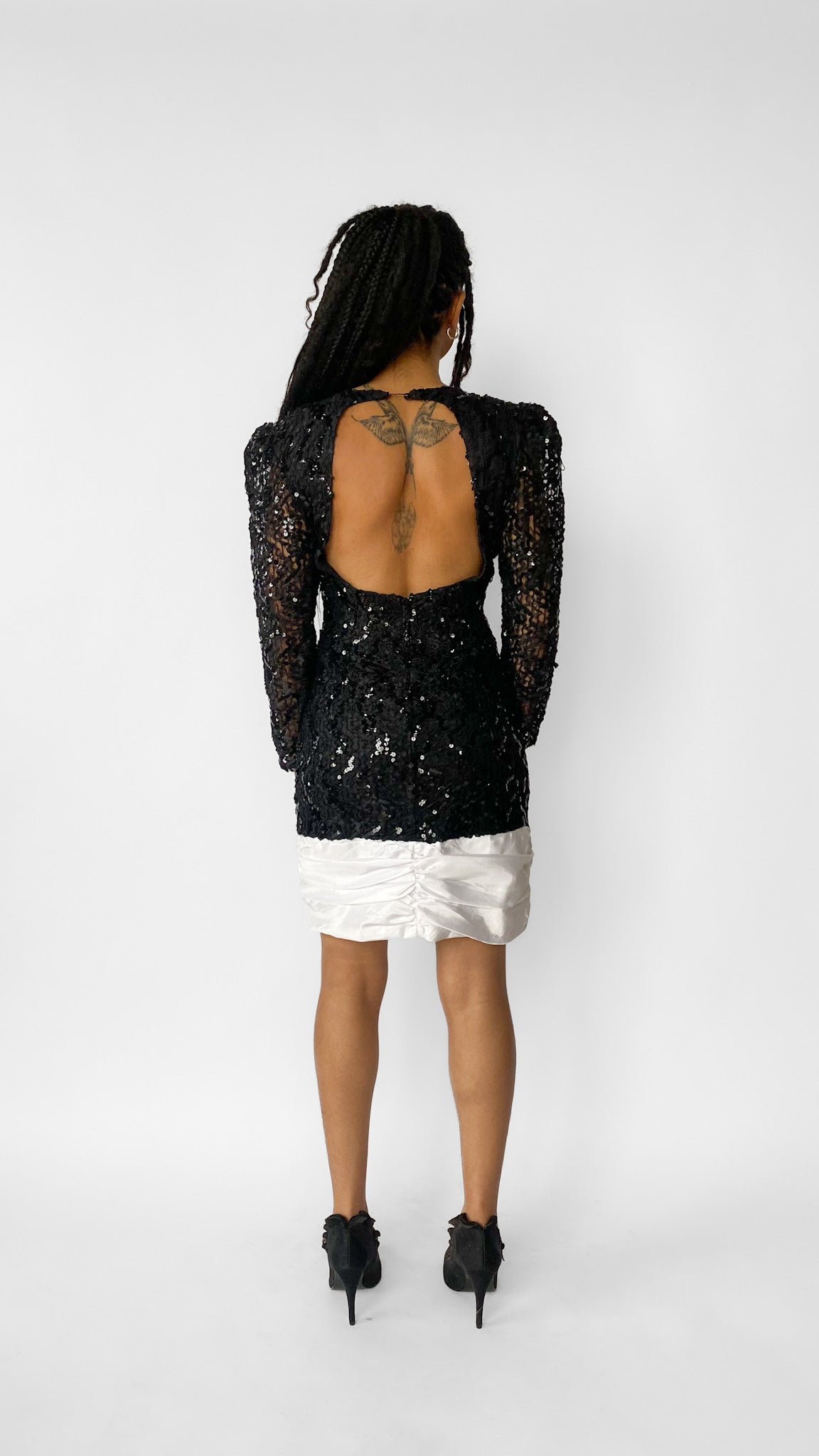 1980s Black Sequin Dress with Sequin Flower, sz. S