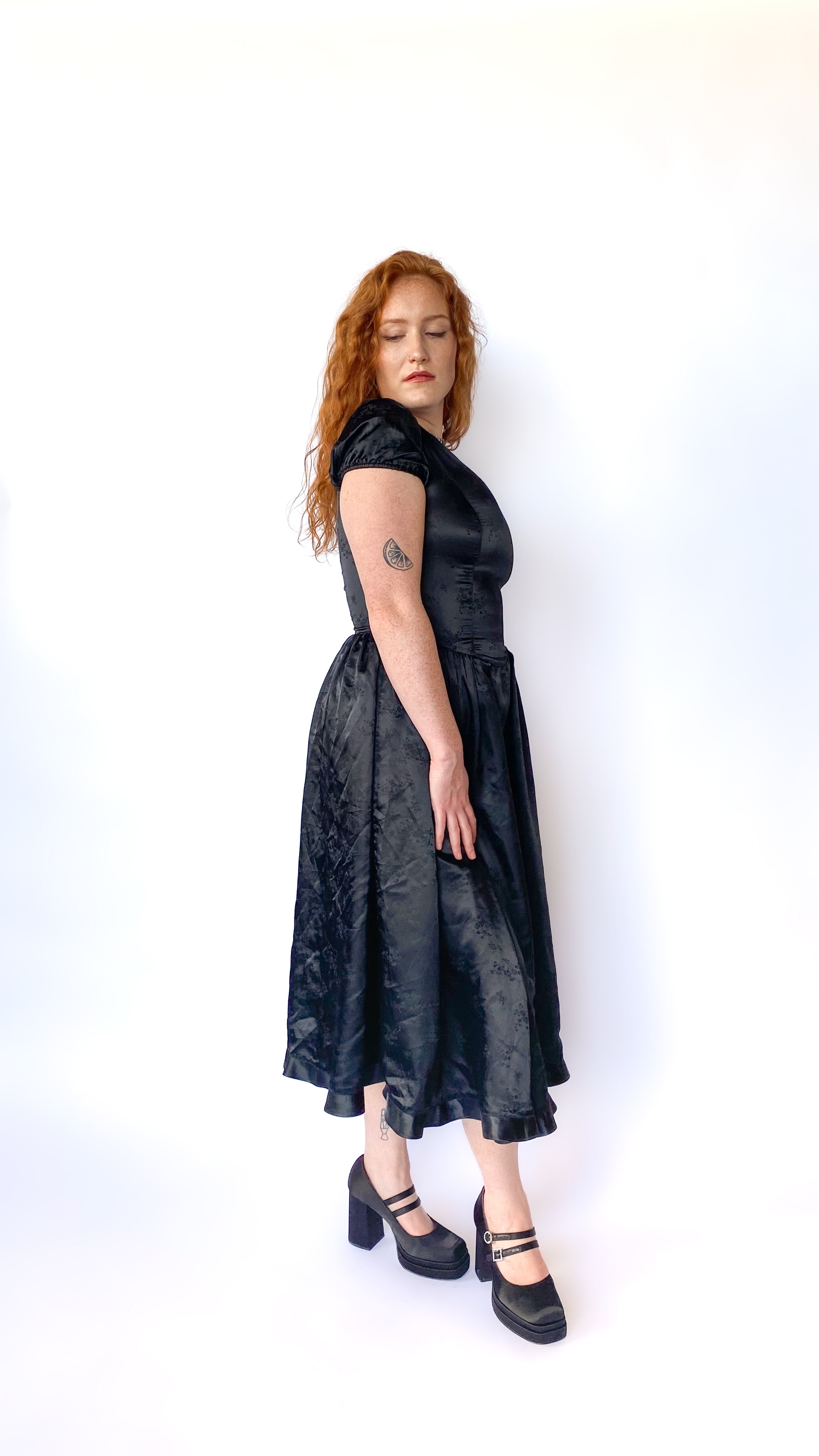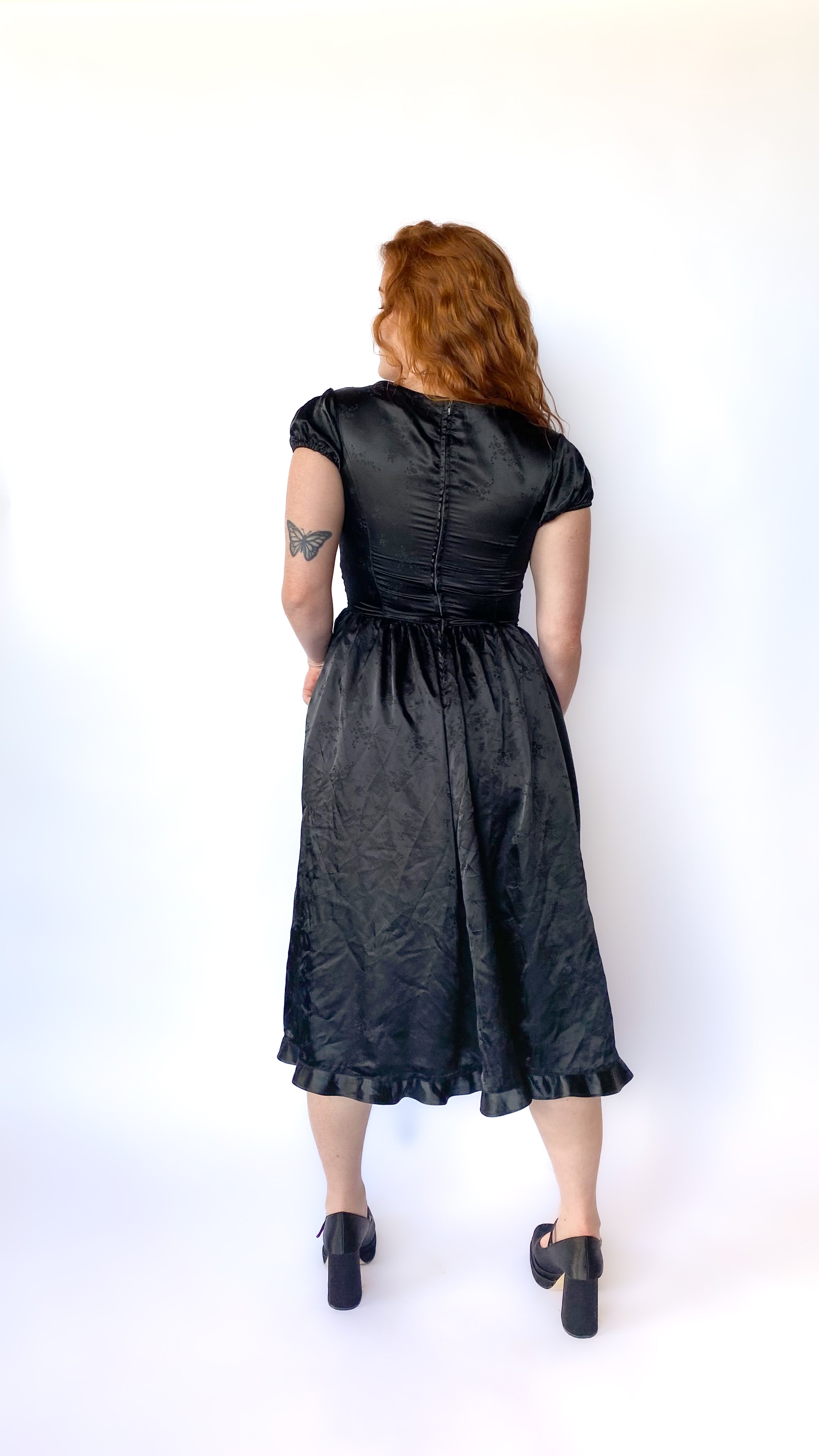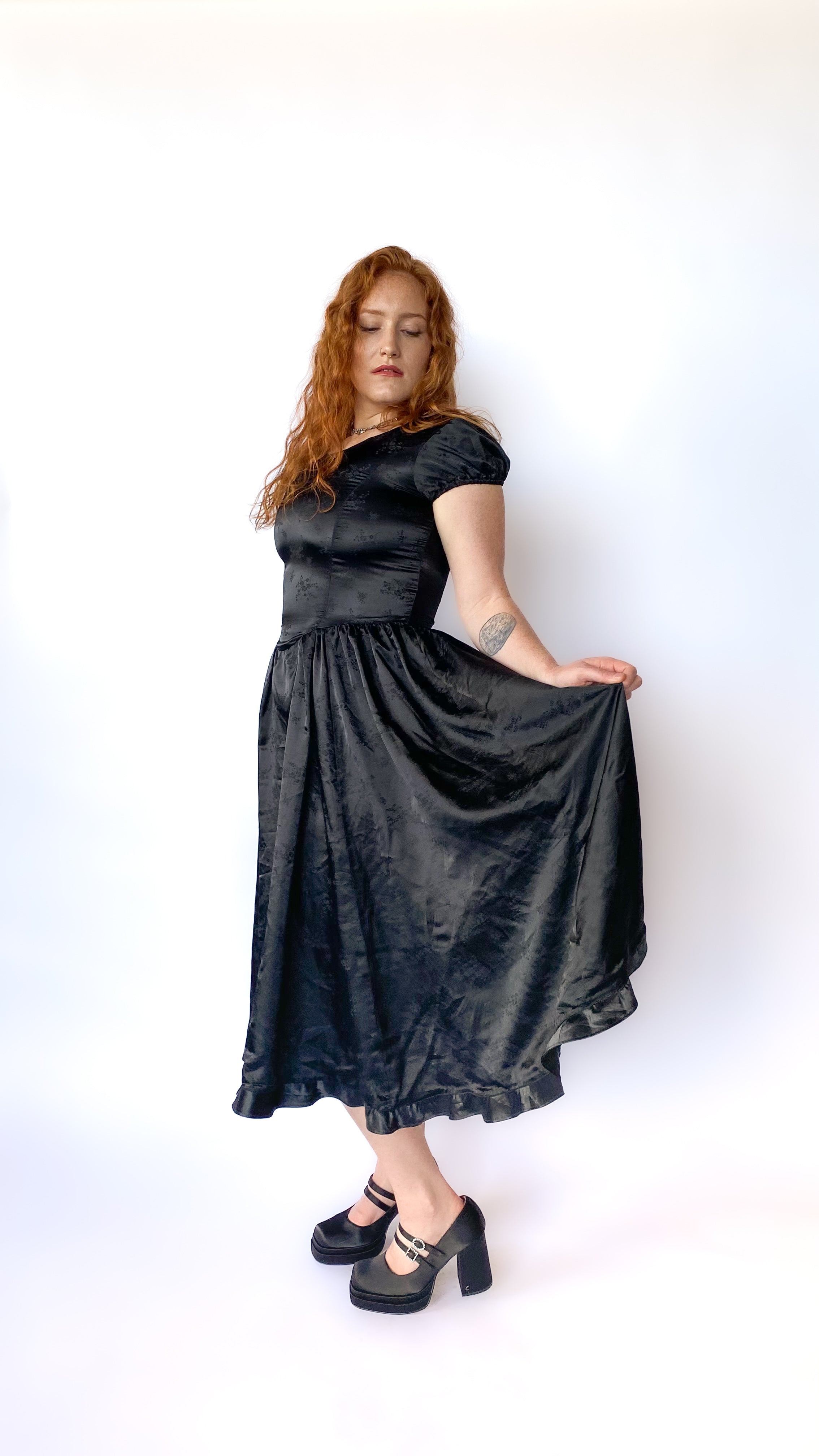 1980s Black Sequin Dress with Sequin Flower, sz. S