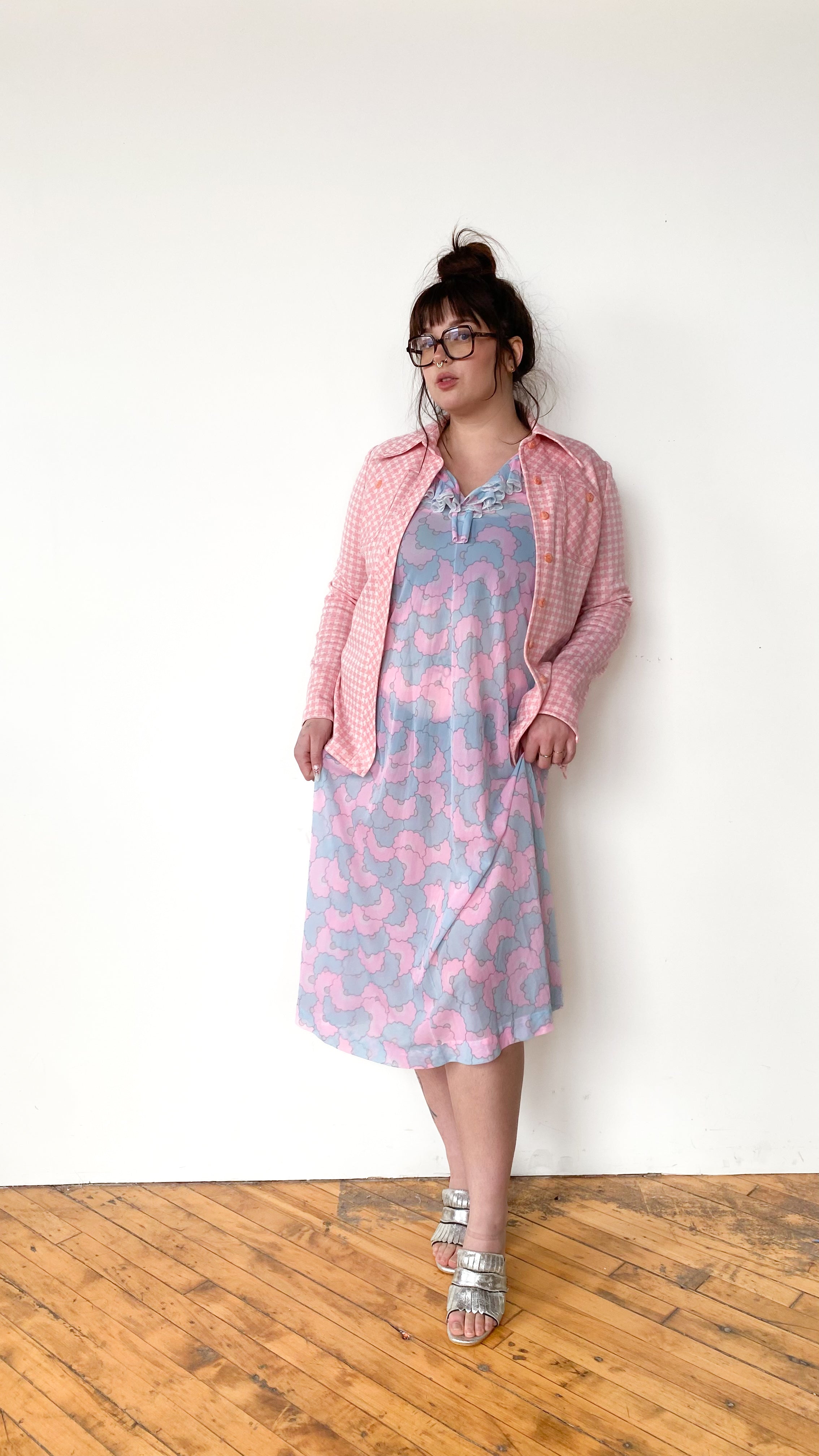 1960s Pink & Blue Sheer Maxi Slip Dress, sz. L-1XL