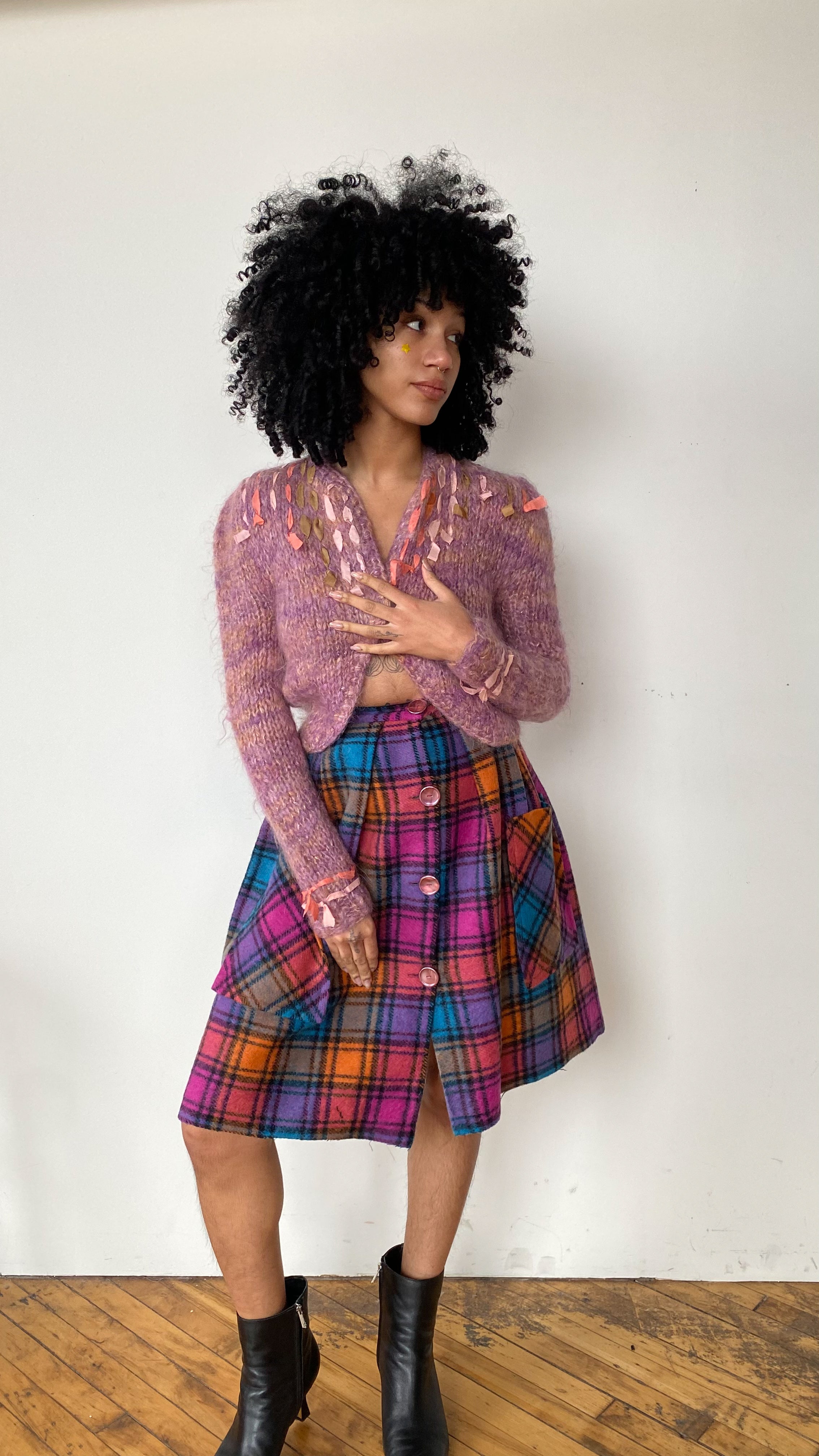 1970s Colorful Plaid Wool Pleated Skirt sz. XS