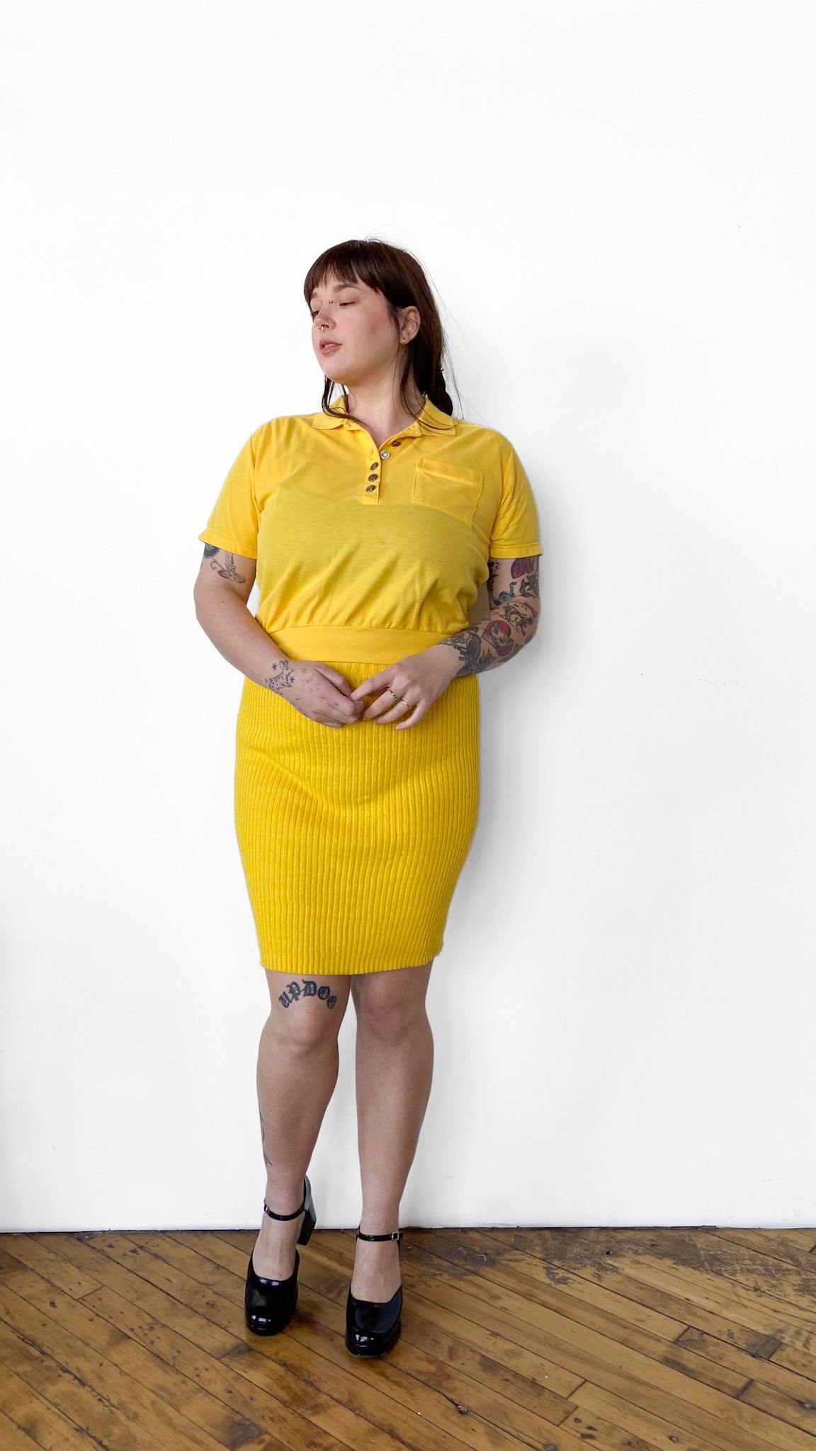 1970s Gil Aimbez Tan Flecked Sweater Dress sz. M-1X