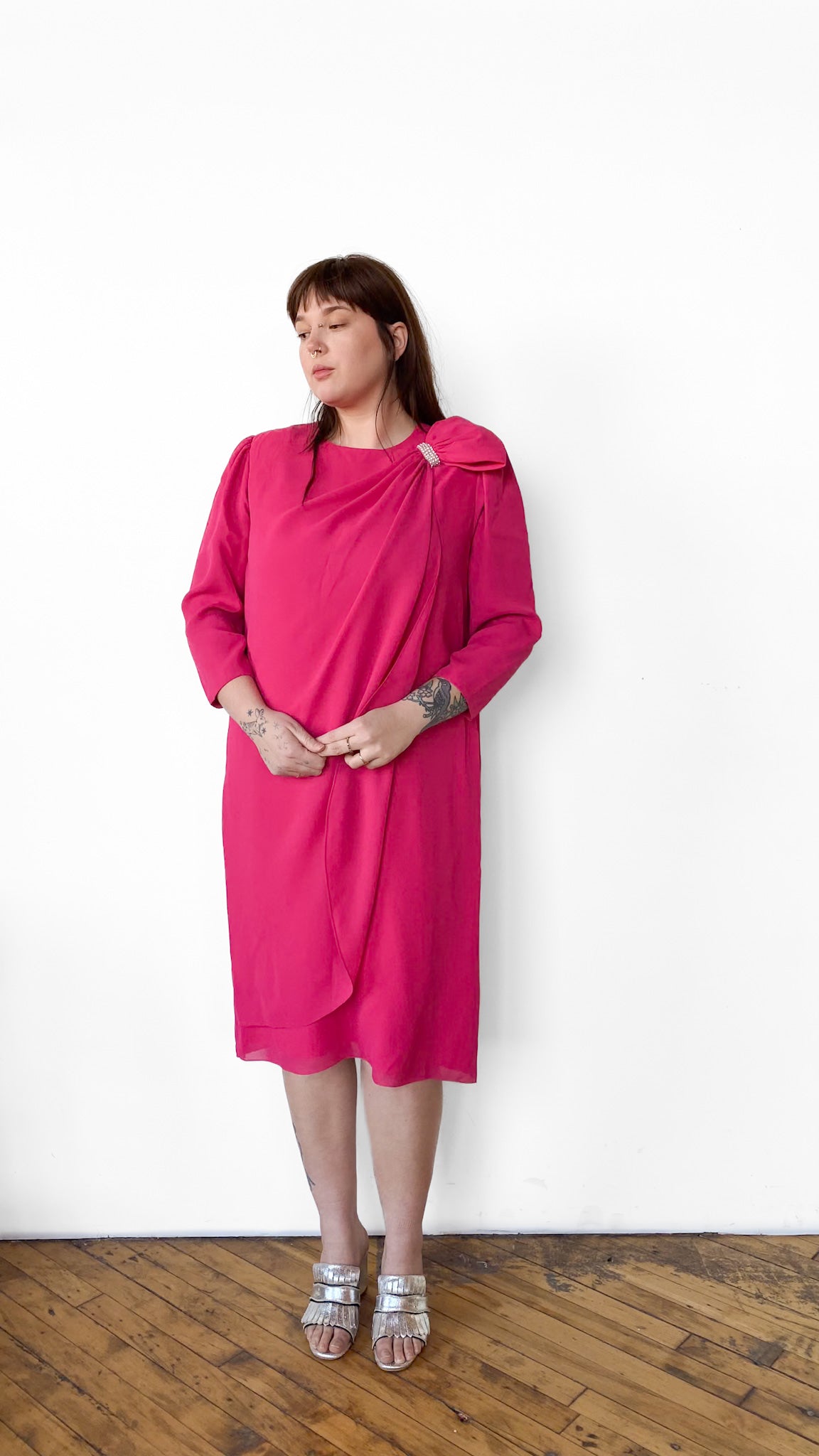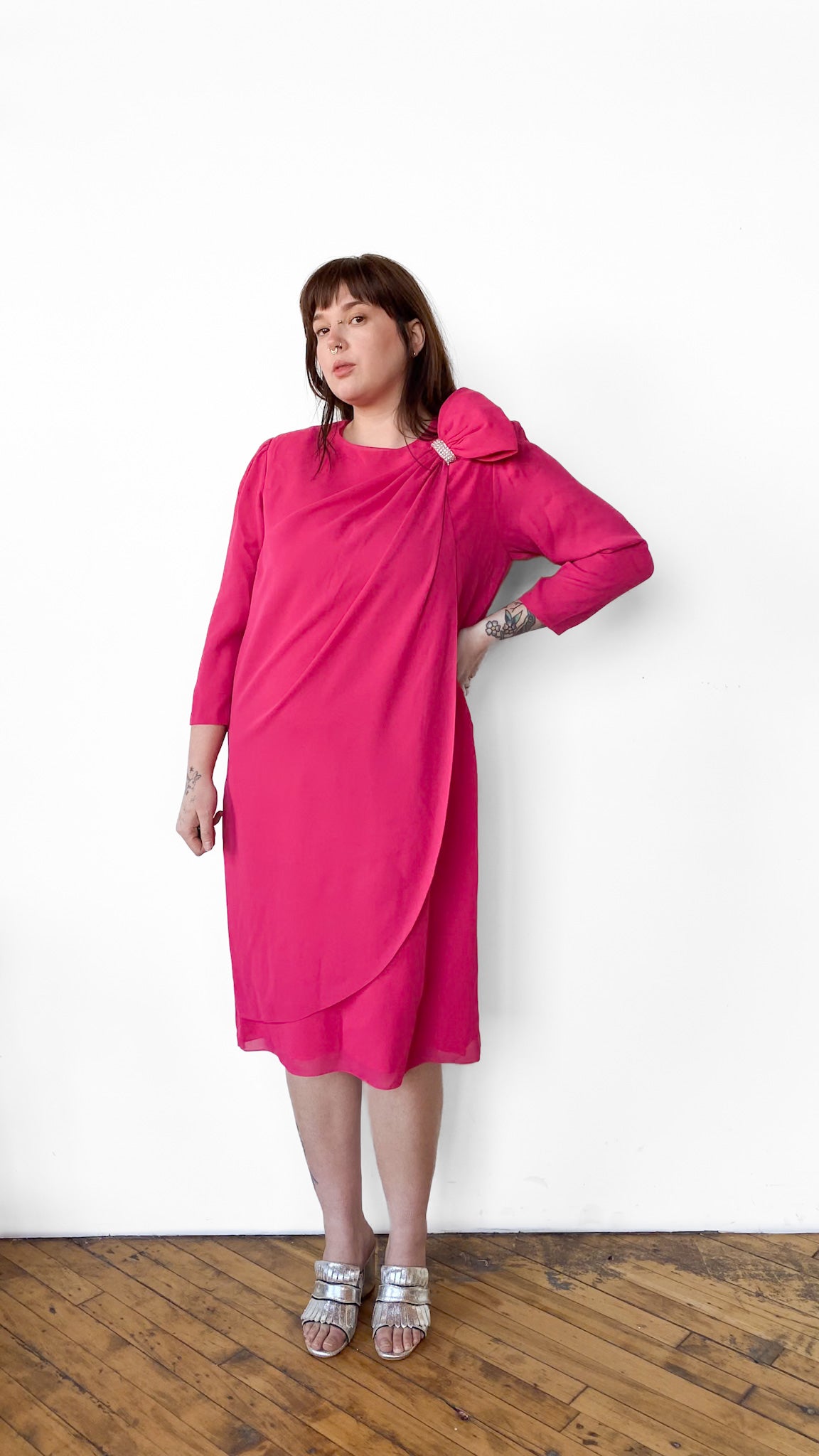 1980s Magenta Rhinestone Bow Dress, sz. 1XL