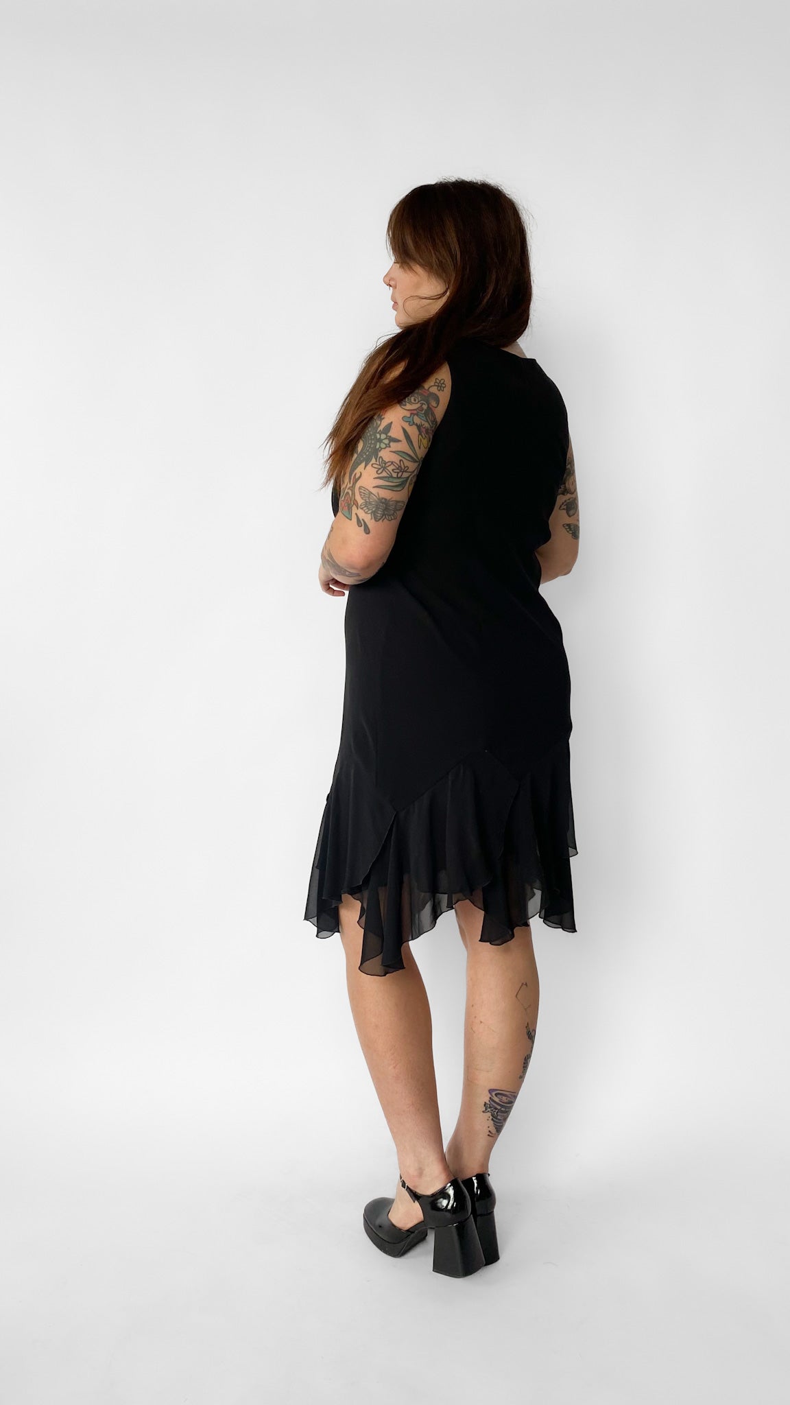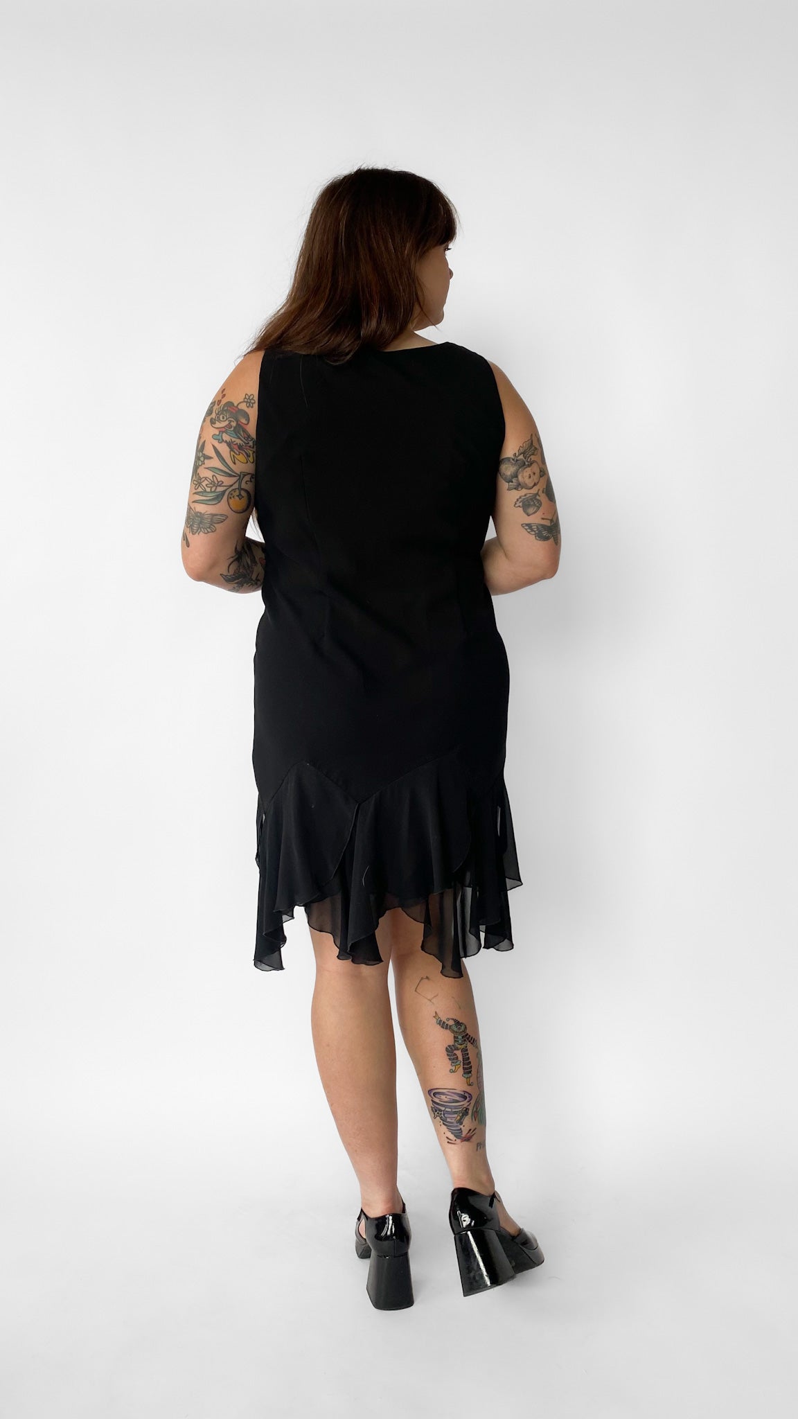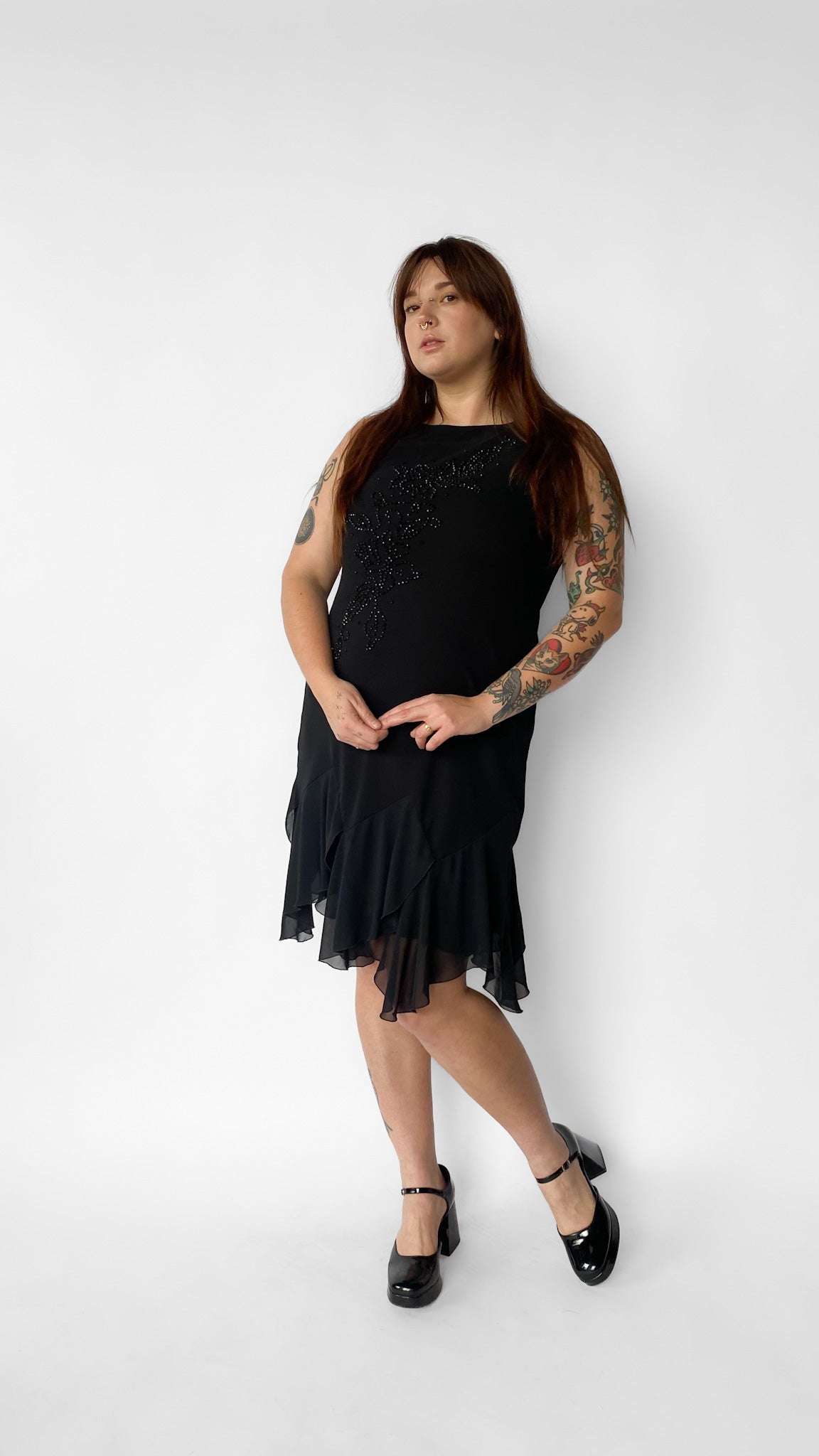 1990s Black Sleeveless Bias Cut Beaded Dress sz. M