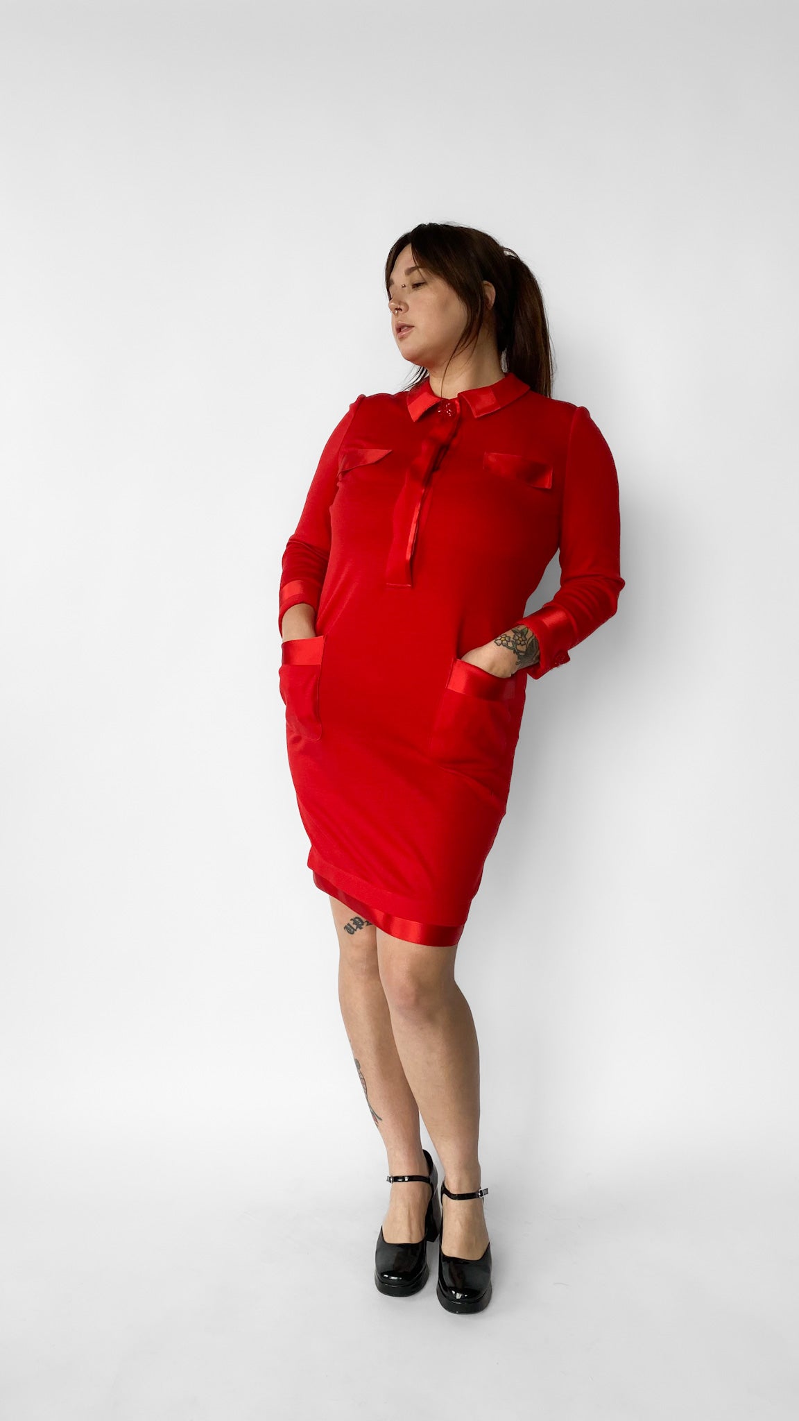1980s Giorgio Grati Bright Red Collared Dress sz. M-1XL