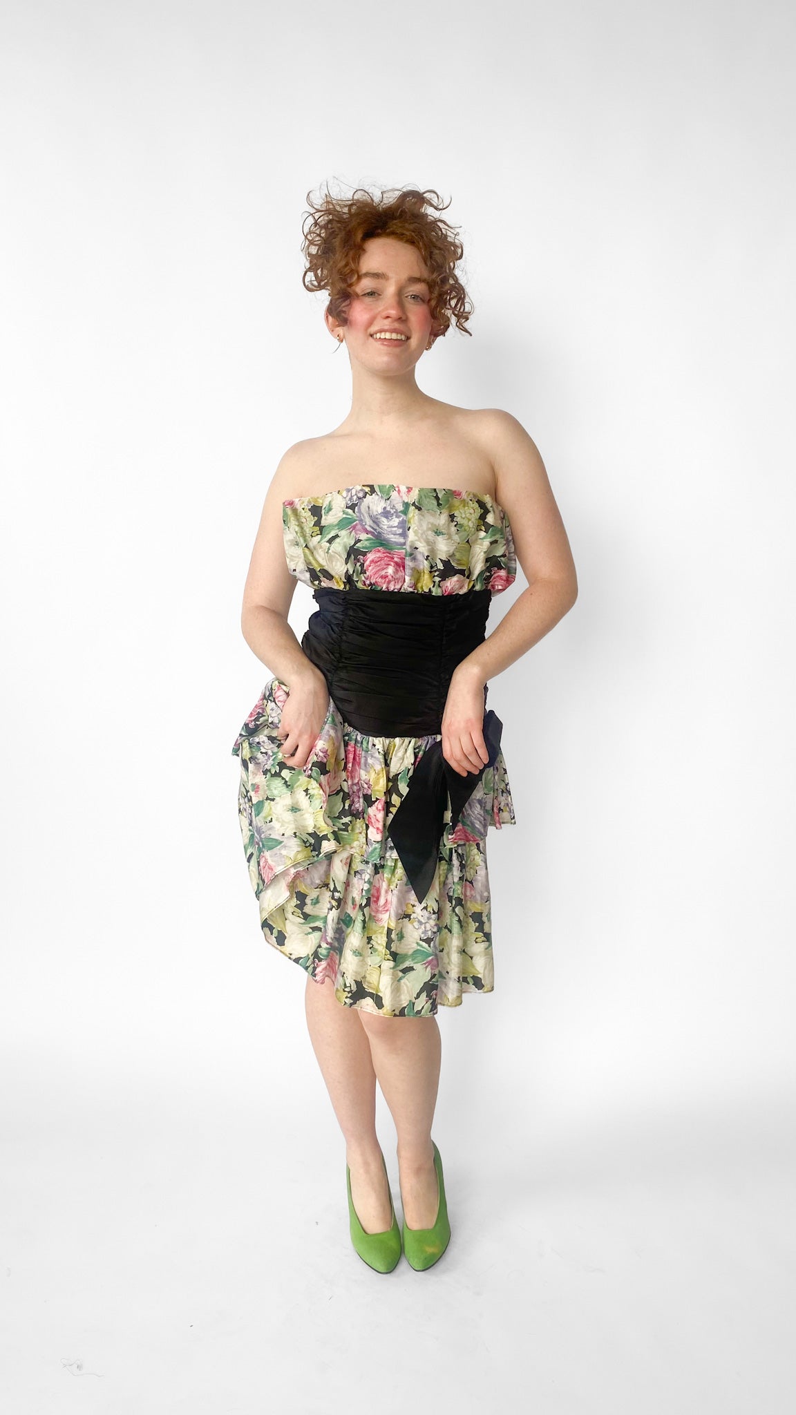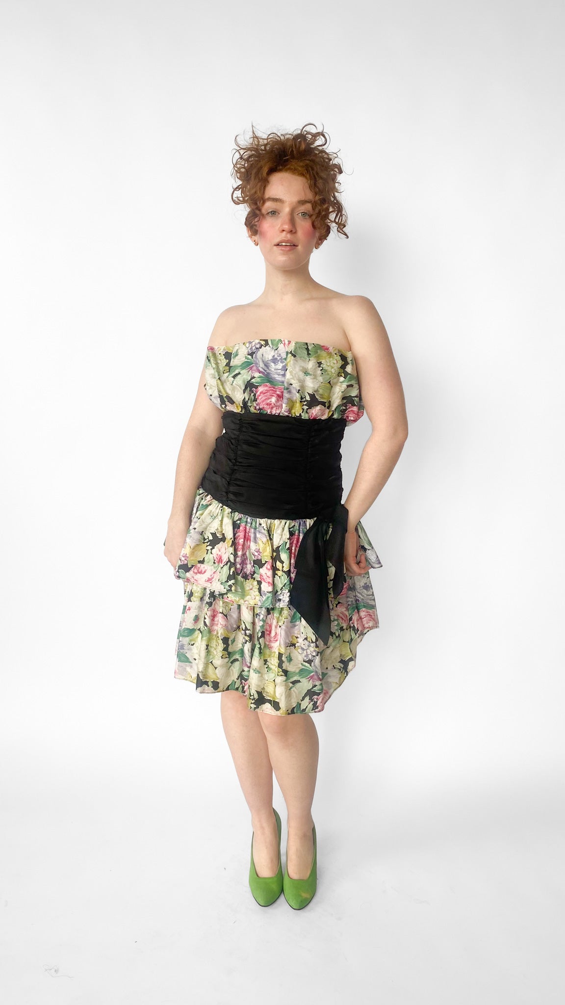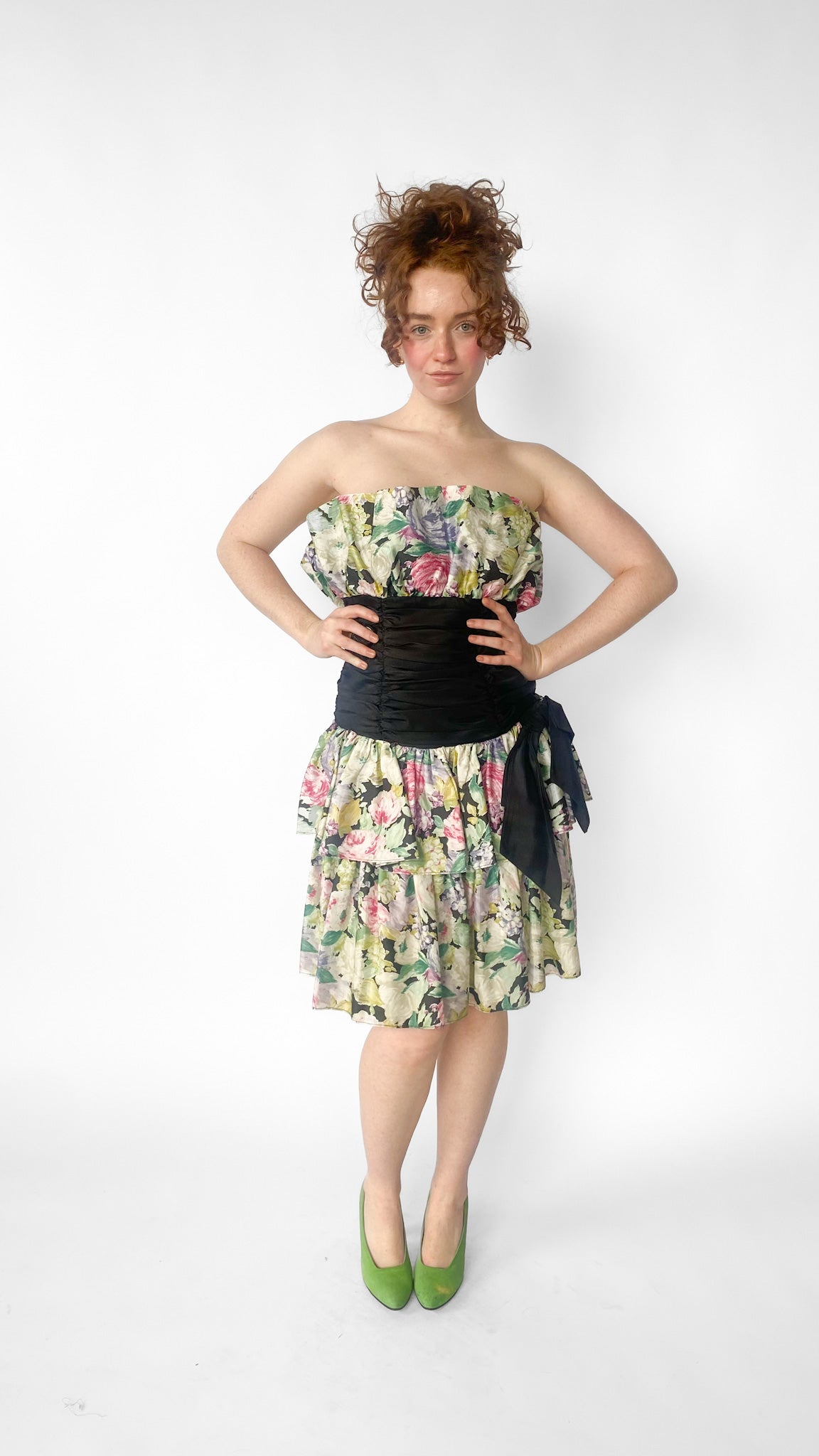 1980s Green Tiered Tropical Dress, sz. 1XL