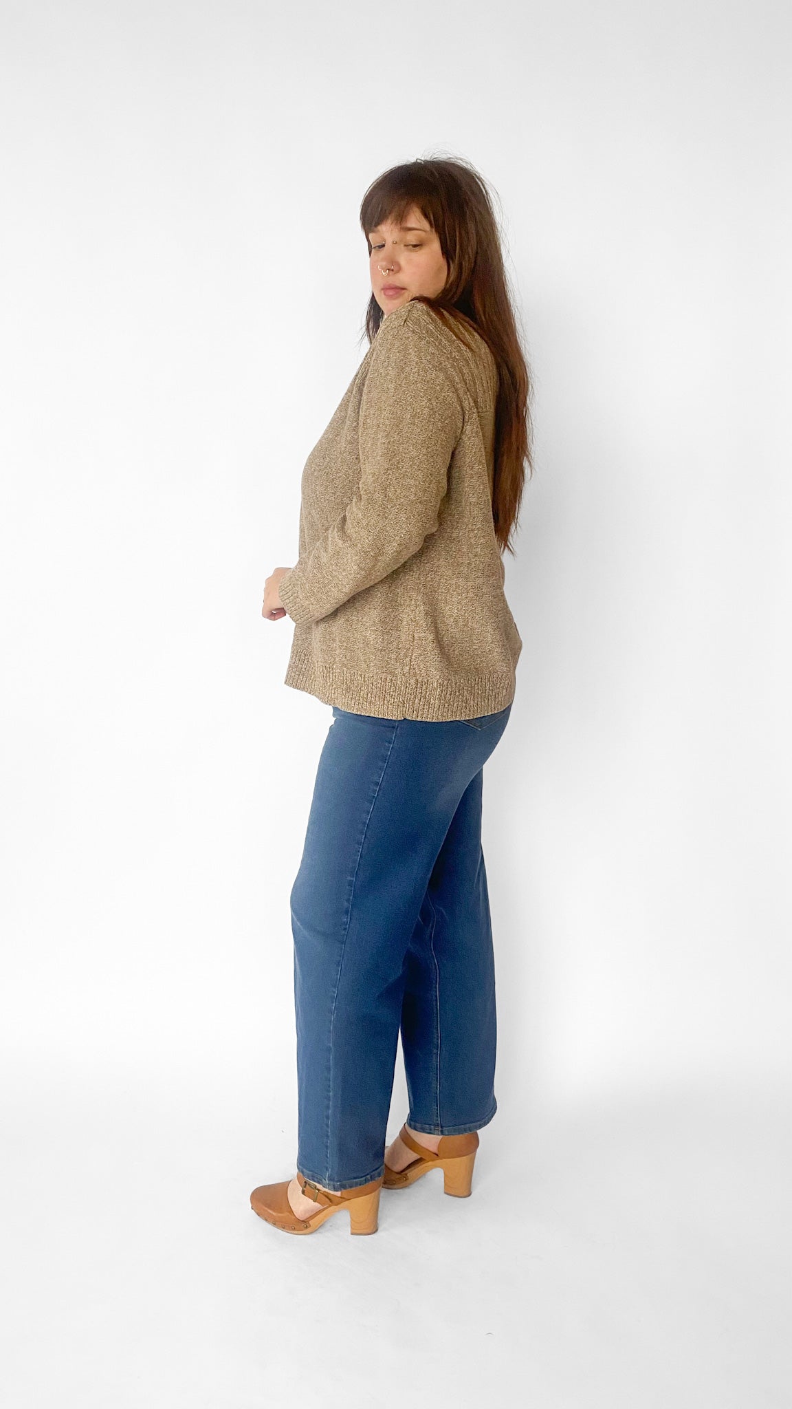Y2K Oatmeal Quarter Button Sweater, sz. 3XL-4XL