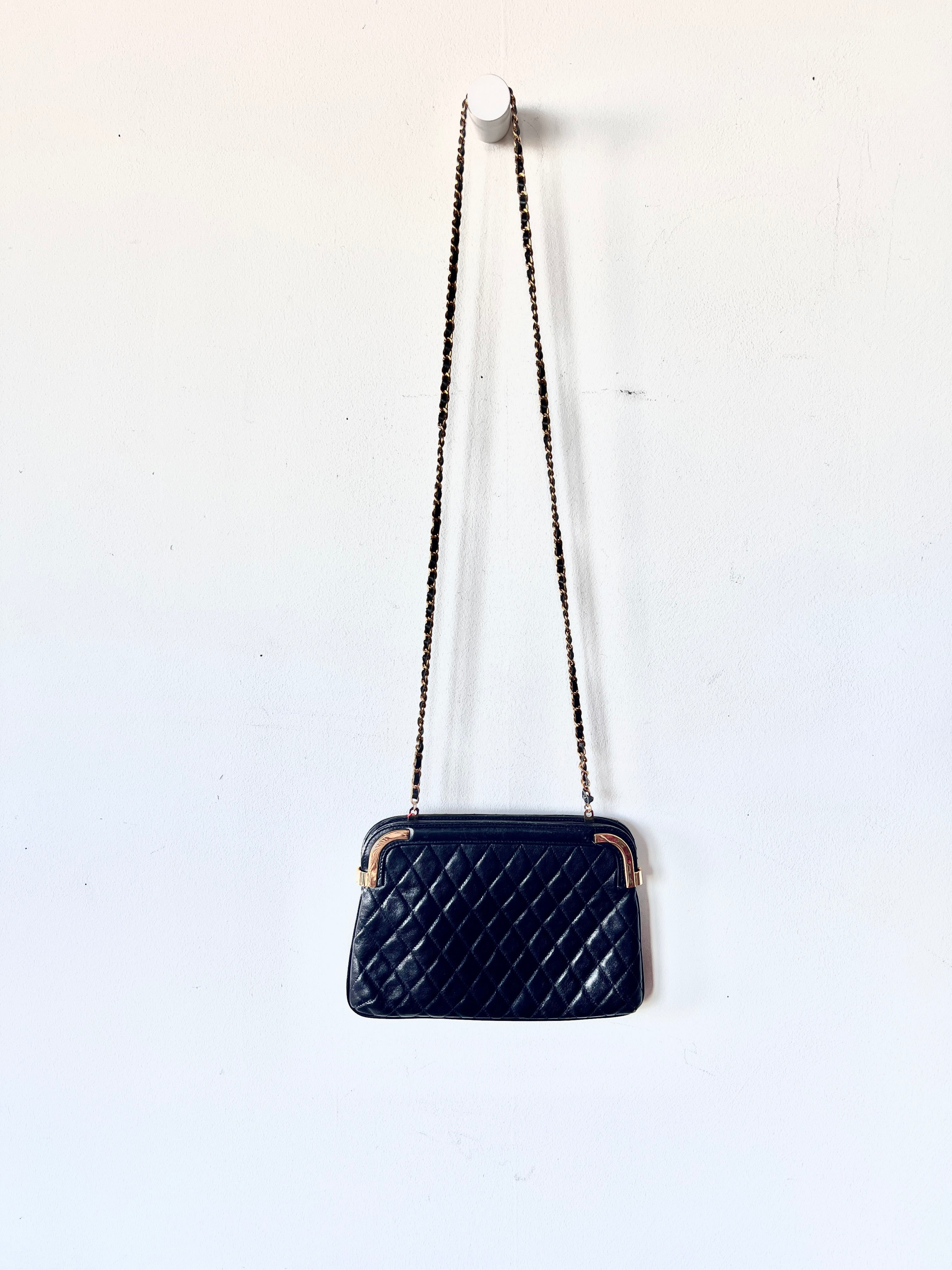 1980s Black Quilted Leather Purse