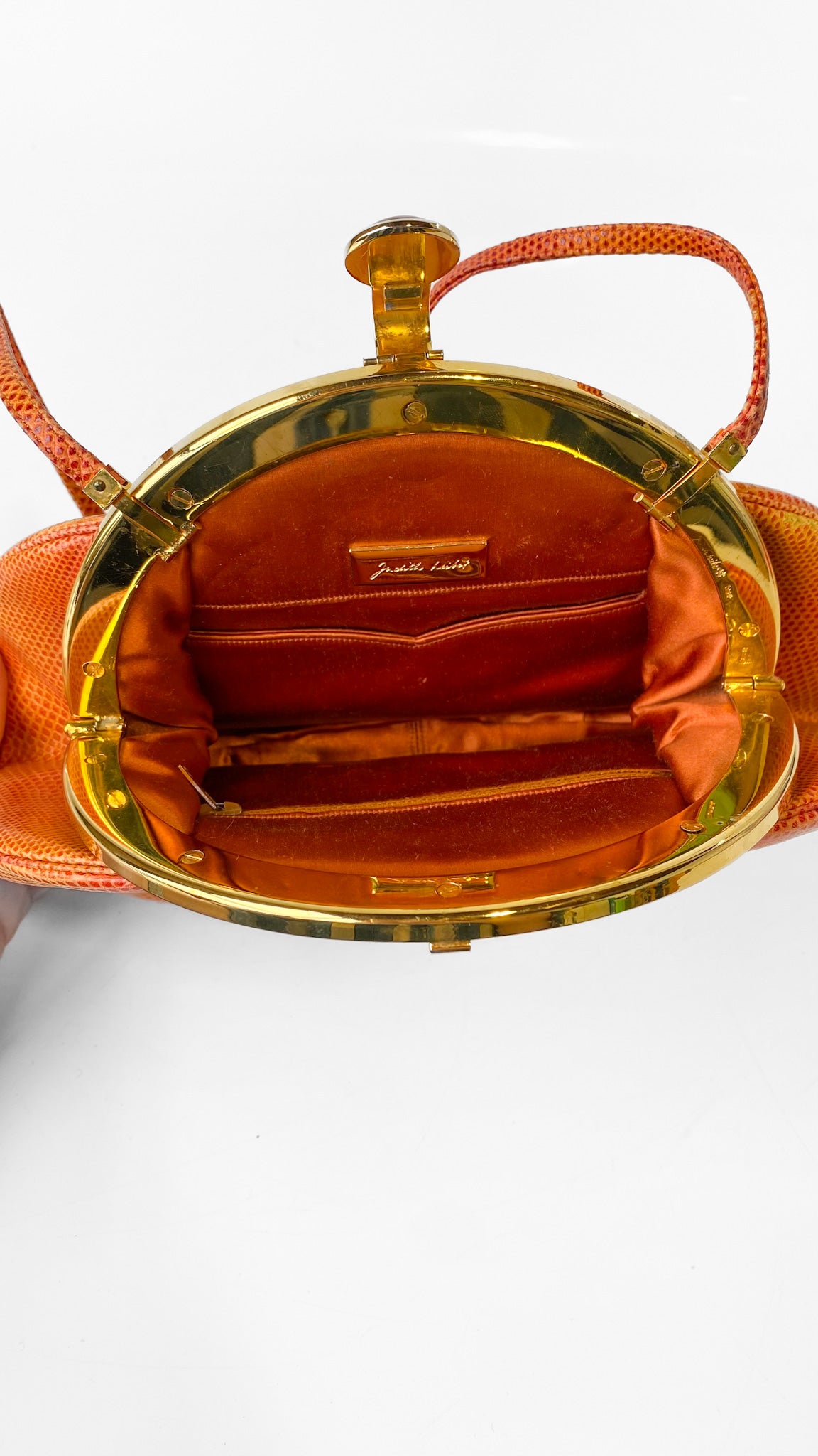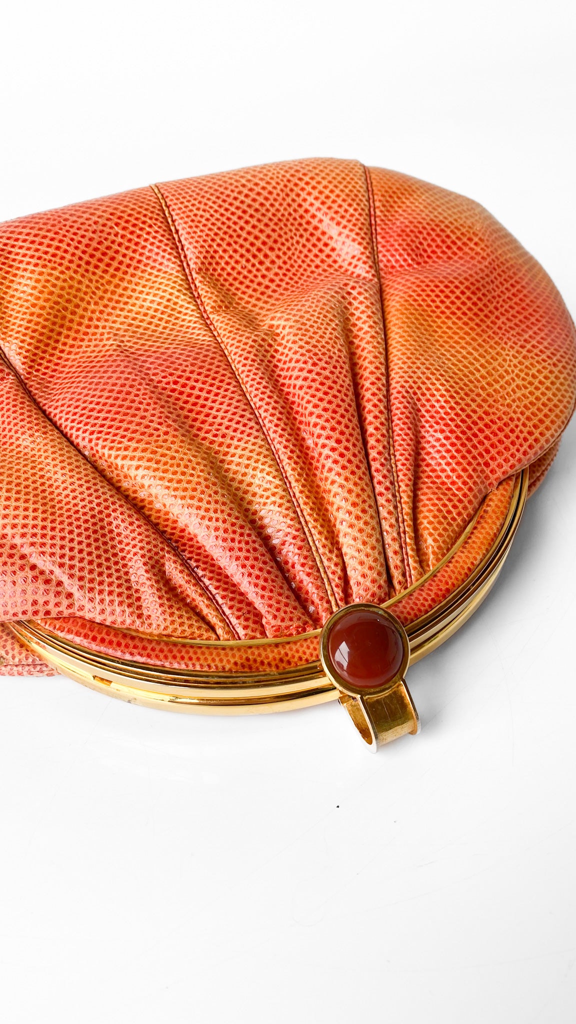 1980s Judith Leiber Orange Leather Clamshell Clutch