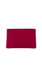 Magenta clutch with beaded front sardine tin. Detachable chain for crossbody.